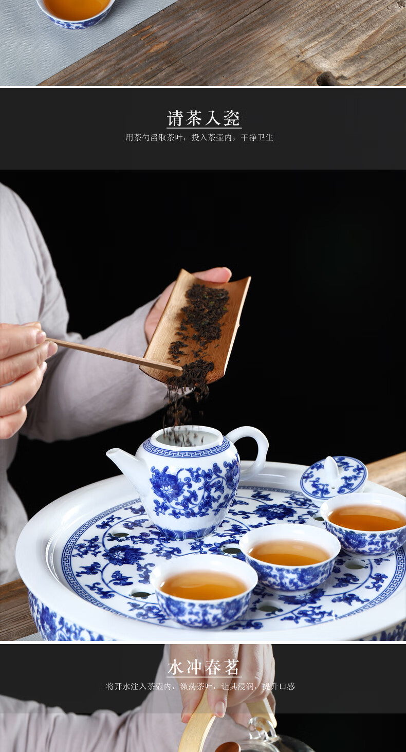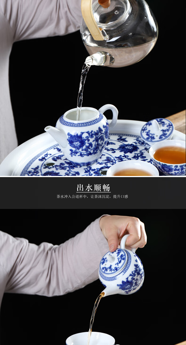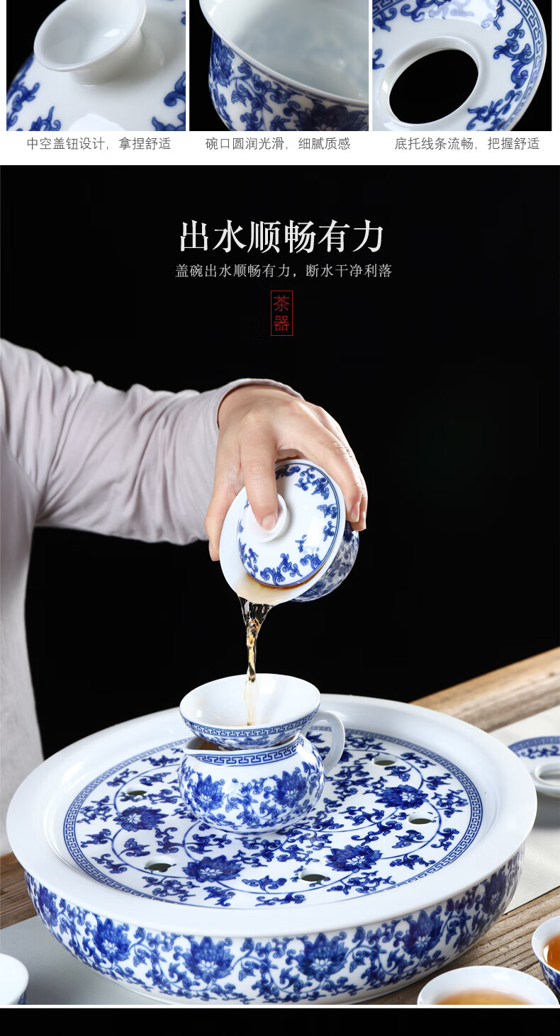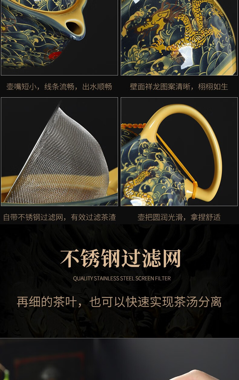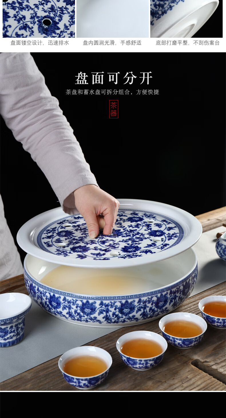 Kanglepin Jingdezhen Ceramic Kung Fu Tea Set Simple Home Anti-scald Teapot Teacup Tea Tray Complete Gift Box Blue Gold Dragon Tea Set