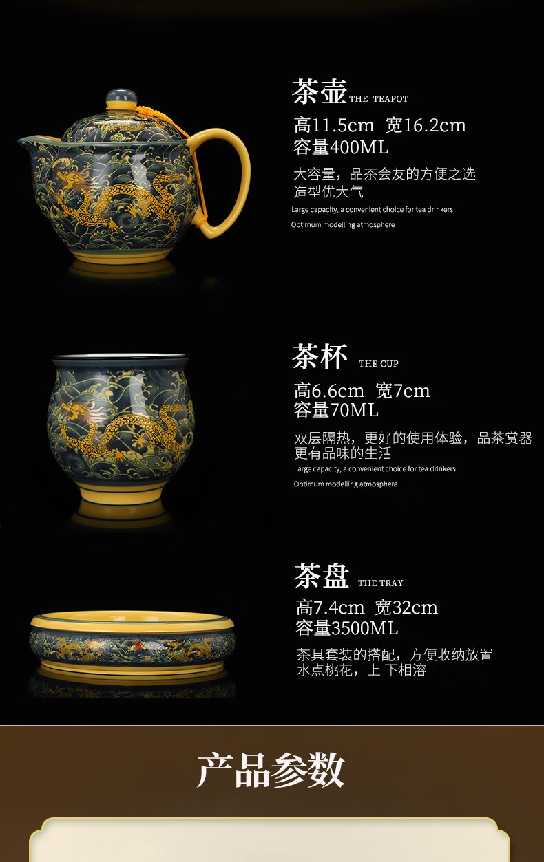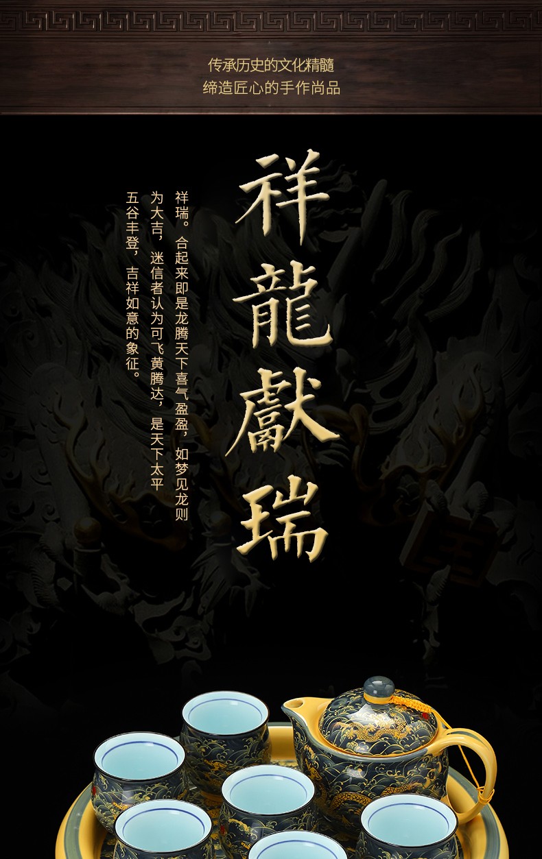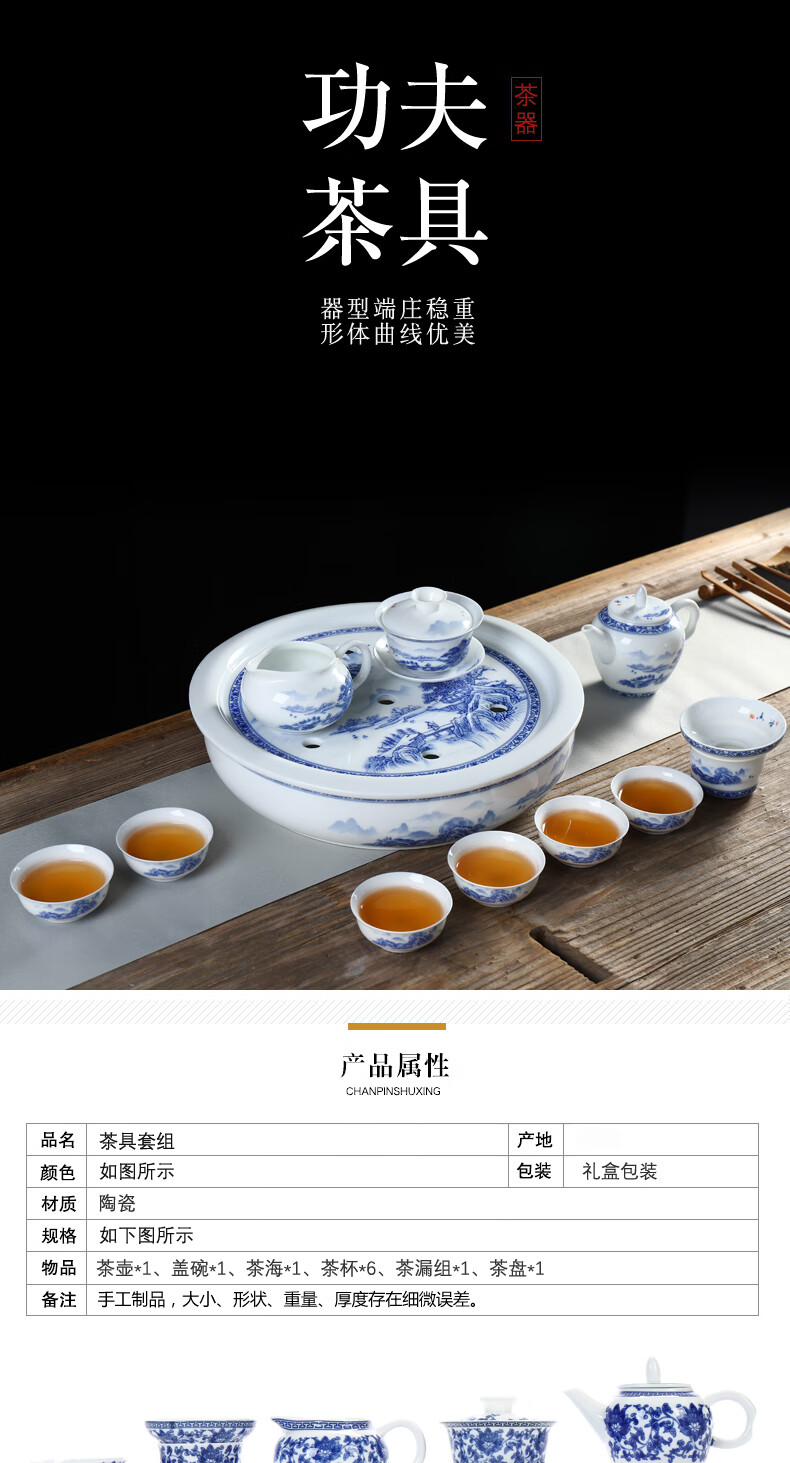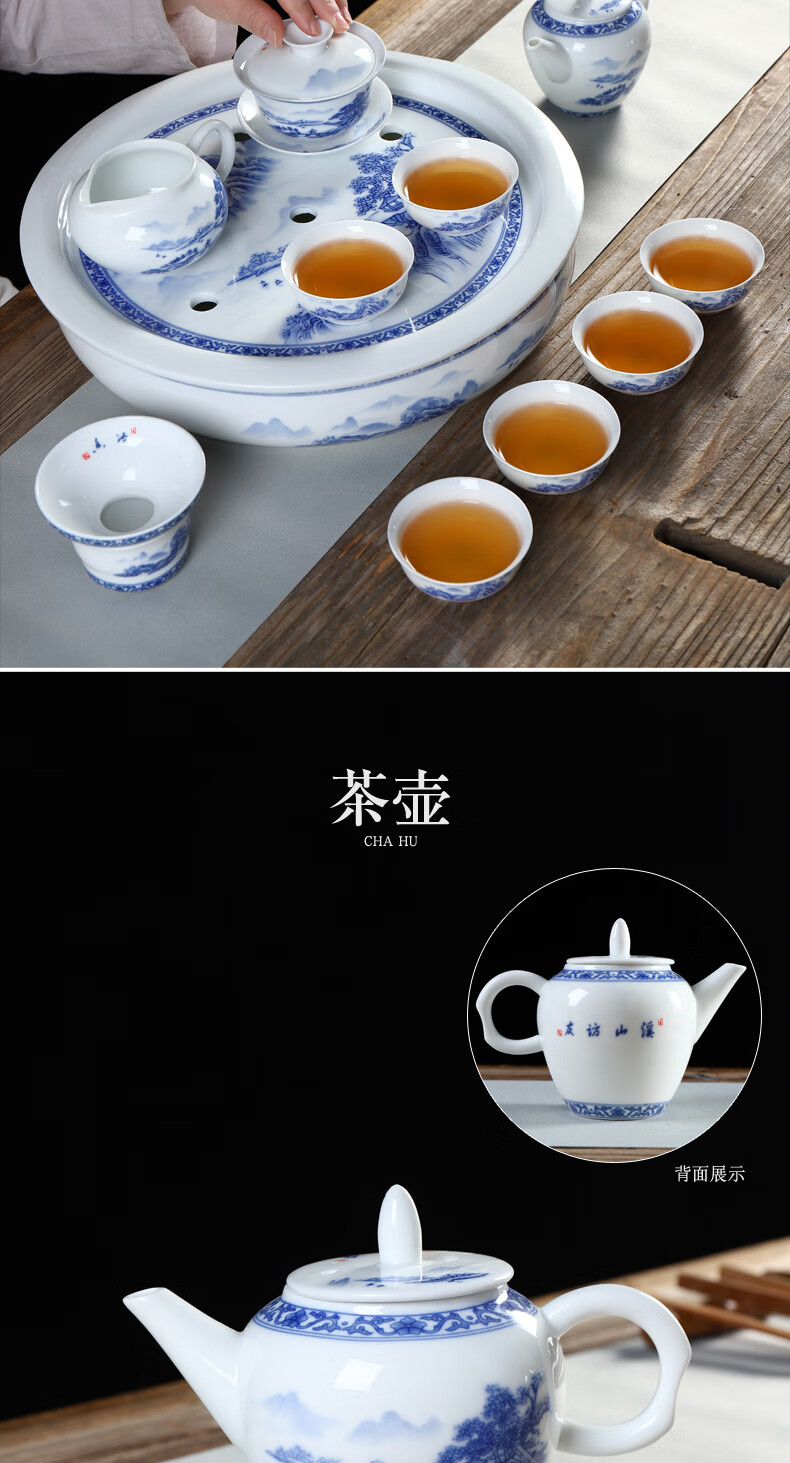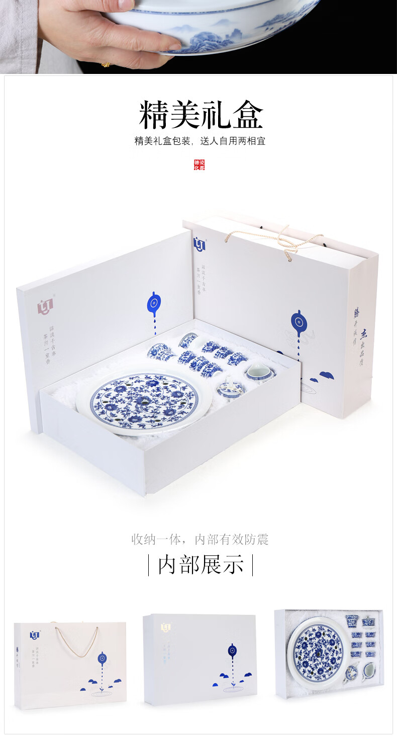 Kanglepin Jingdezhen Ceramic Kung Fu Tea Set Simple Home Anti-scald Teapot Teacup Tea Tray Complete Gift Box Blue Gold Dragon Tea Set