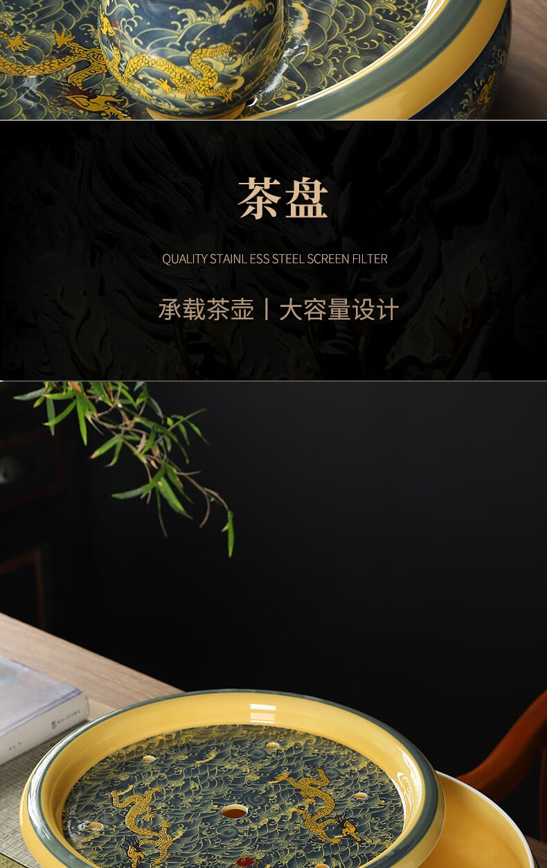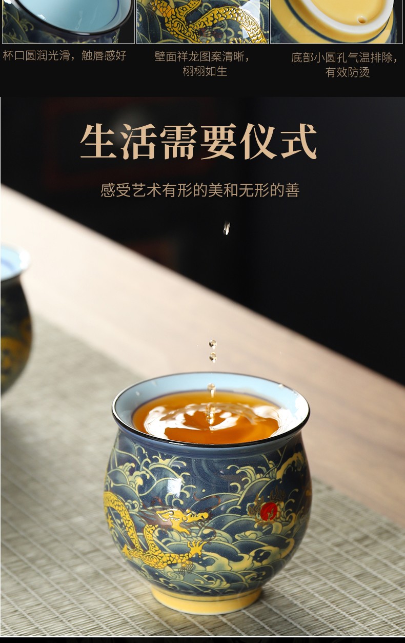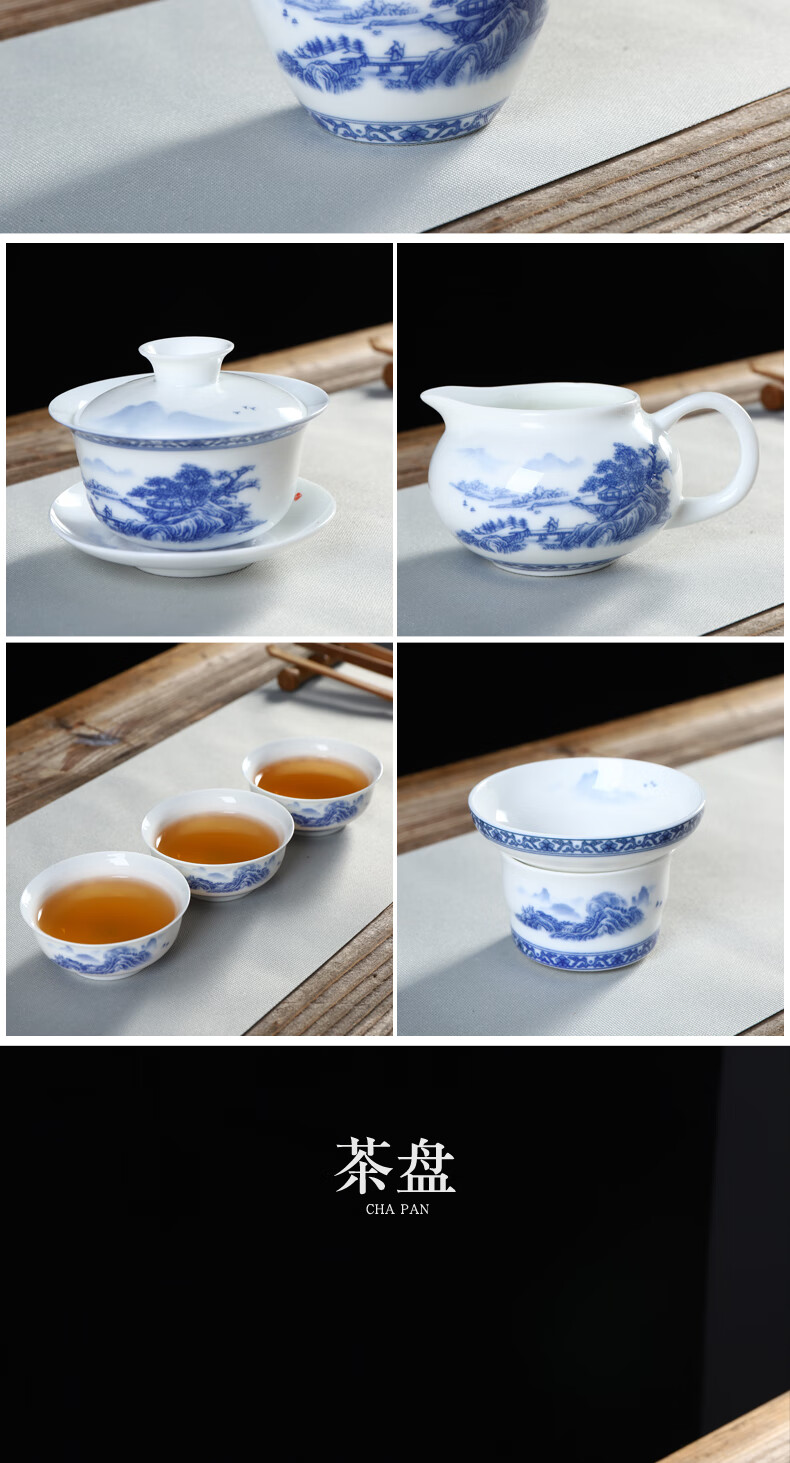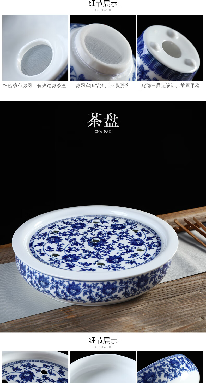Kanglepin Jingdezhen Ceramic Kung Fu Tea Set Simple Home Anti-scald Teapot Teacup Tea Tray Complete Gift Box Blue Gold Dragon Tea Set