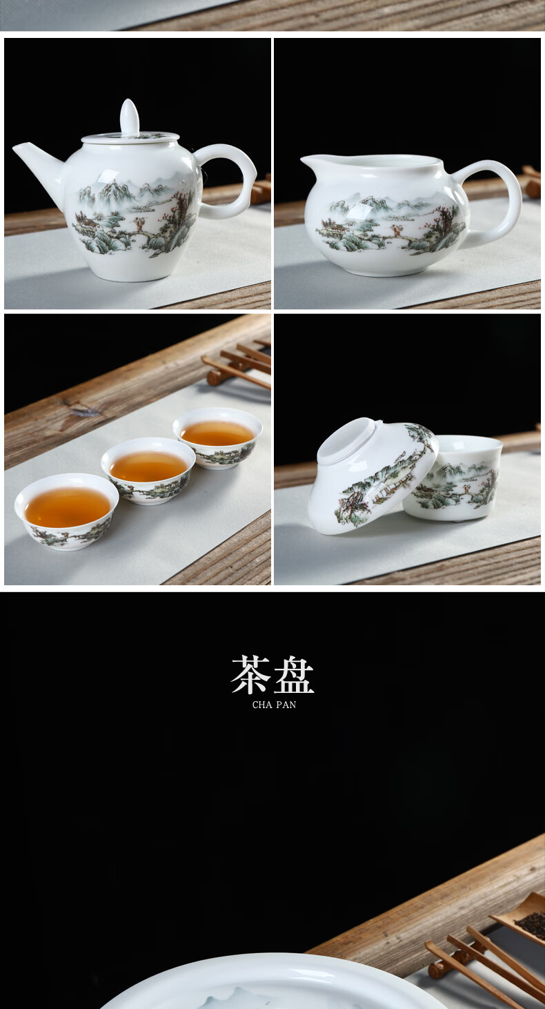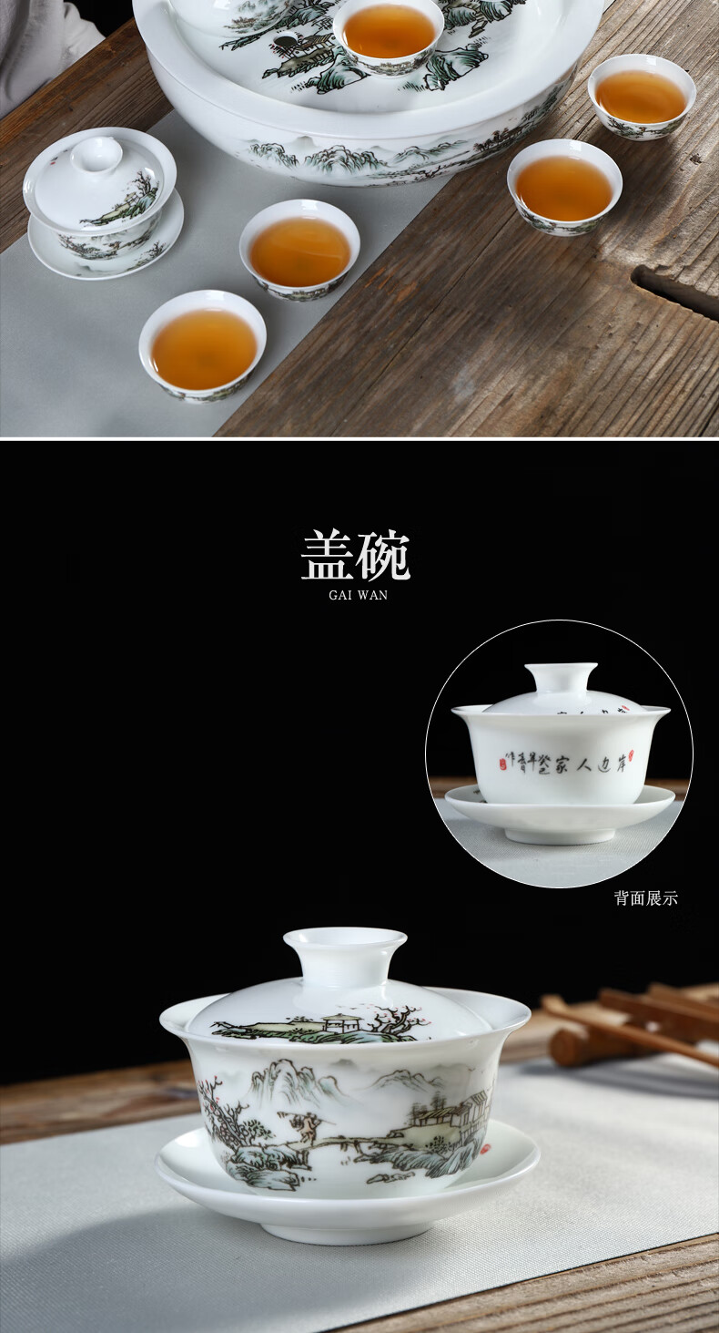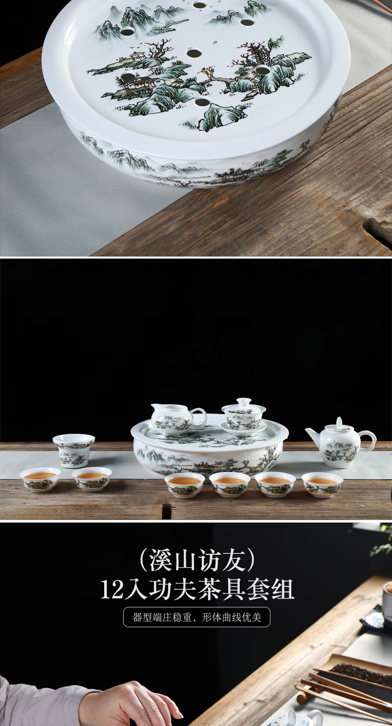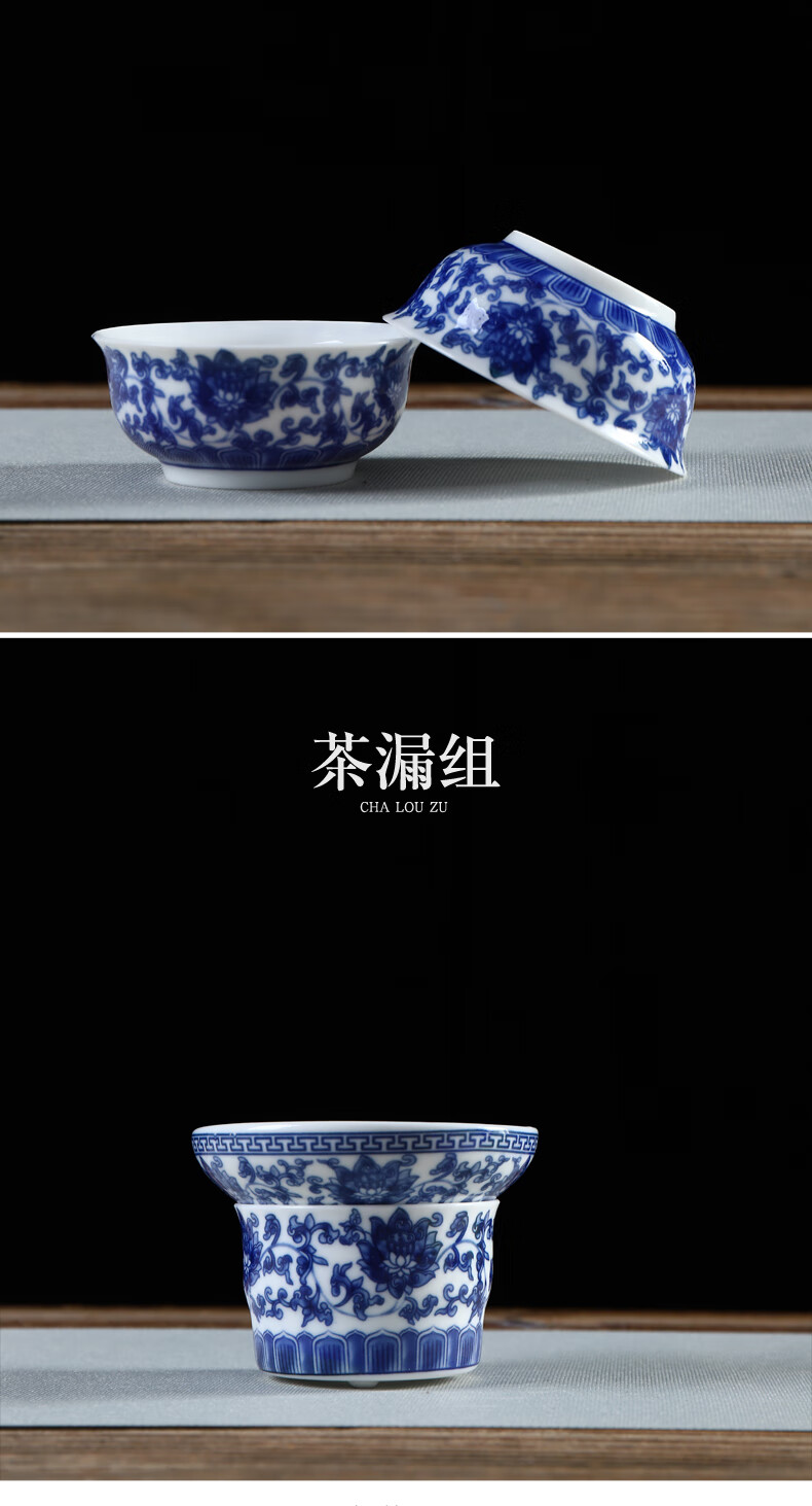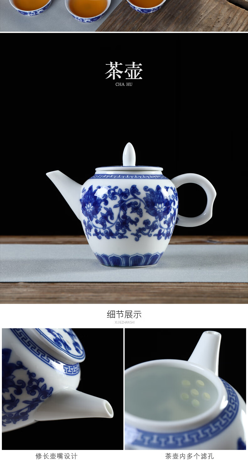 Kanglepin Jingdezhen Ceramic Kung Fu Tea Set Simple Home Anti-scald Teapot Teacup Tea Tray Complete Gift Box Blue Gold Dragon Tea Set