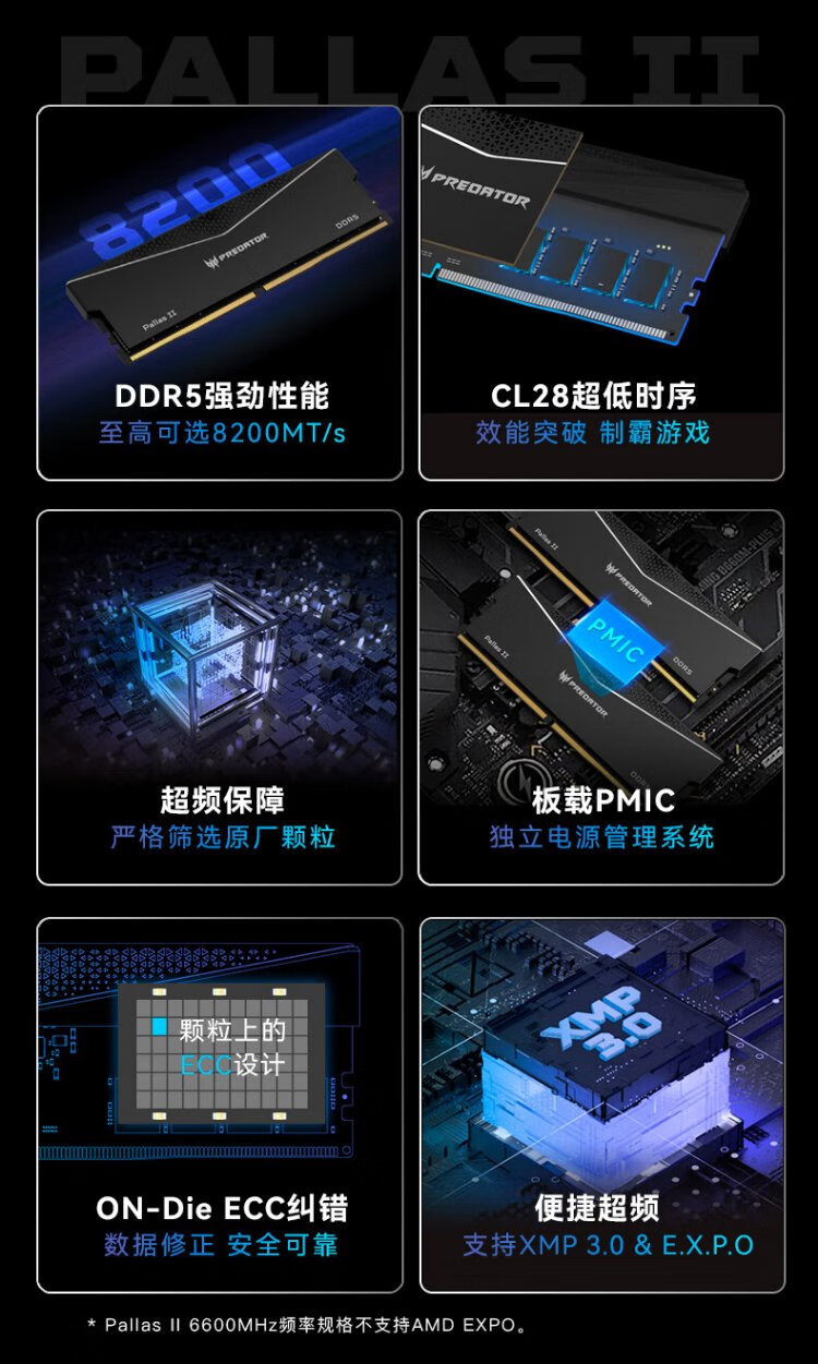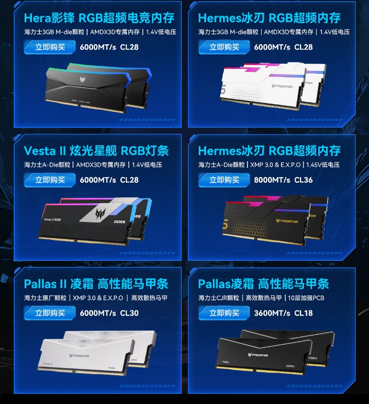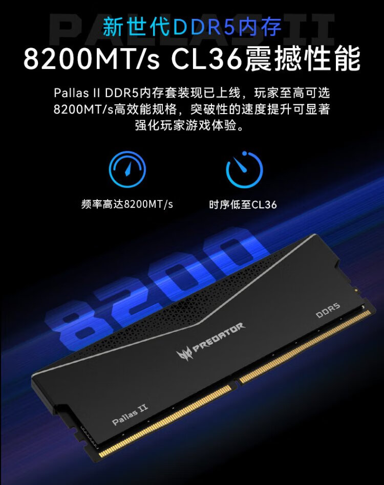 Acer PREDATOR 32G (16G 2) set DDR5 6000 frequency desktop memory stick Pallas II Lingshuang series (C32) Shi Yaohei AI computer accessories