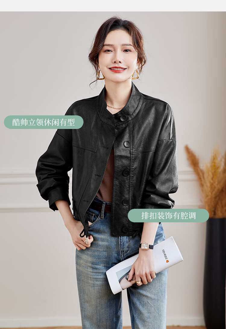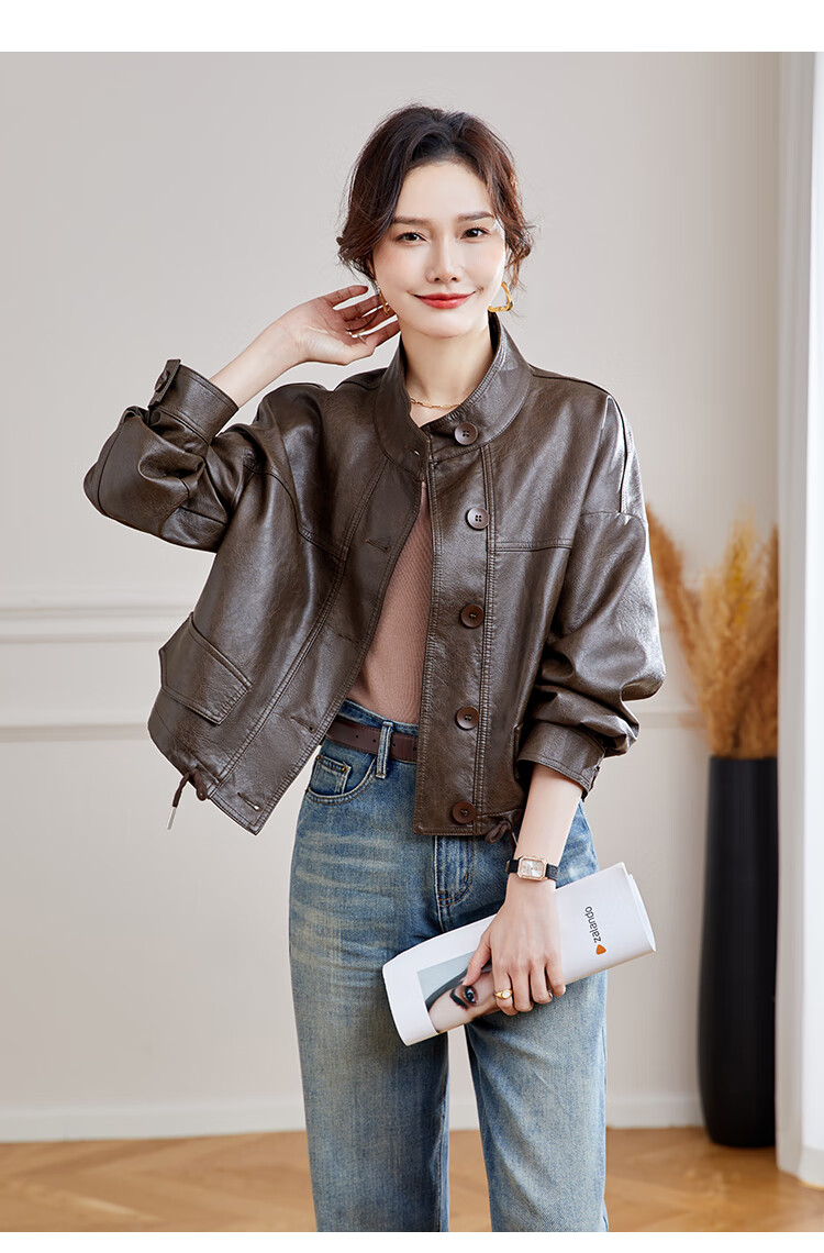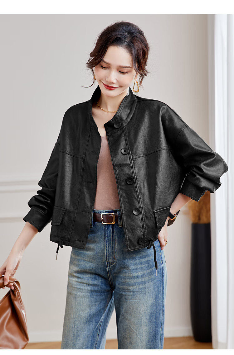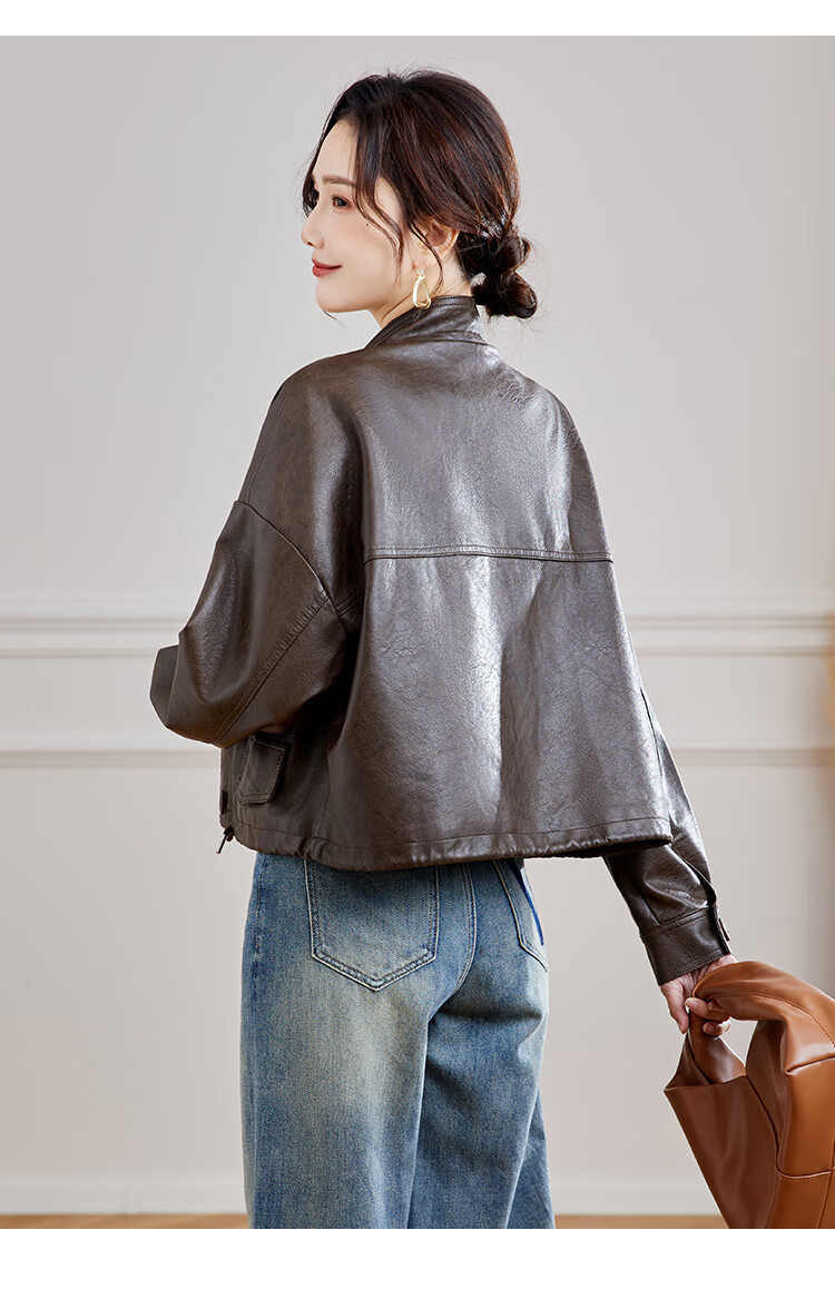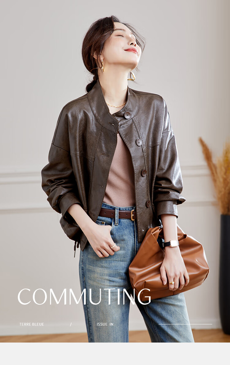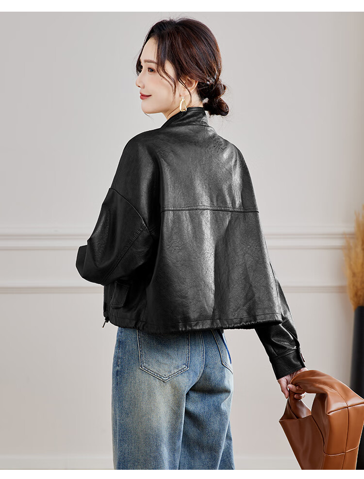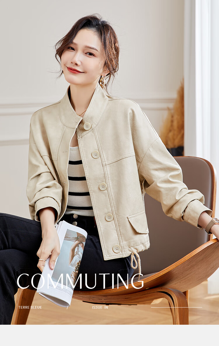 TERRE BLEUE Leather Jacket for Women 2025 Spring and Autumn New Slim Fit Versatile Jacket Motorcycle Long Sleeve Short PU Leather Jacket for Women