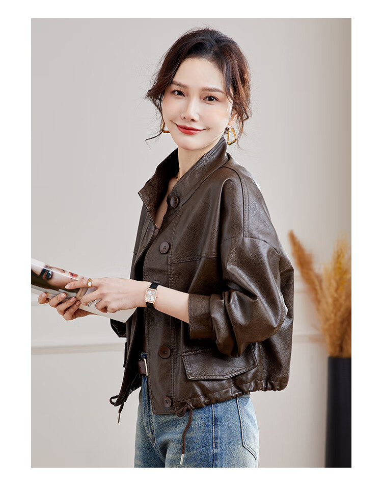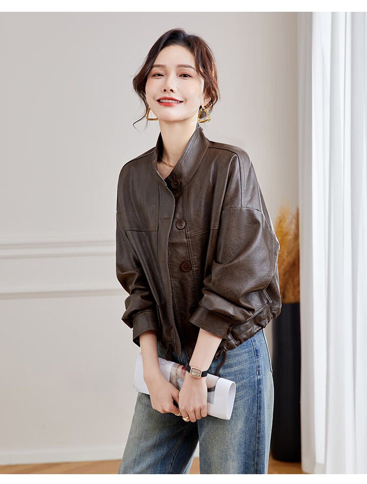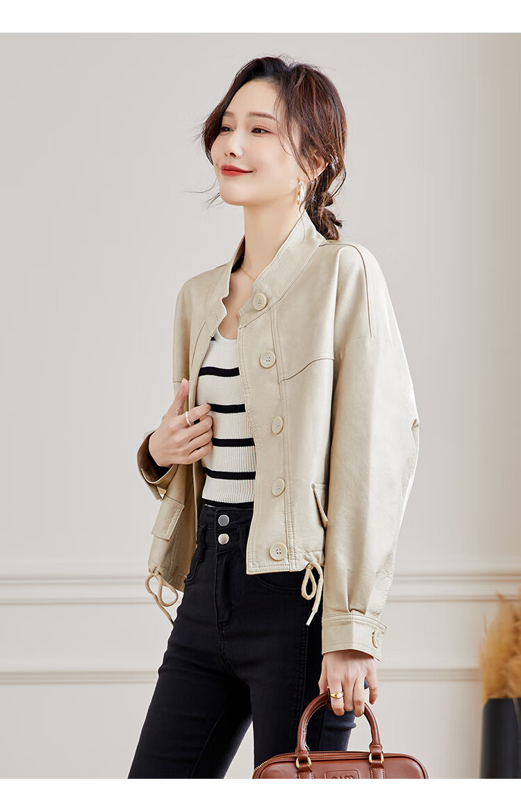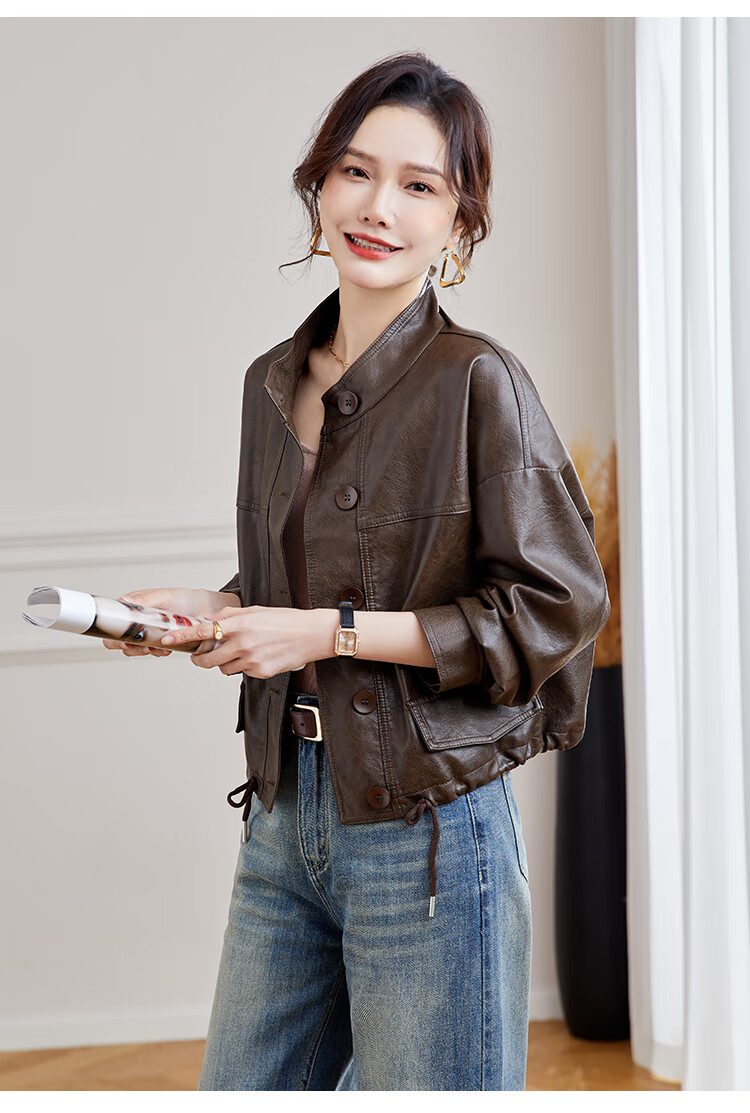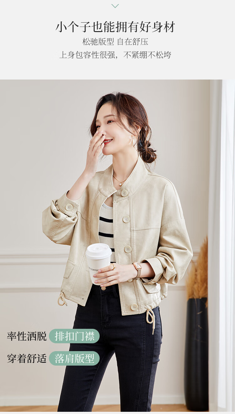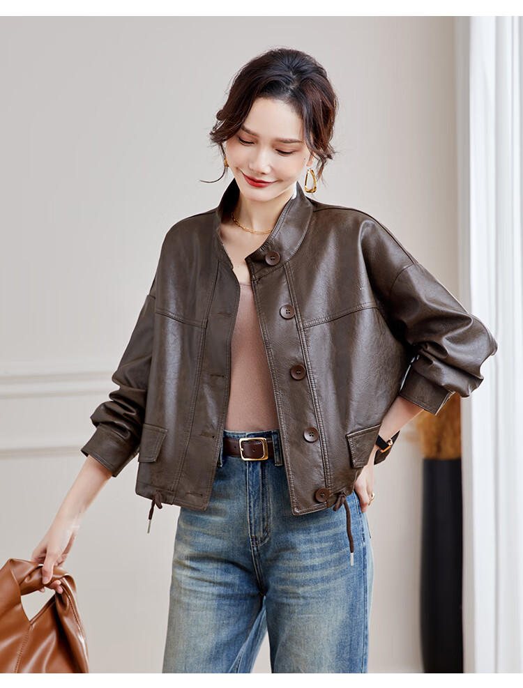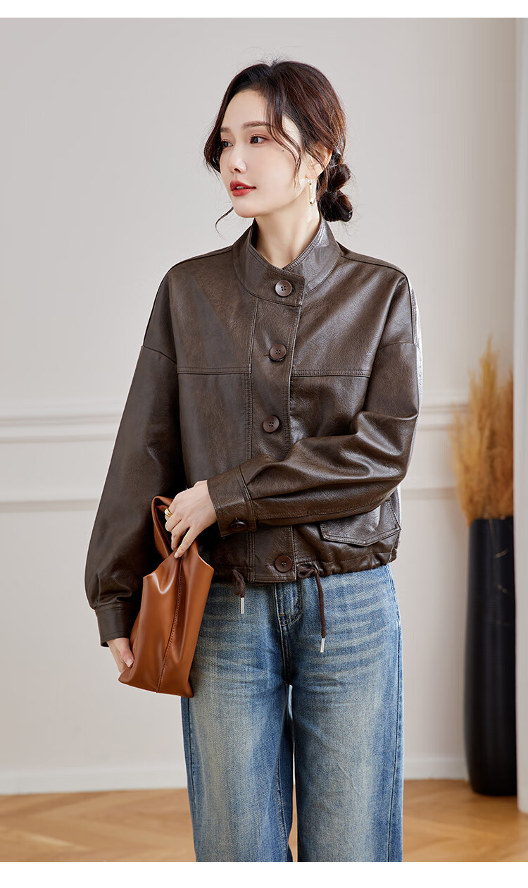 TERRE BLEUE Leather Jacket for Women 2025 Spring and Autumn New Slim Fit Versatile Jacket Motorcycle Long Sleeve Short PU Leather Jacket for Women