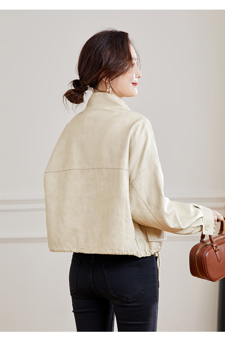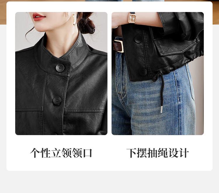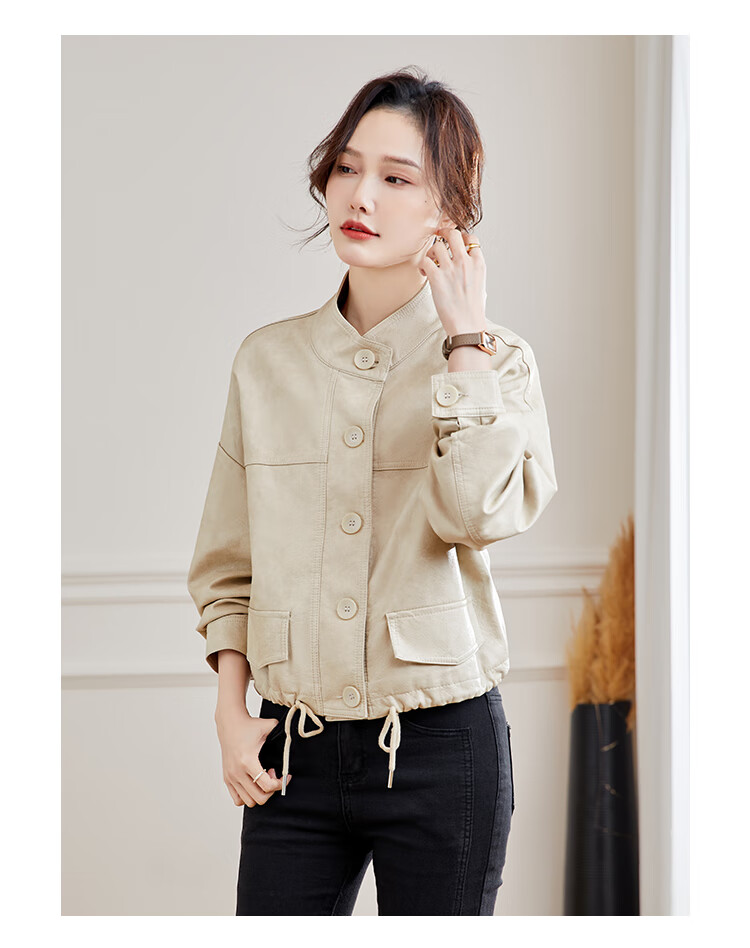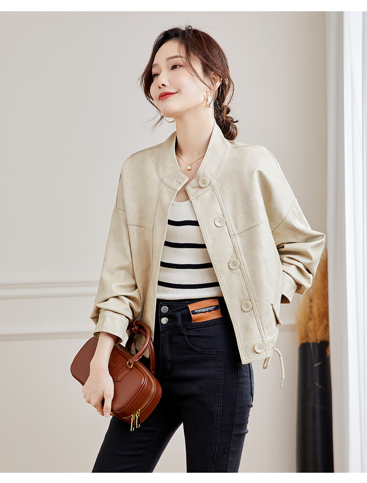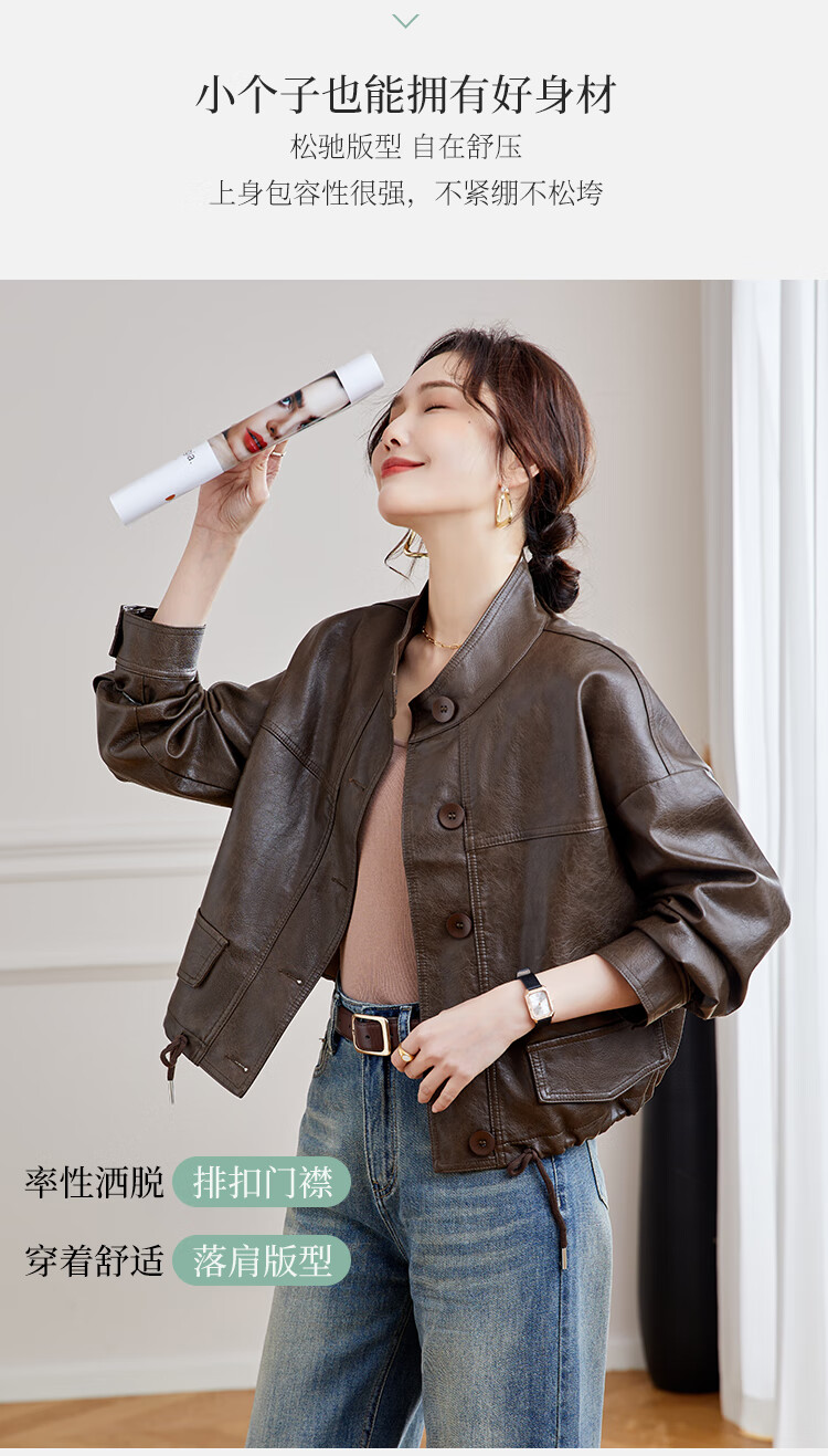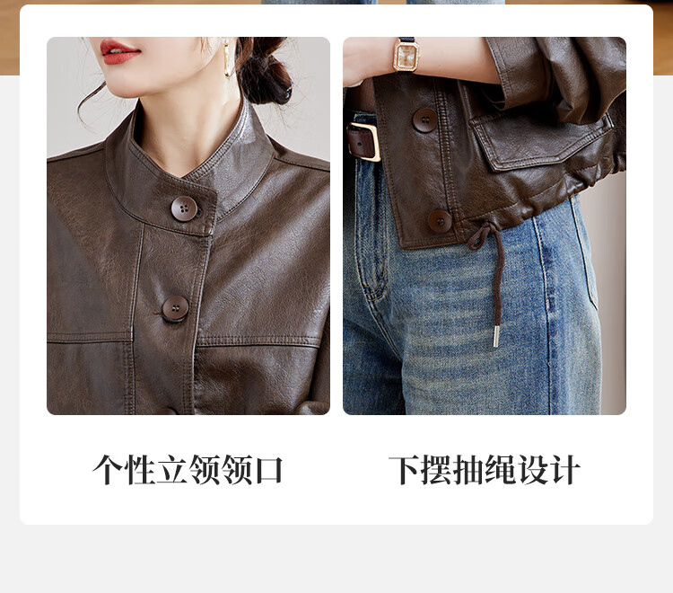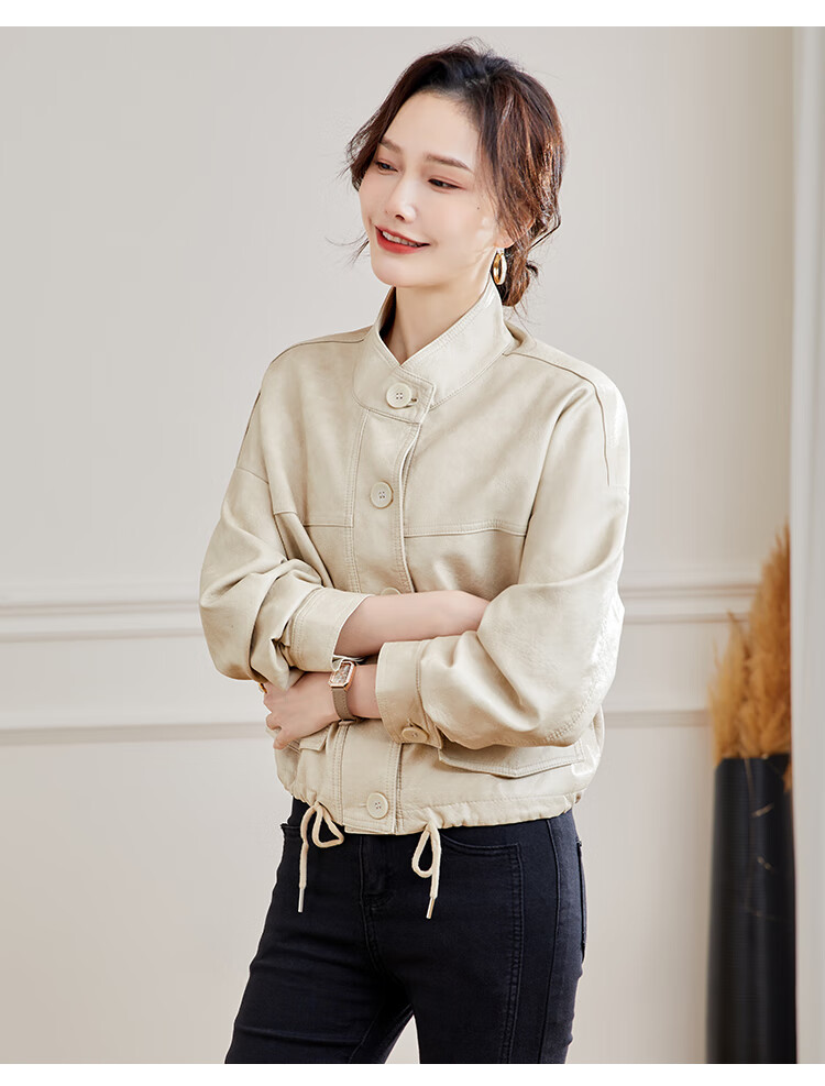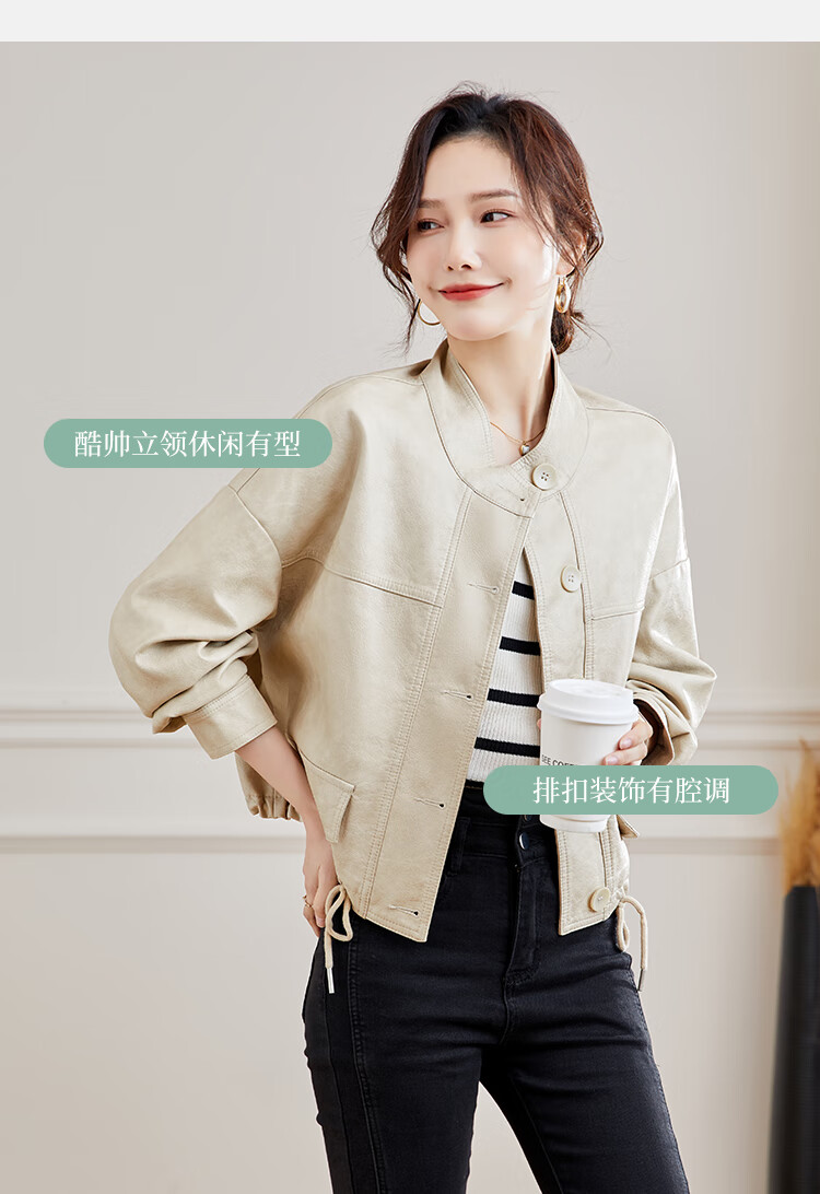 TERRE BLEUE Leather Jacket for Women 2025 Spring and Autumn New Slim Fit Versatile Jacket Motorcycle Long Sleeve Short PU Leather Jacket for Women