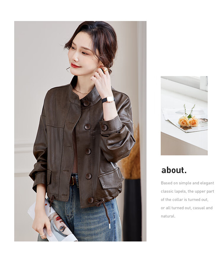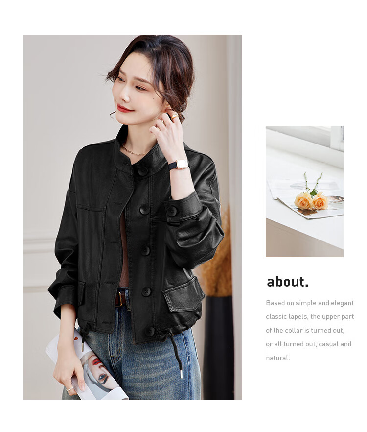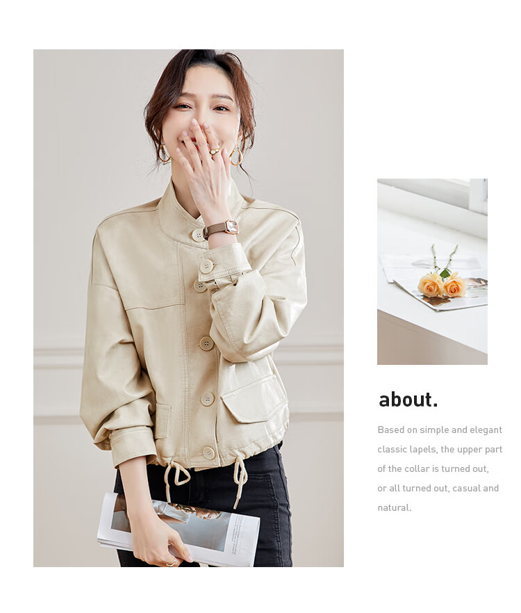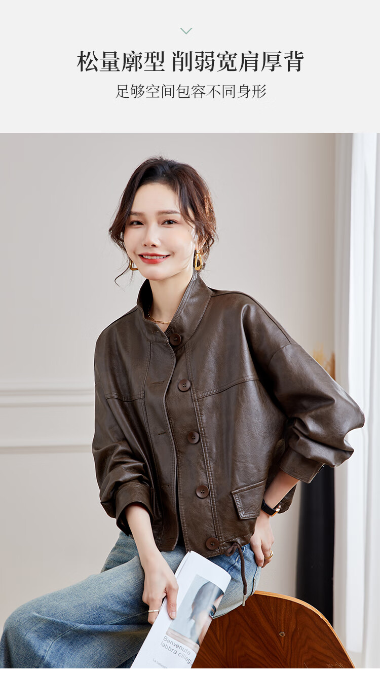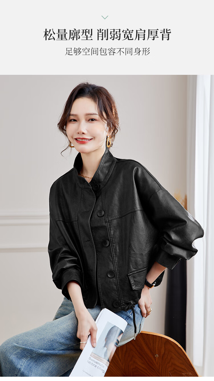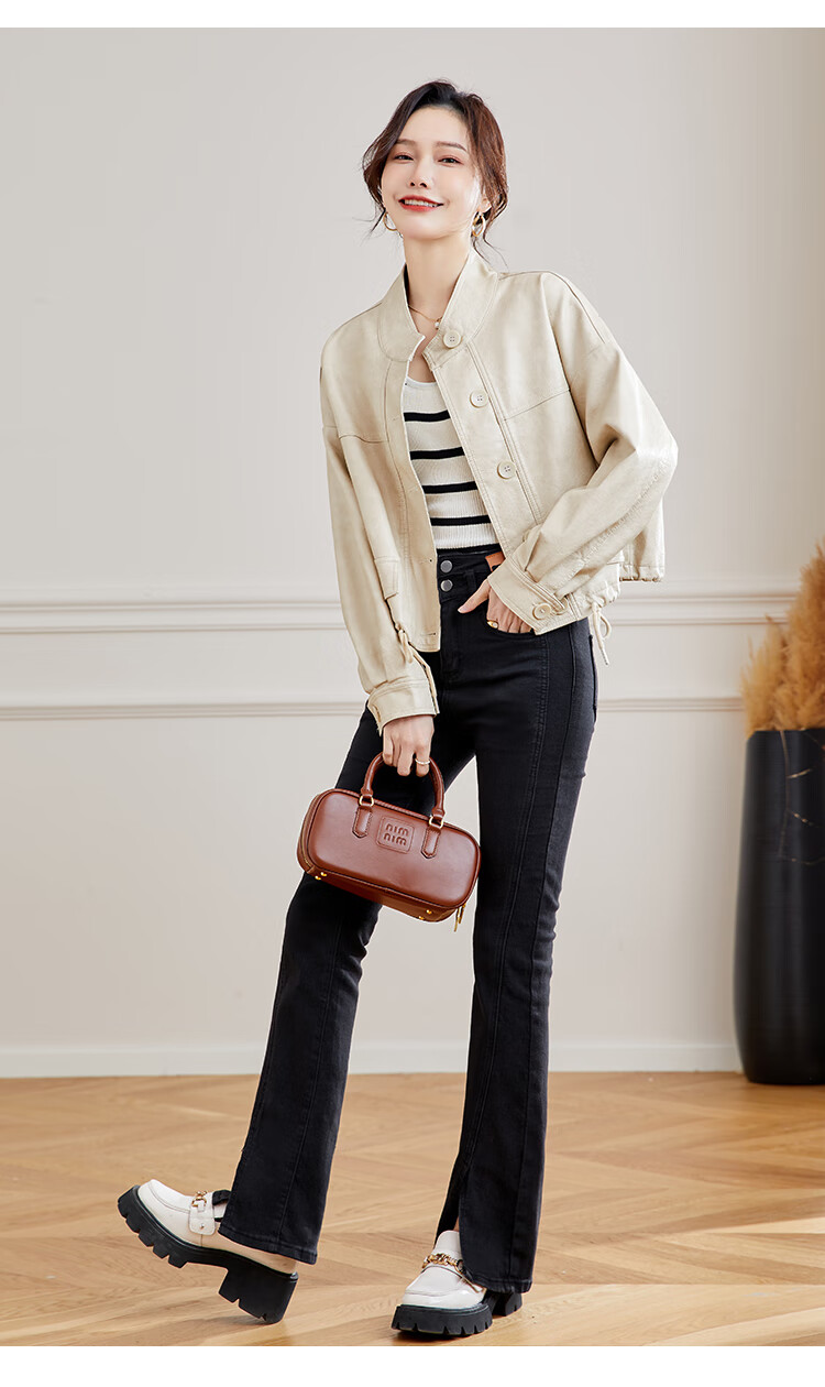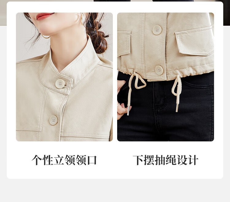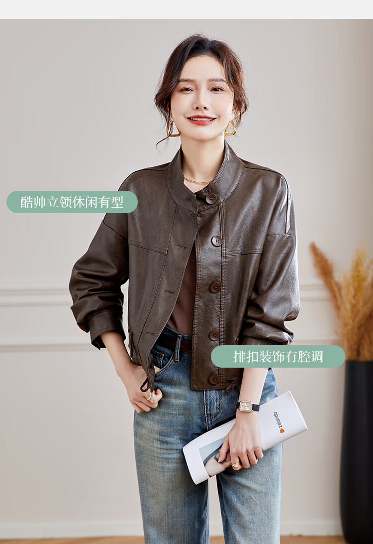 TERRE BLEUE Leather Jacket for Women 2025 Spring and Autumn New Slim Fit Versatile Jacket Motorcycle Long Sleeve Short PU Leather Jacket for Women