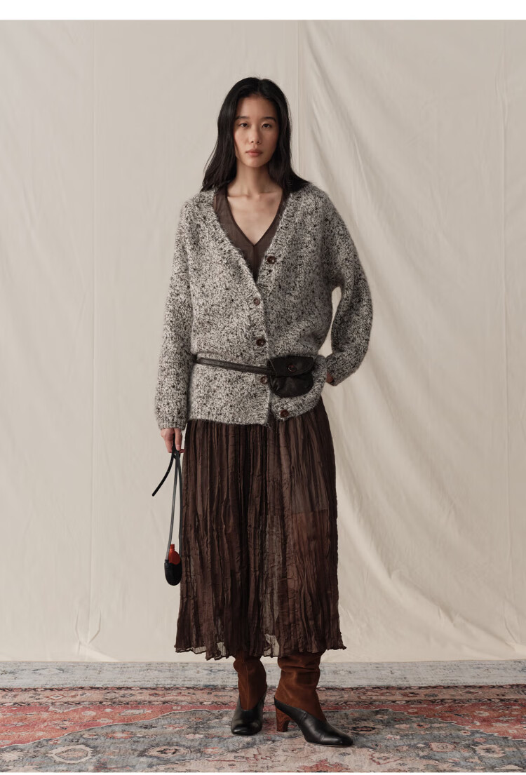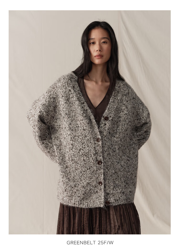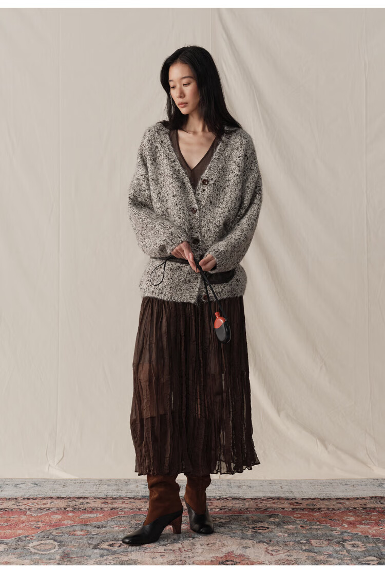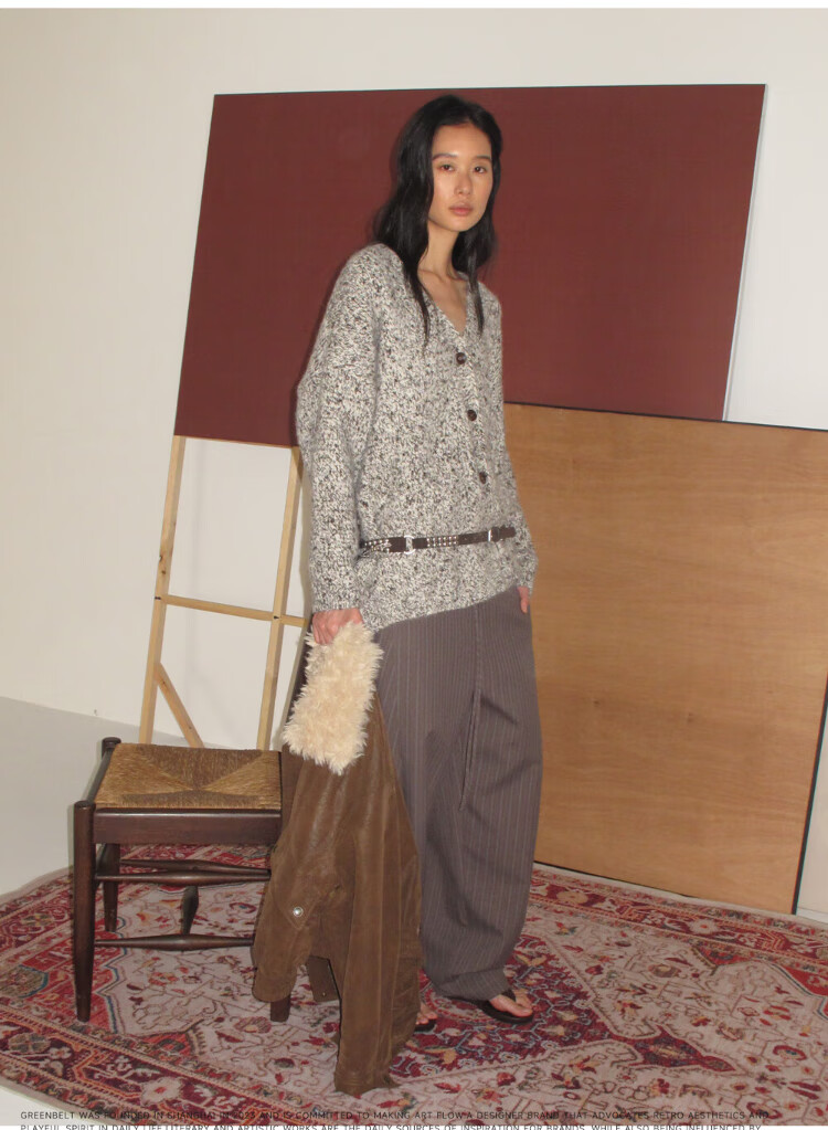 GREEN BELT sheep wool mixed color floral knitted cardigan 25 winter women's lazy style silhouette sweater jacket