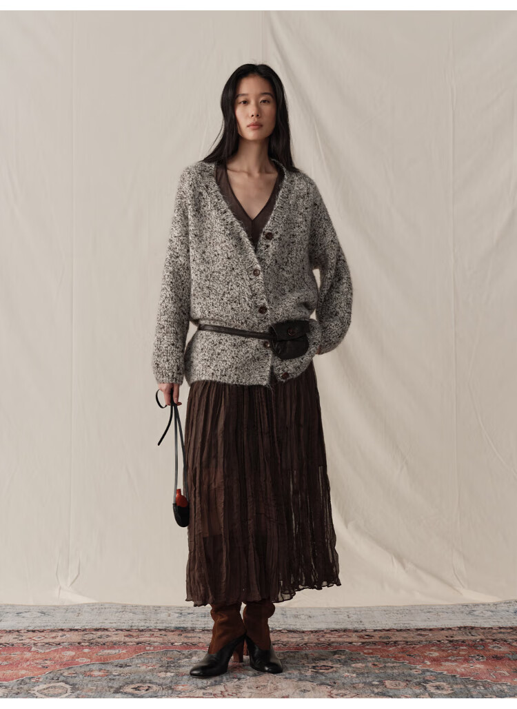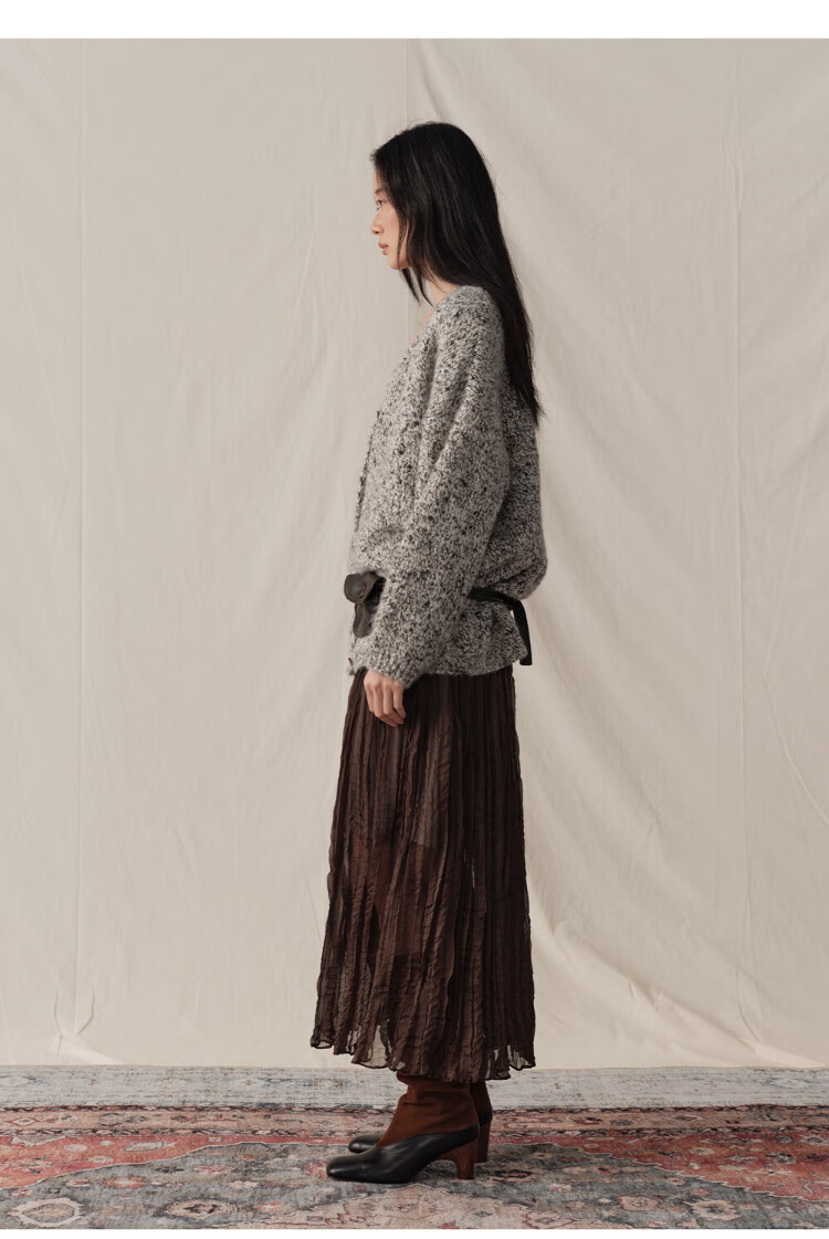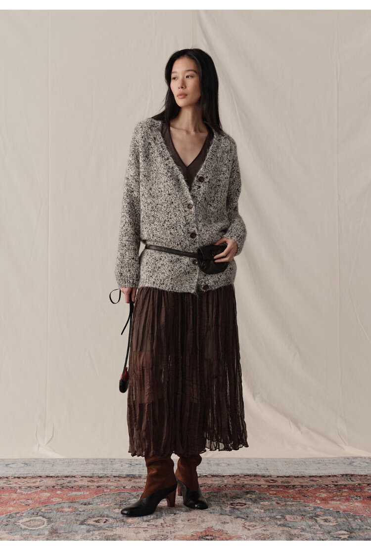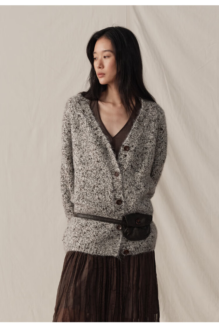 GREEN BELT sheep wool mixed color floral knitted cardigan 25 winter women's lazy style silhouette sweater jacket