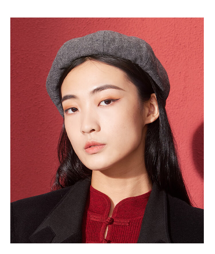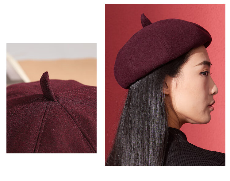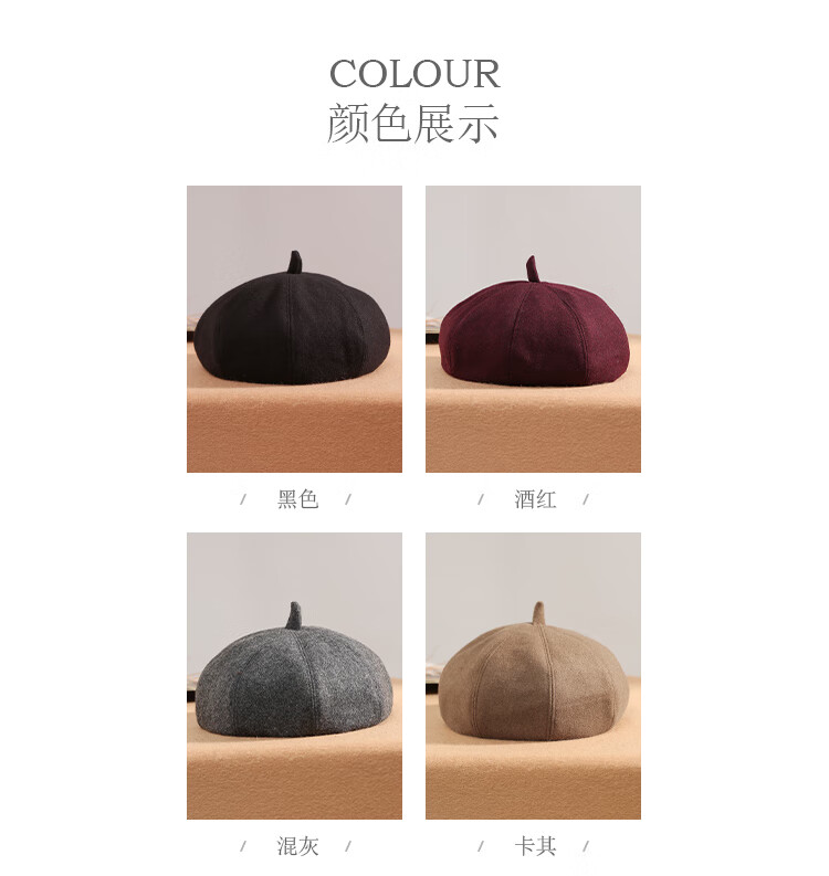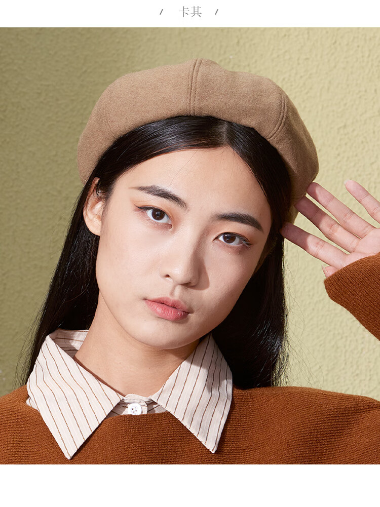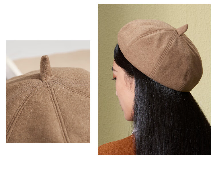 Shanghai Story Women's Hat Autumn and Winter Wool Octagonal Hat Painter Hat Pumpkin Hat Showing Your Face Small Birthday Gift Khaki