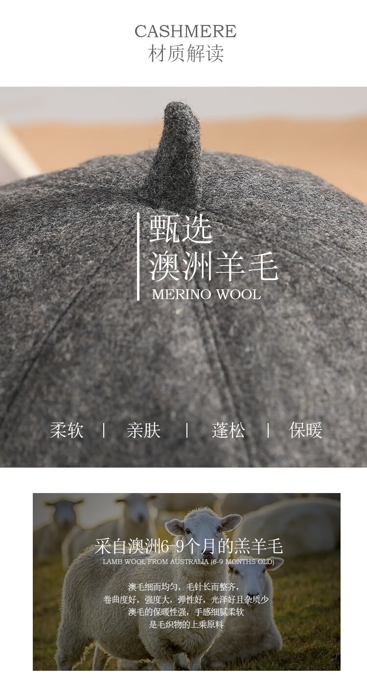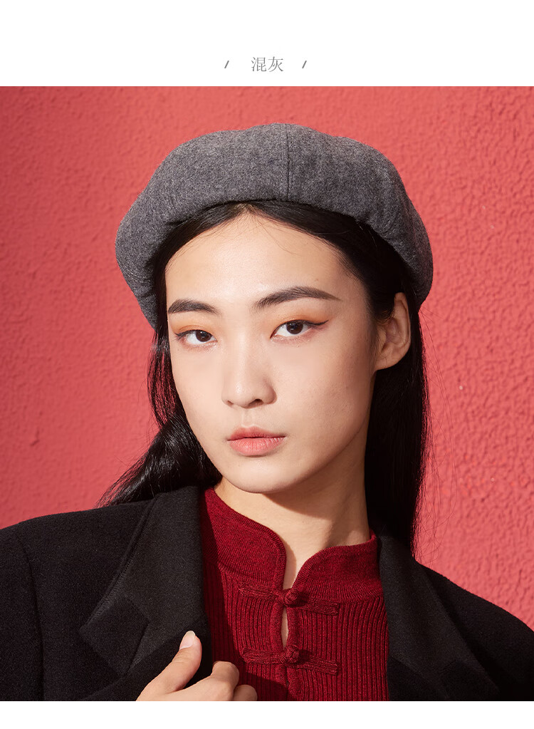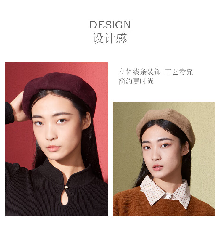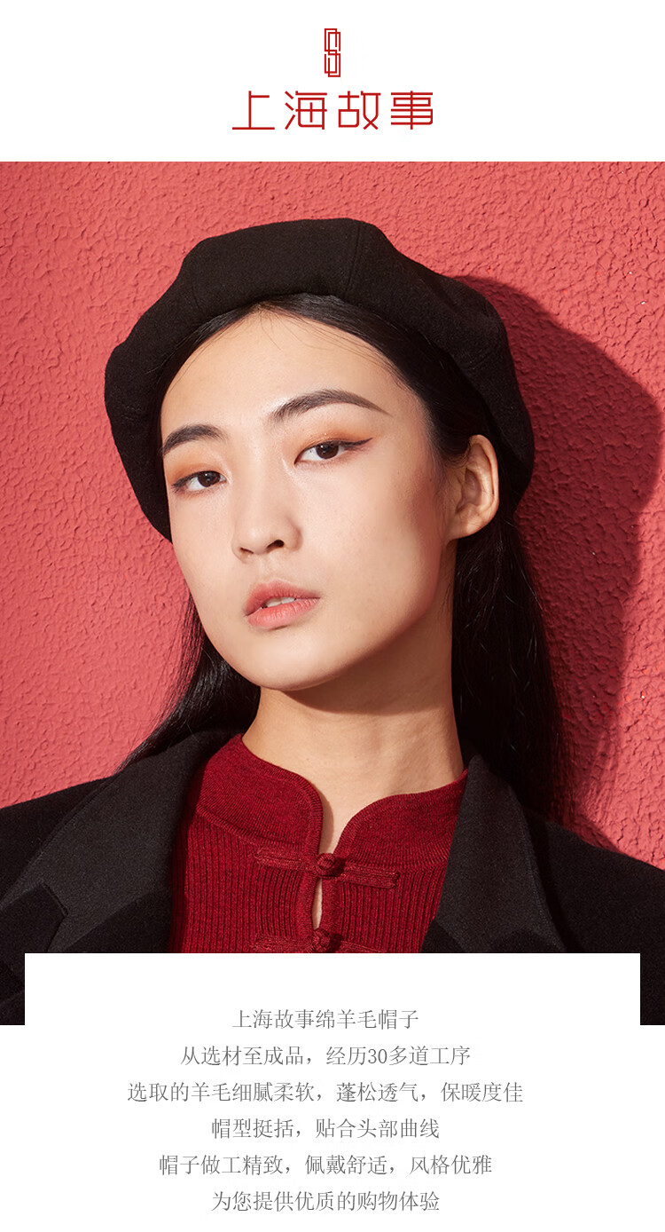 Shanghai Story Women's Hat Autumn and Winter Wool Octagonal Hat Painter Hat Pumpkin Hat Showing Your Face Small Birthday Gift Khaki