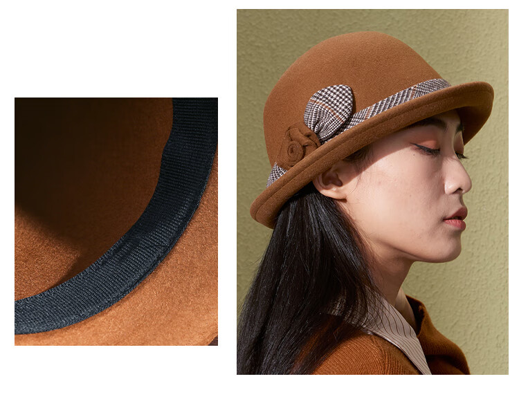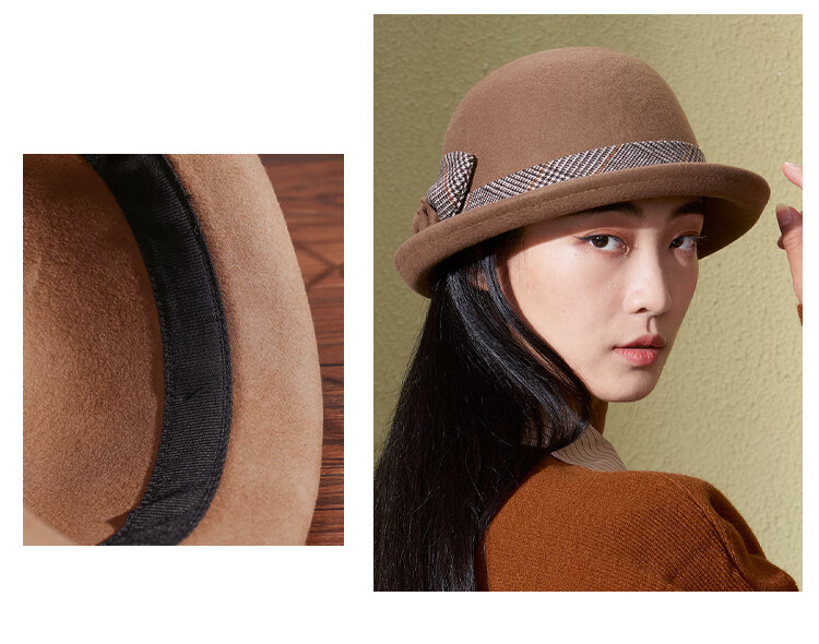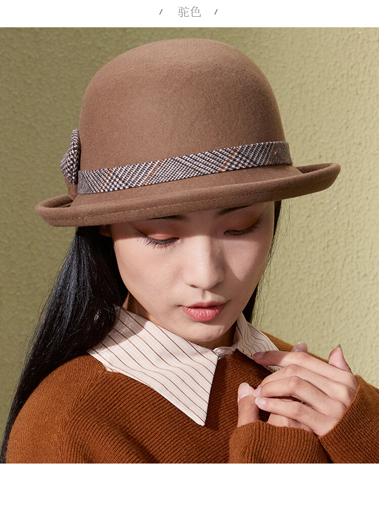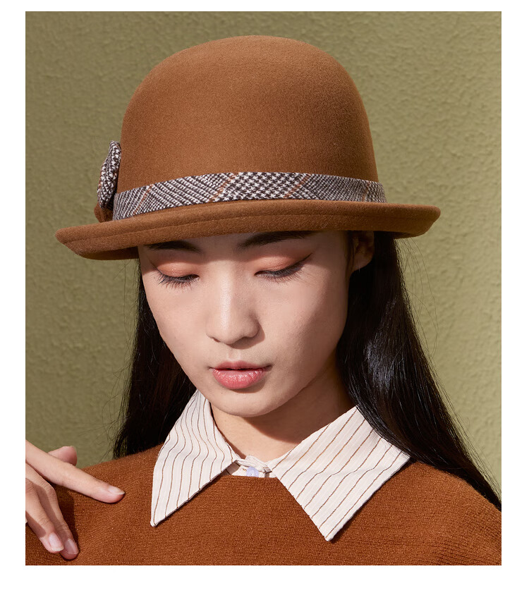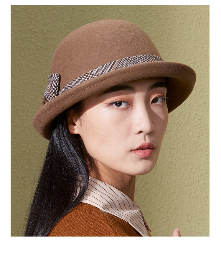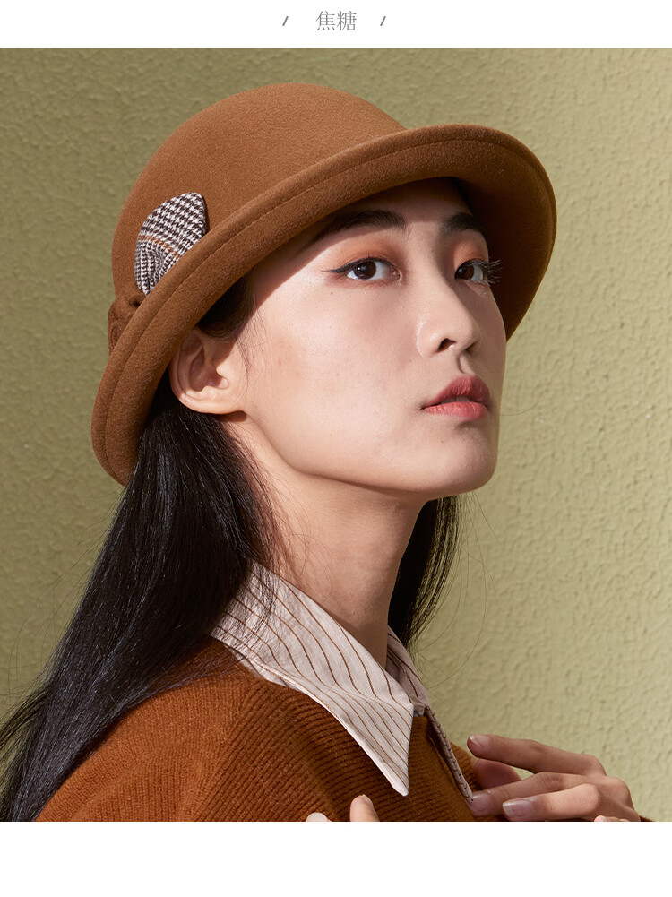 Shanghai Story Women's 100% Wool Felt Hat Autumn and Winter Bowler Hat Warmth as a Birthday Gift for Mom Caramel