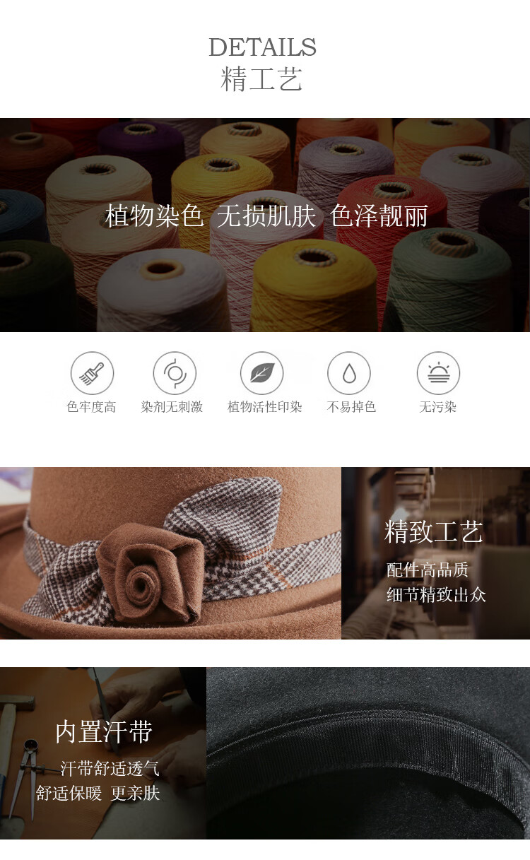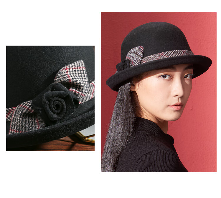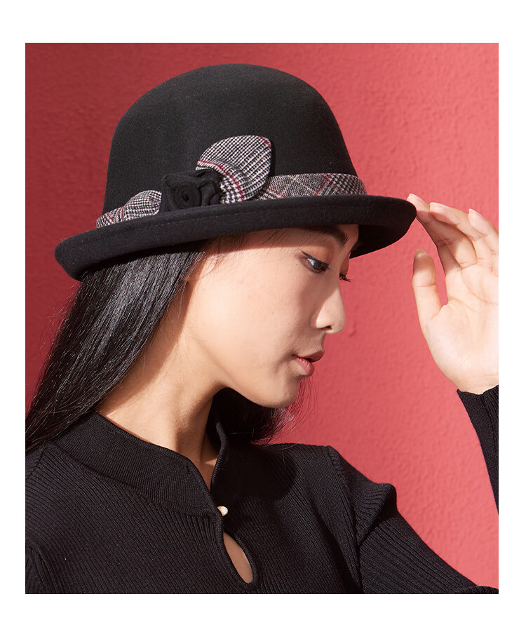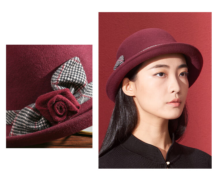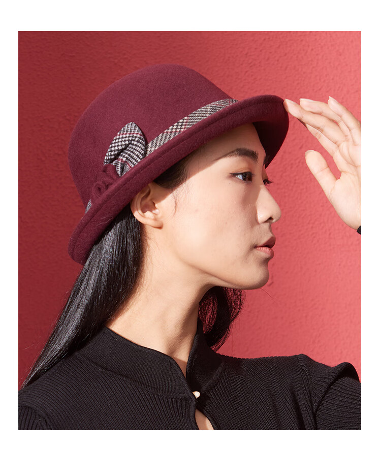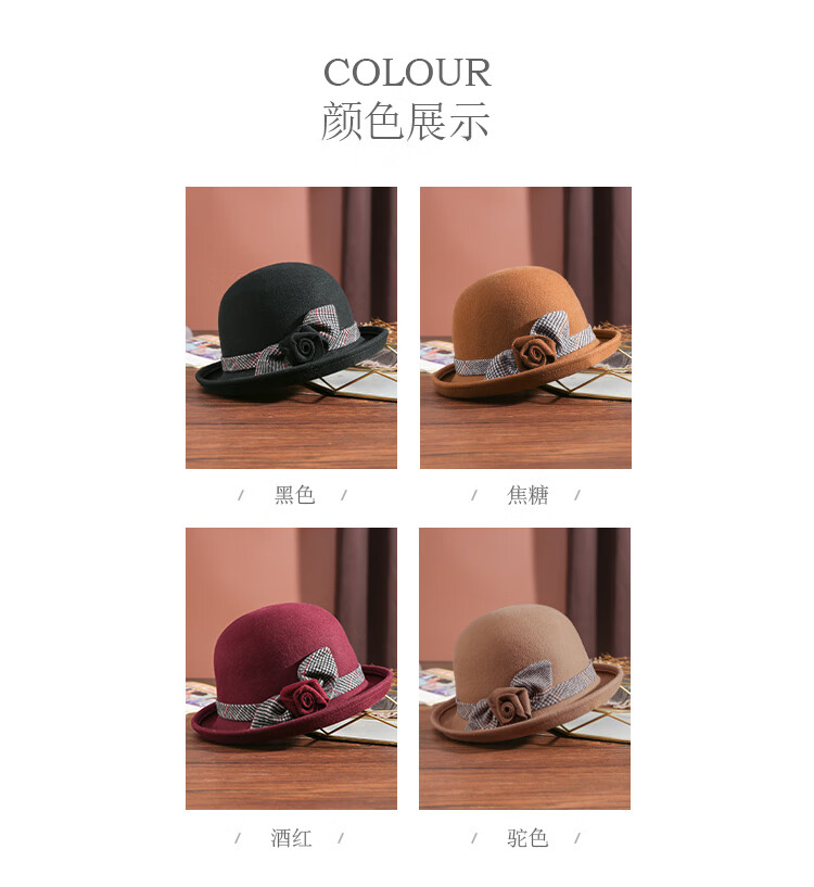 Shanghai Story Women's 100% Wool Felt Hat Autumn and Winter Bowler Hat Warmth as a Birthday Gift for Mom Caramel