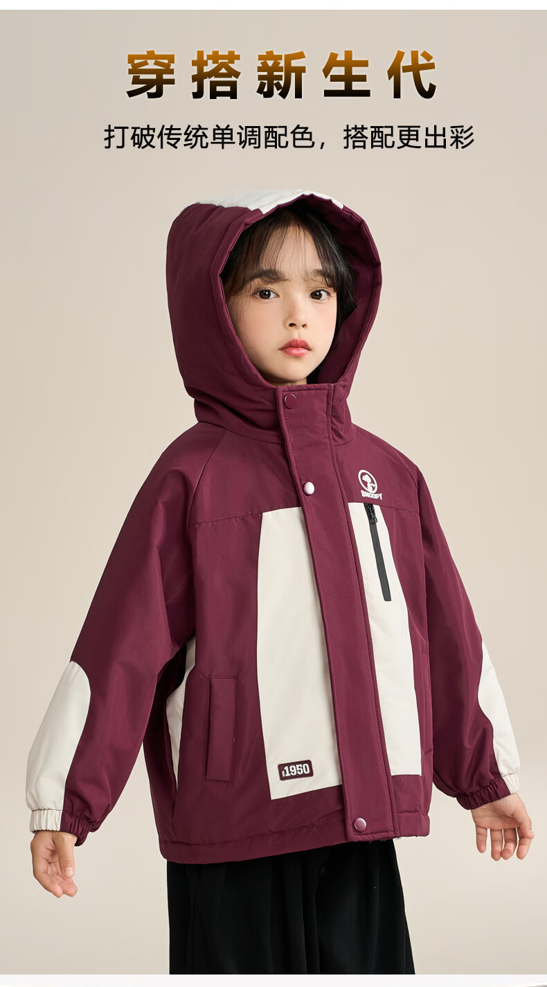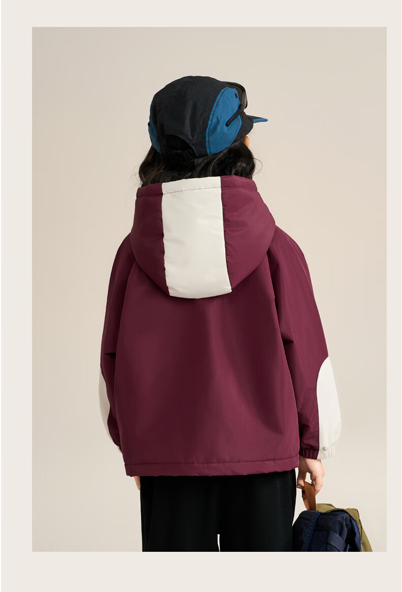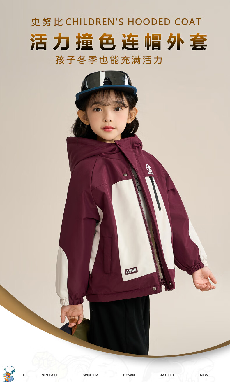 Snoopy (SNOOPY) children's clothing children's fleece jacket boys and girls hooded autumn and winter warm outdoor clothing top dark red 140