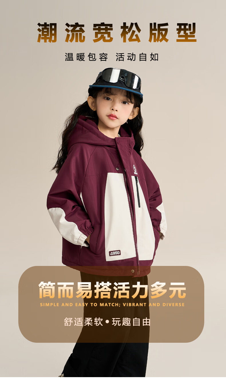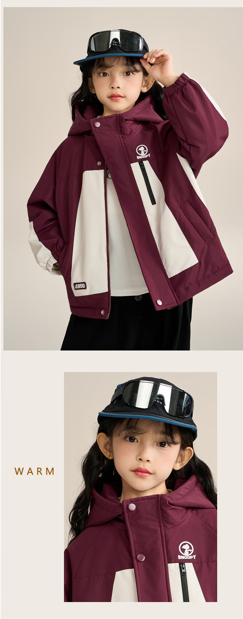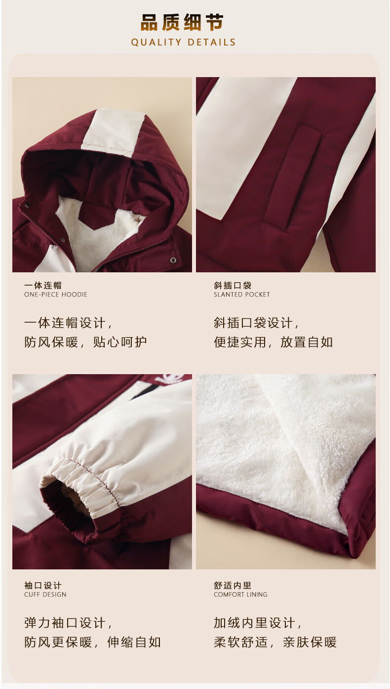Snoopy (SNOOPY) children's clothing children's fleece jacket boys and girls hooded autumn and winter warm outdoor clothing top dark red 140