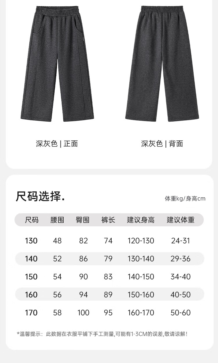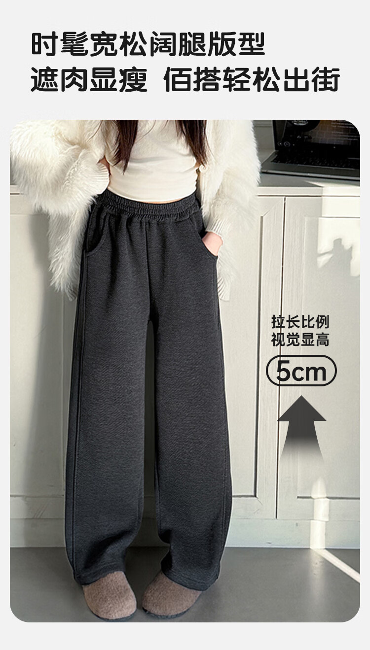 Disney Children's Autumn and Winter Wide Leg Pants Girls' Straight Pants Plus Velvet Thickened Women's Pants PBZPL3146 Dark Gray 160