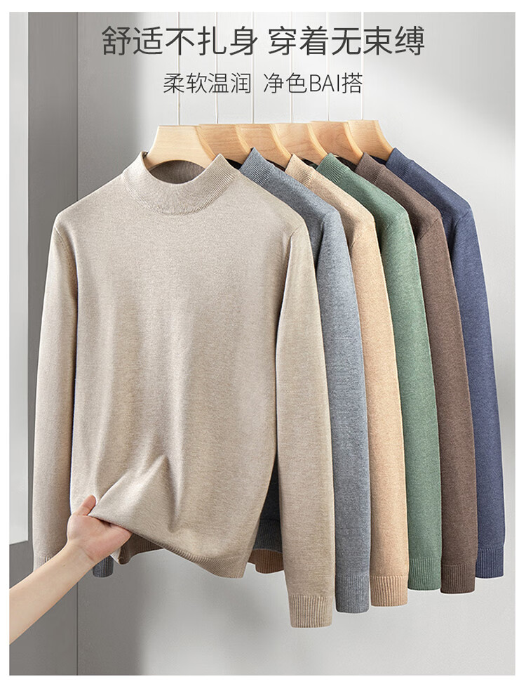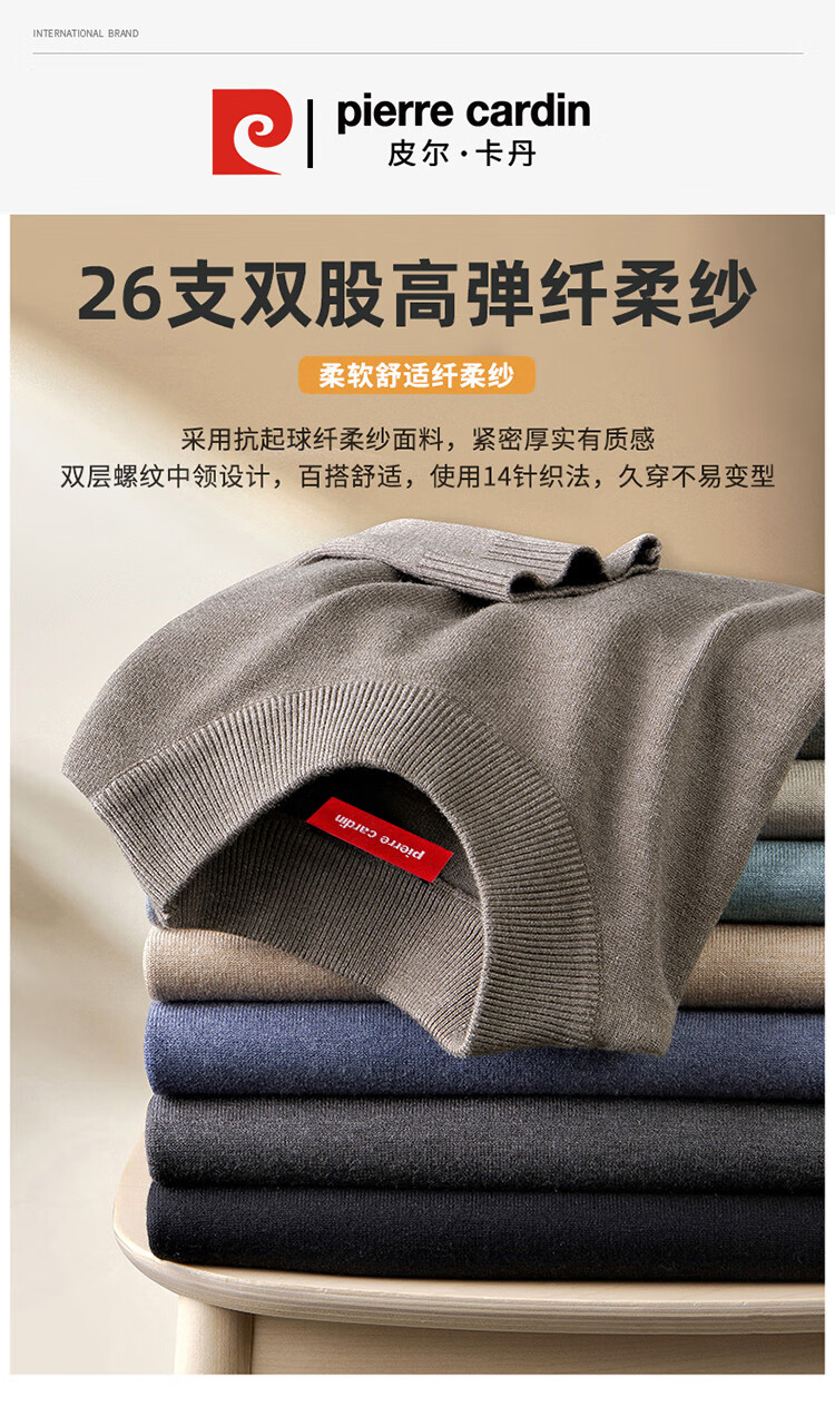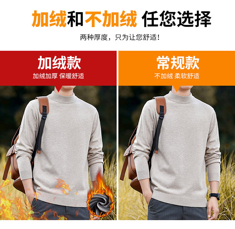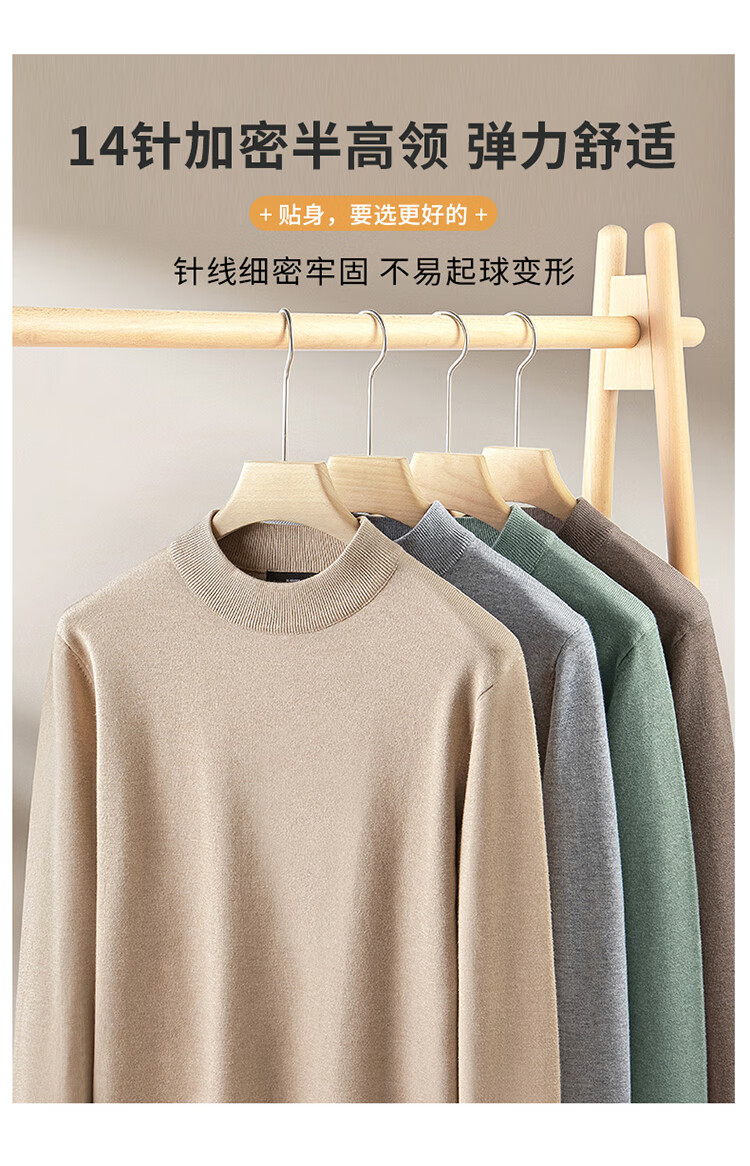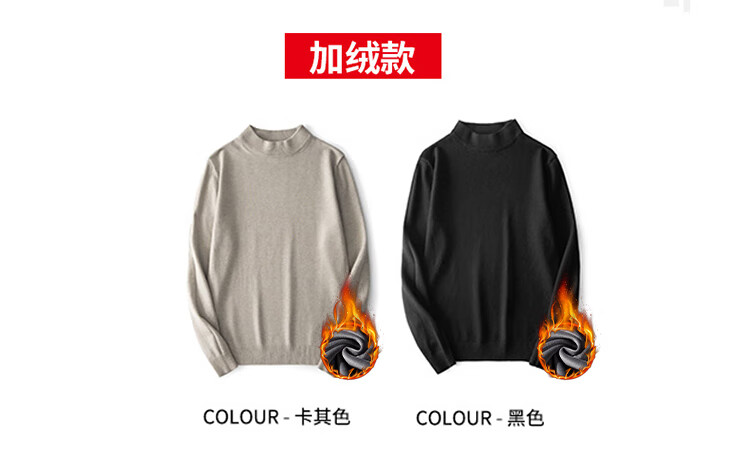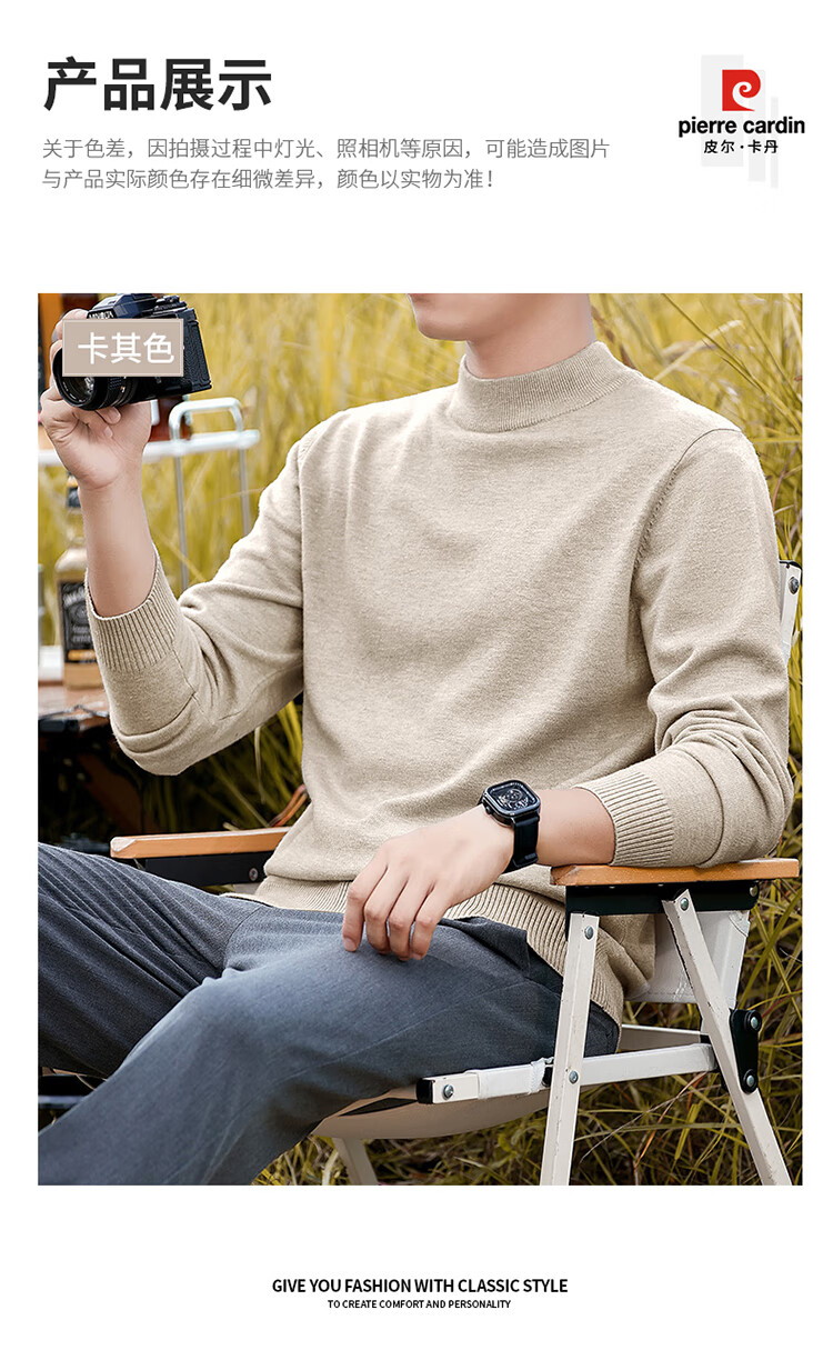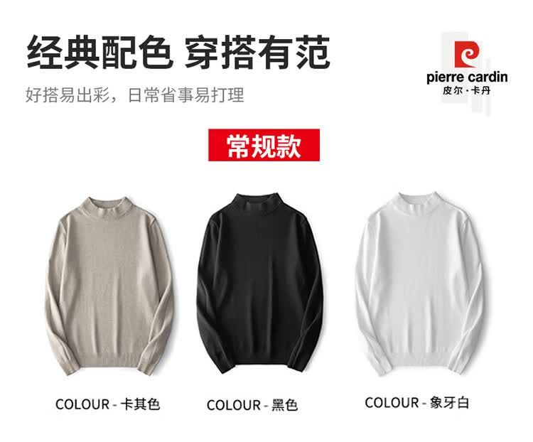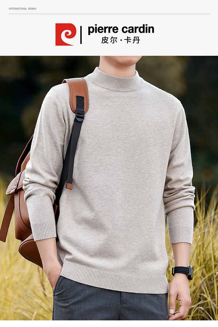 Pierre Cardin half turtleneck sweater for men autumn and winter warm inner sweater men's solid color casual top khaki 2XL