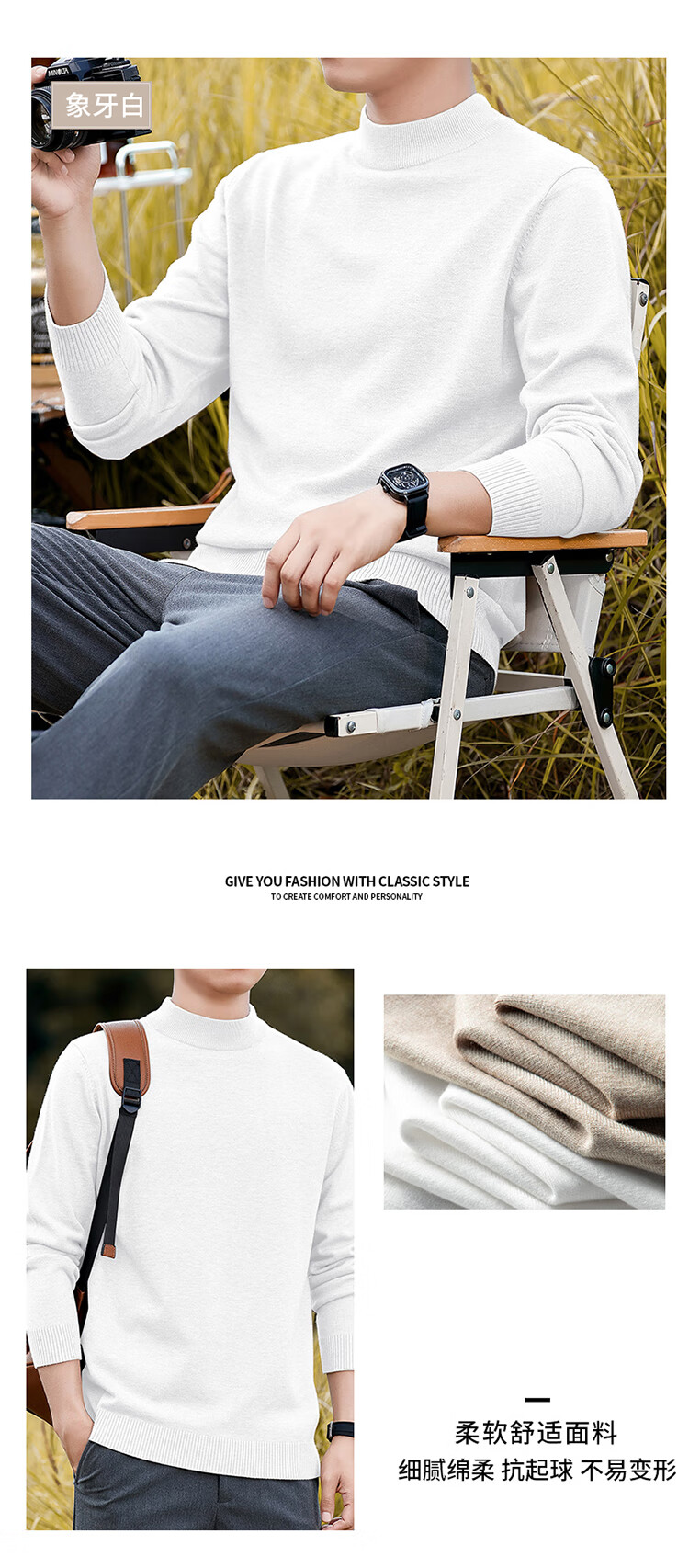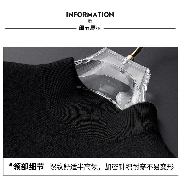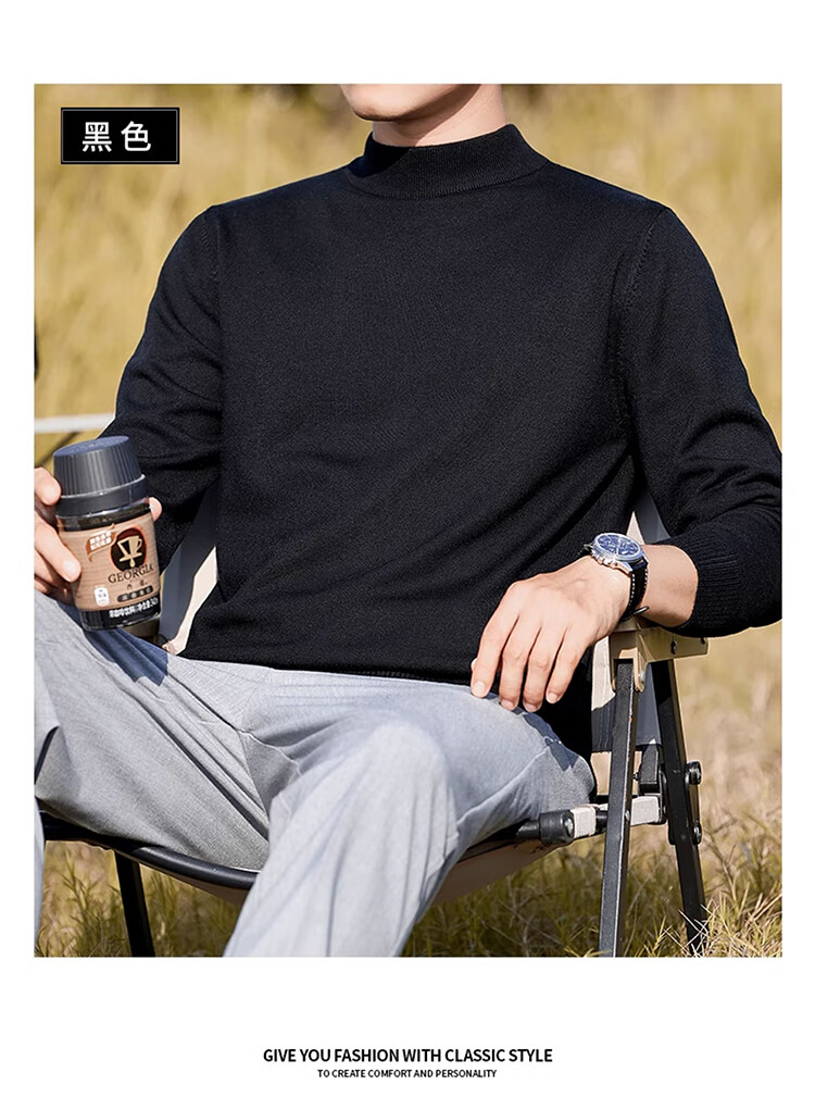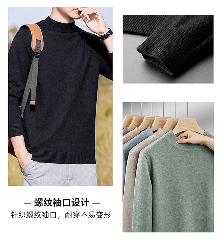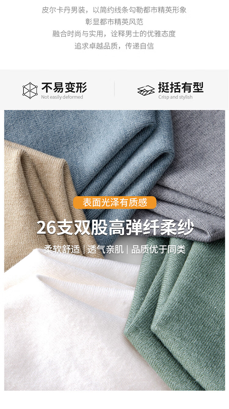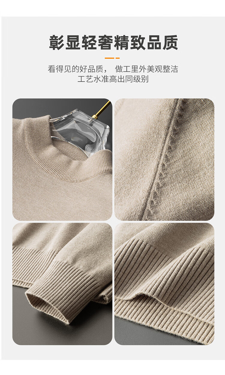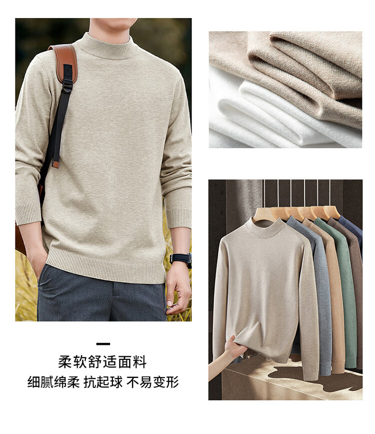 Pierre Cardin half turtleneck sweater for men autumn and winter warm inner sweater men's solid color casual top khaki 2XL