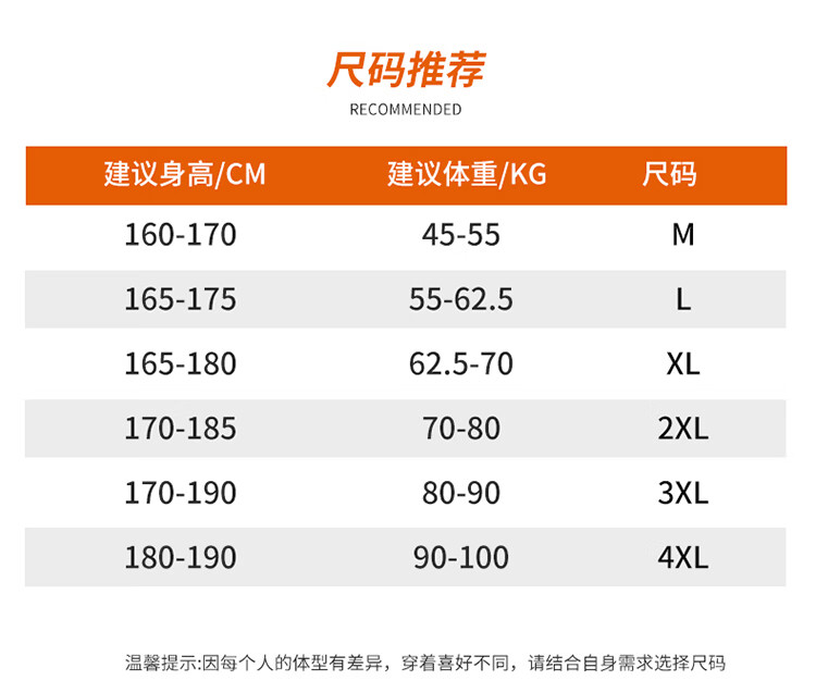 China (cm) 165 / 88-90 170 / 96-98 175 / 108-110 180 / 118-122 185 / 126-130
