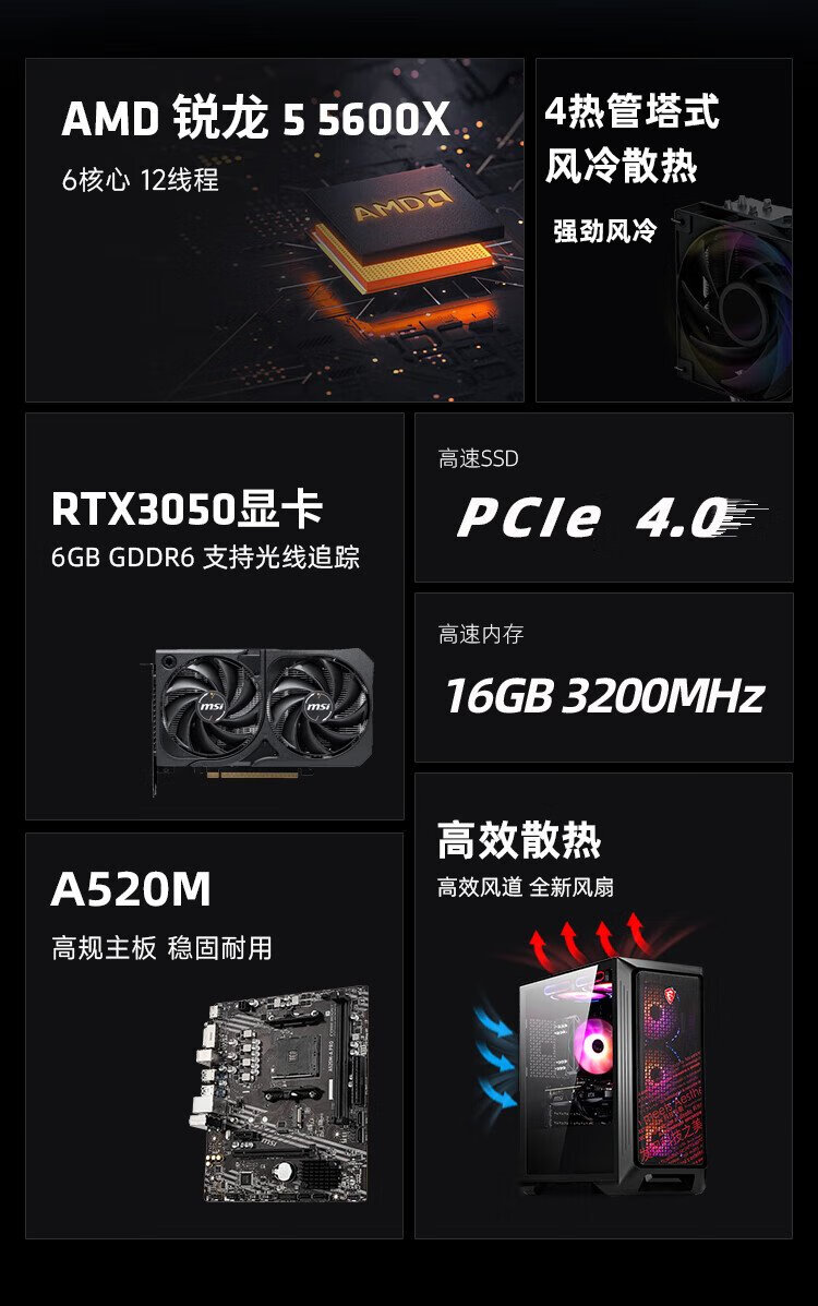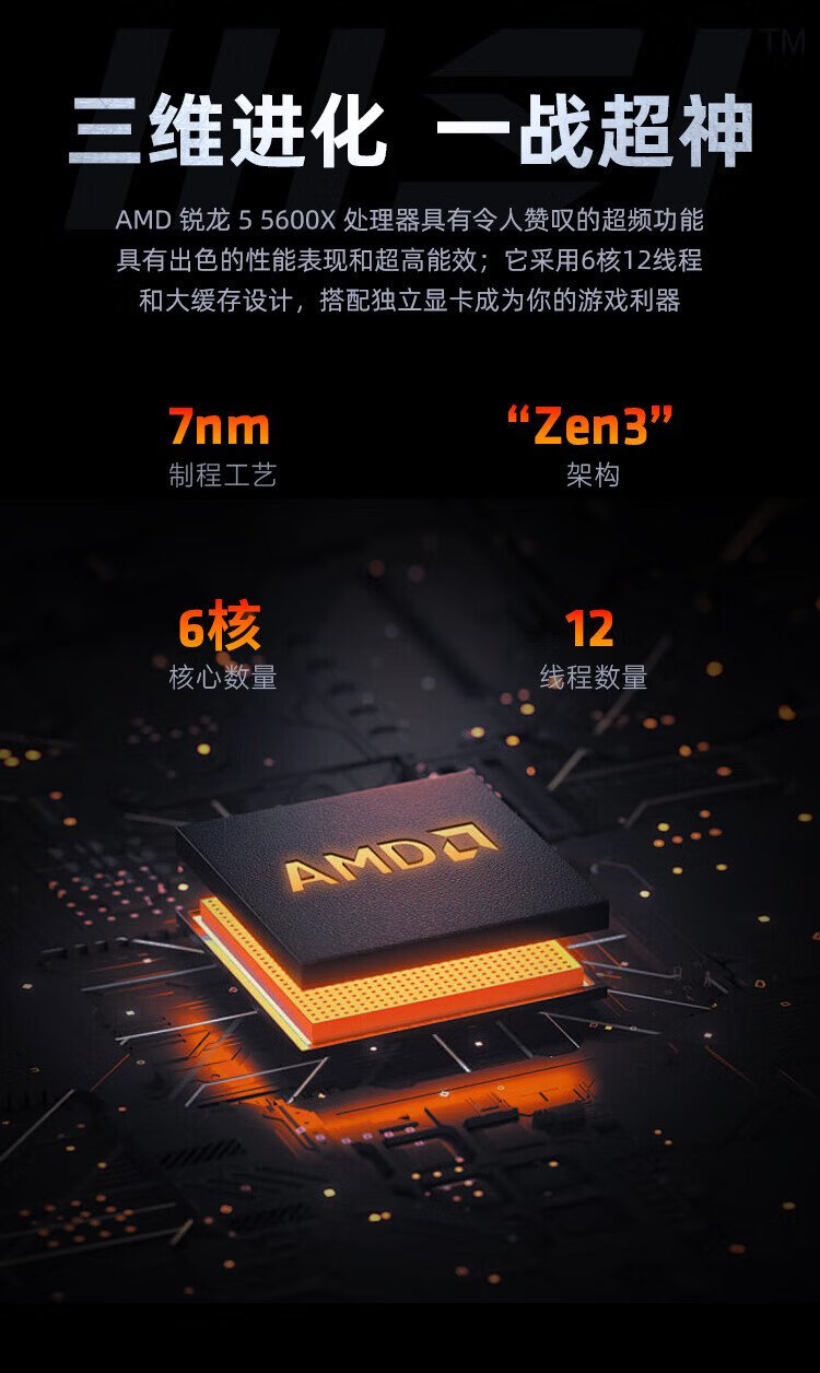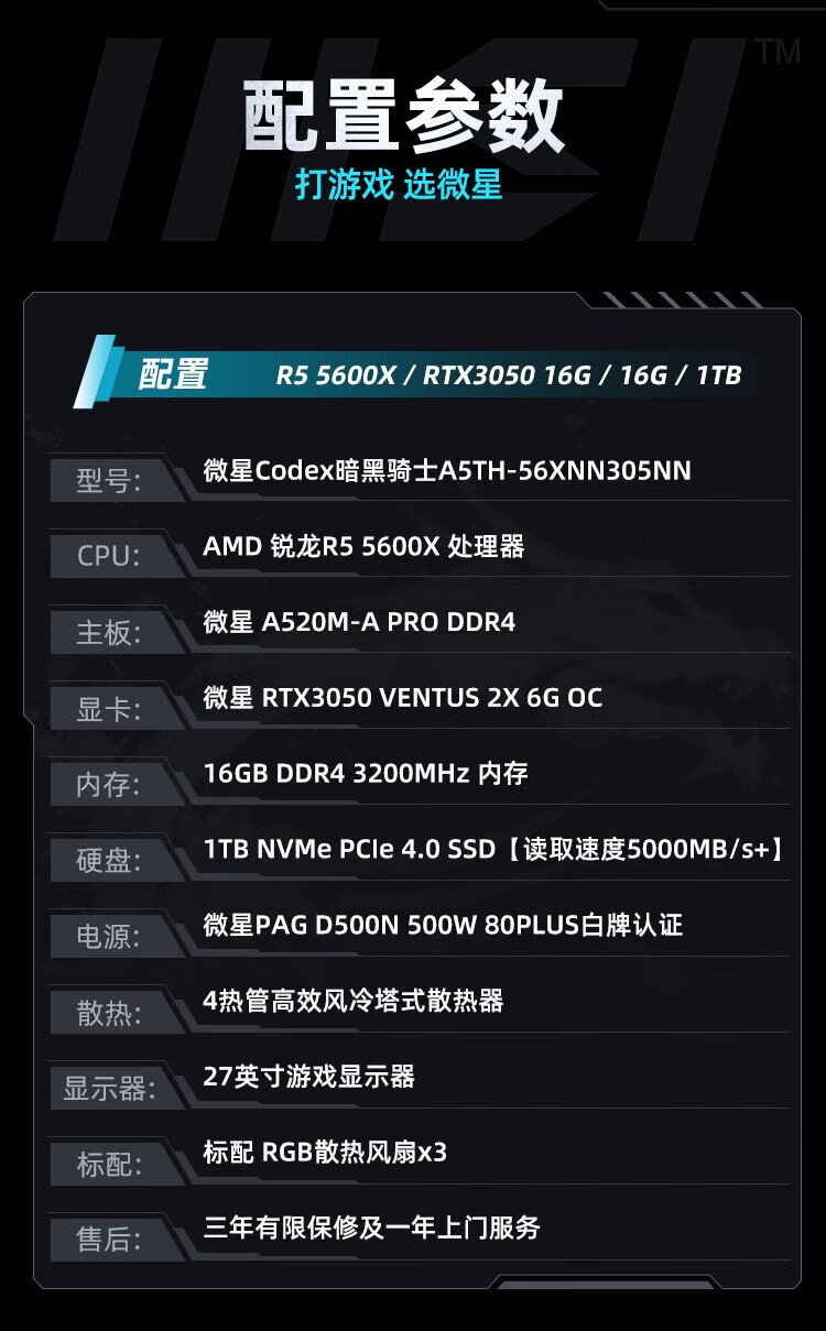 MSI Dark Knight AMD Ryzen R5 5600X/RTX3050/16G/1T E-sports game designer desktop computer host complete 27-inch monitor set