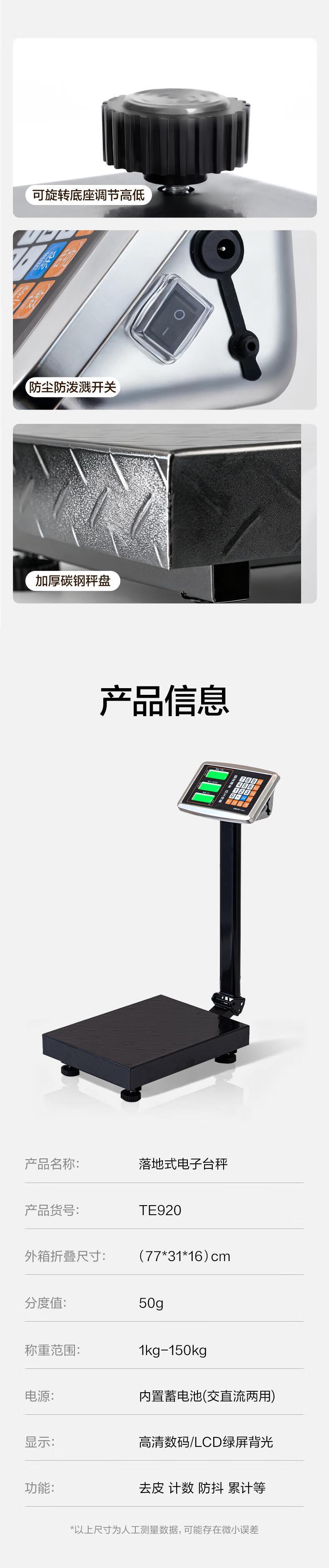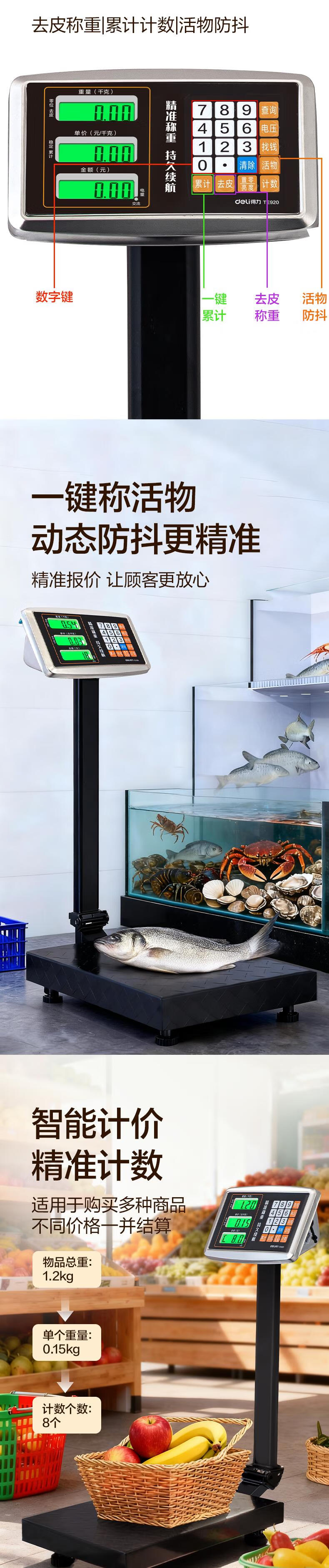 Deli rechargeable platform scale electronic scale commercial high-precision floor-standing vegetable selling electronic scale cargo scale pricing large industrial counting express scale TE920