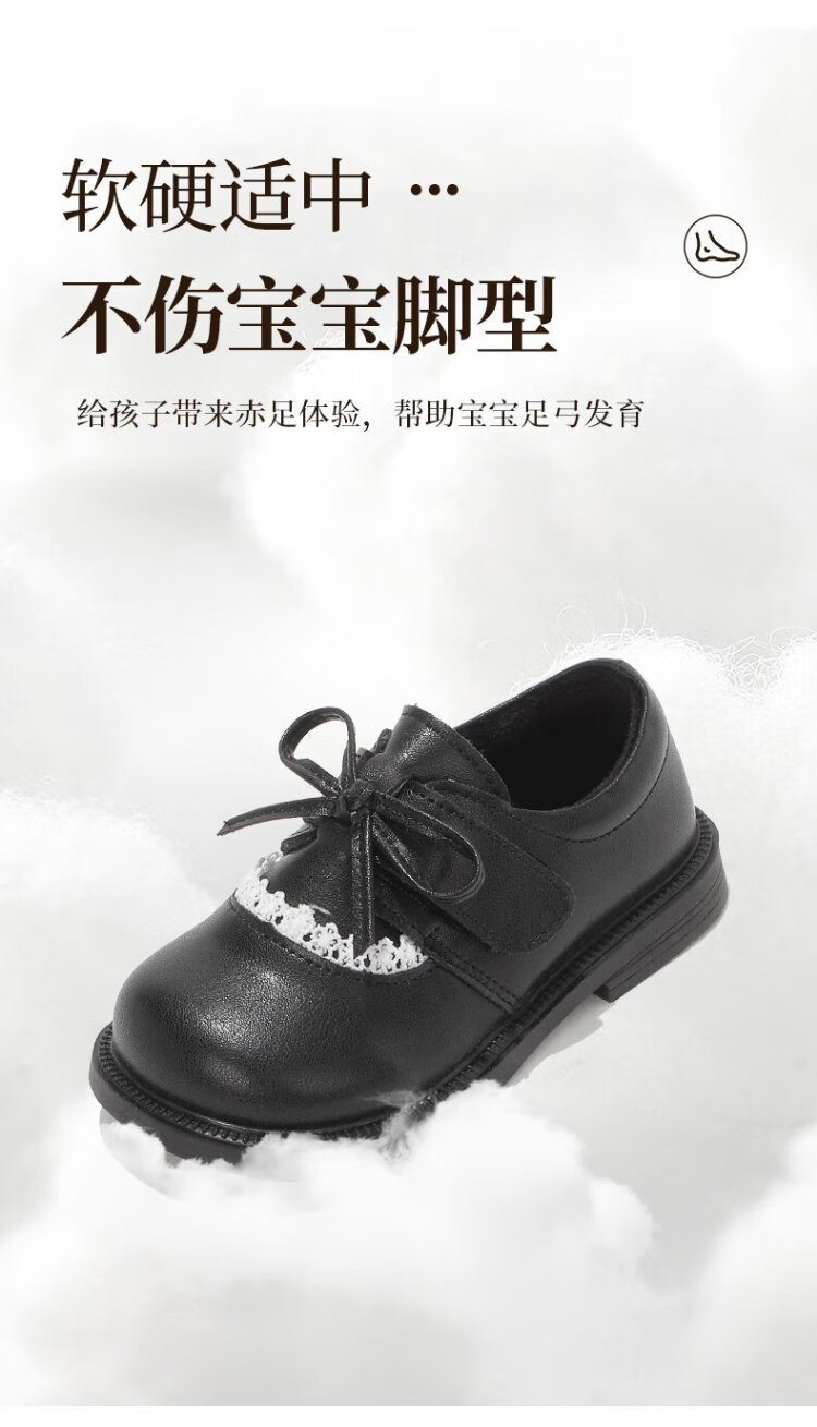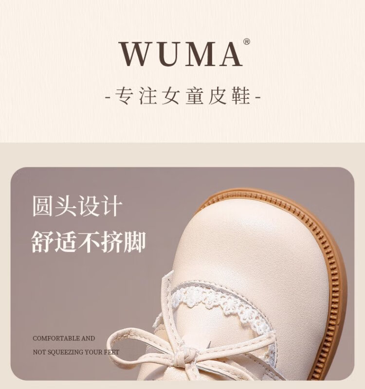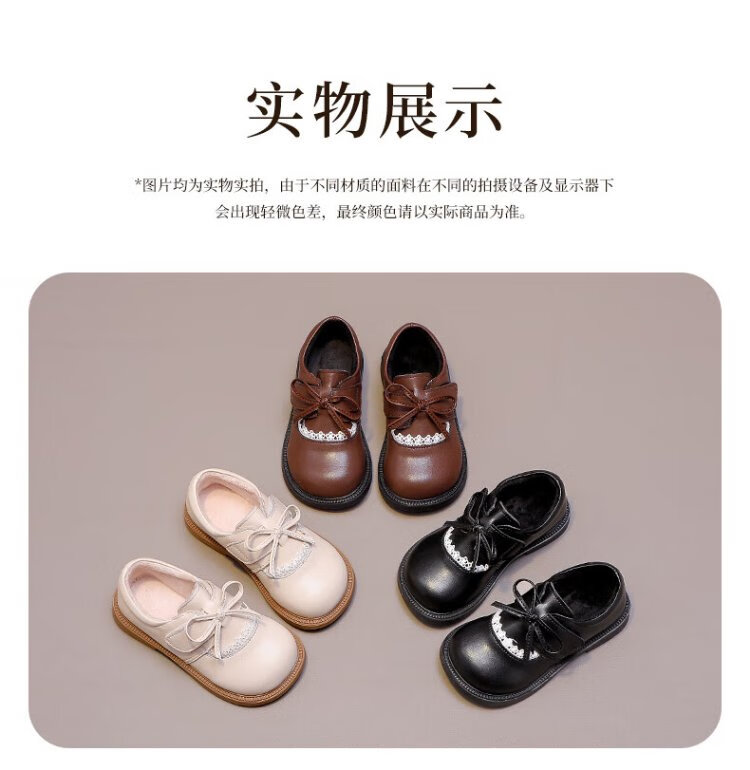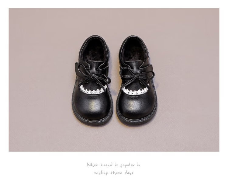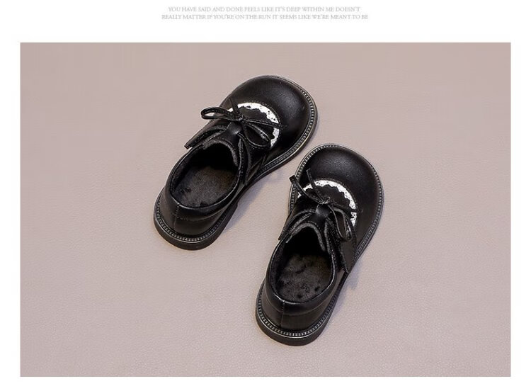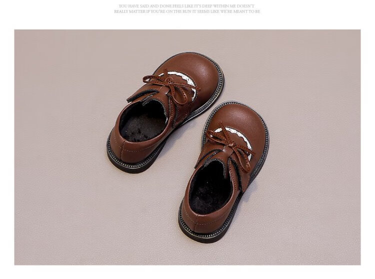 Wuma Girls' Shoes Children's Velvet Princess Shoes 2025 New Autumn and Winter Little Girls Soft Soled Genuine Leather and Second Cotton Small Leather Shoes