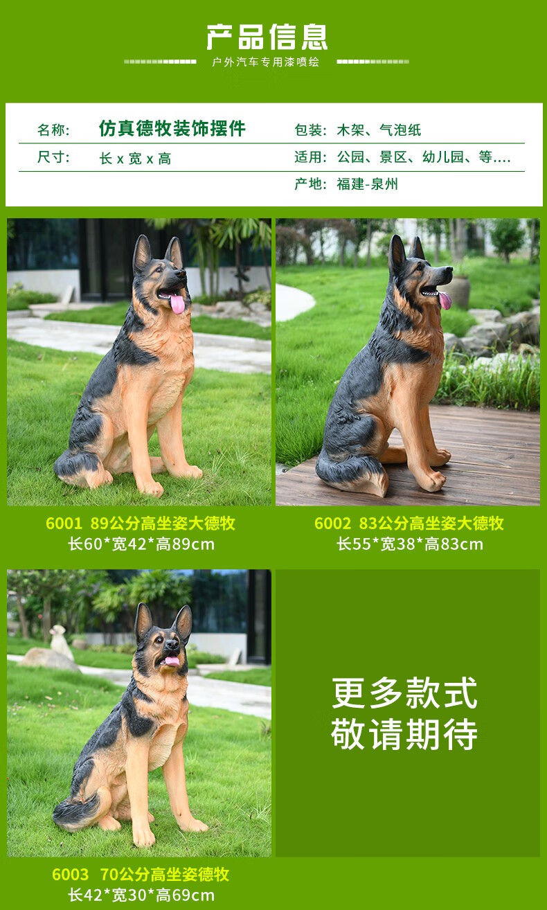 Yue Jixiang Simulation Dog Ornaments Garden Decorations Lucky New Year Lucky Dog Golden Retriever Sculpture Crafts 6001 Sitting Extra Large German Shepherd (Height 0.89 Meters)