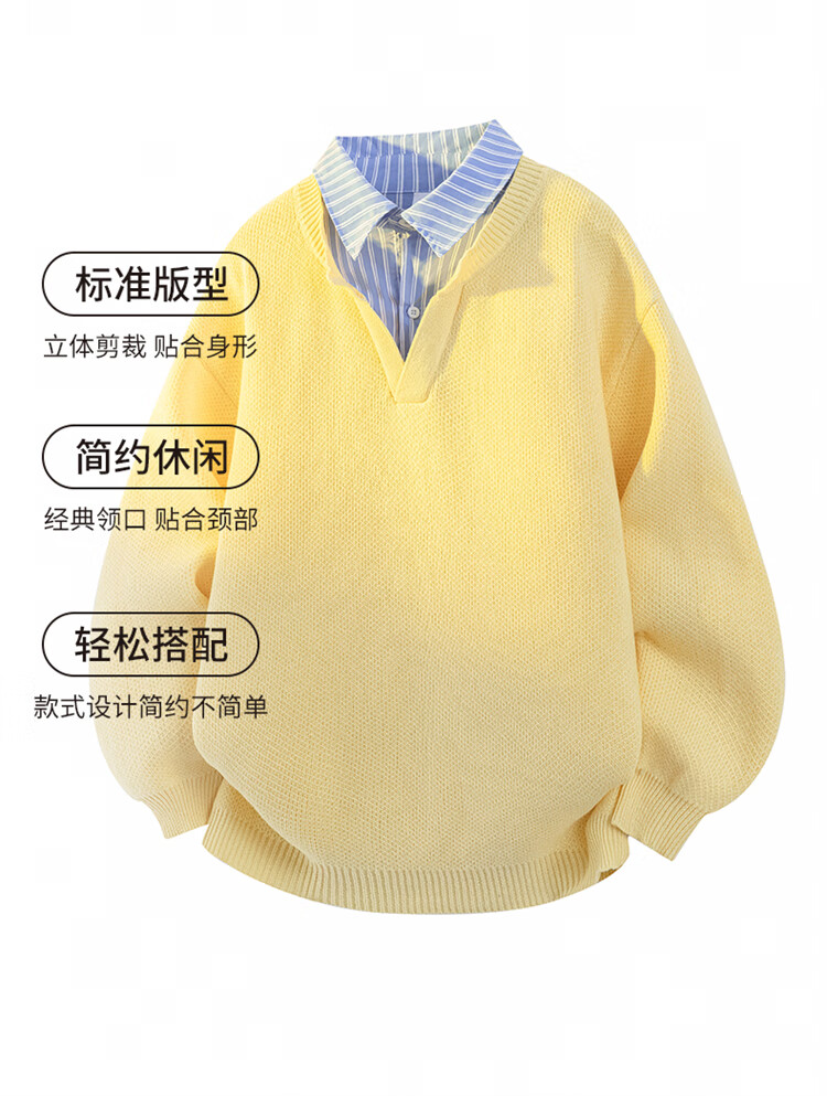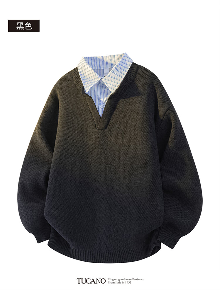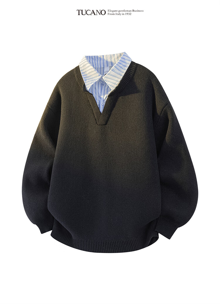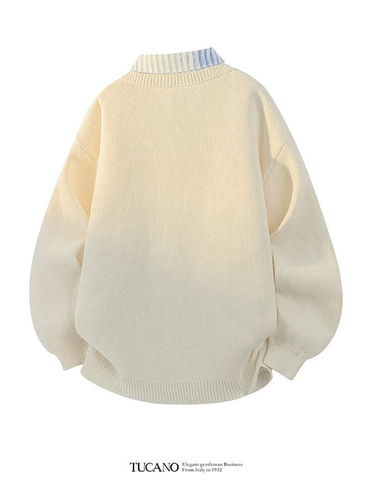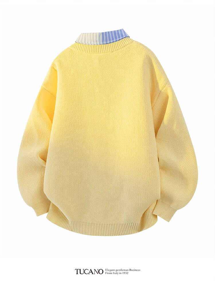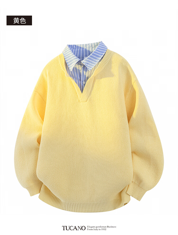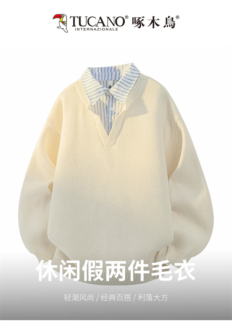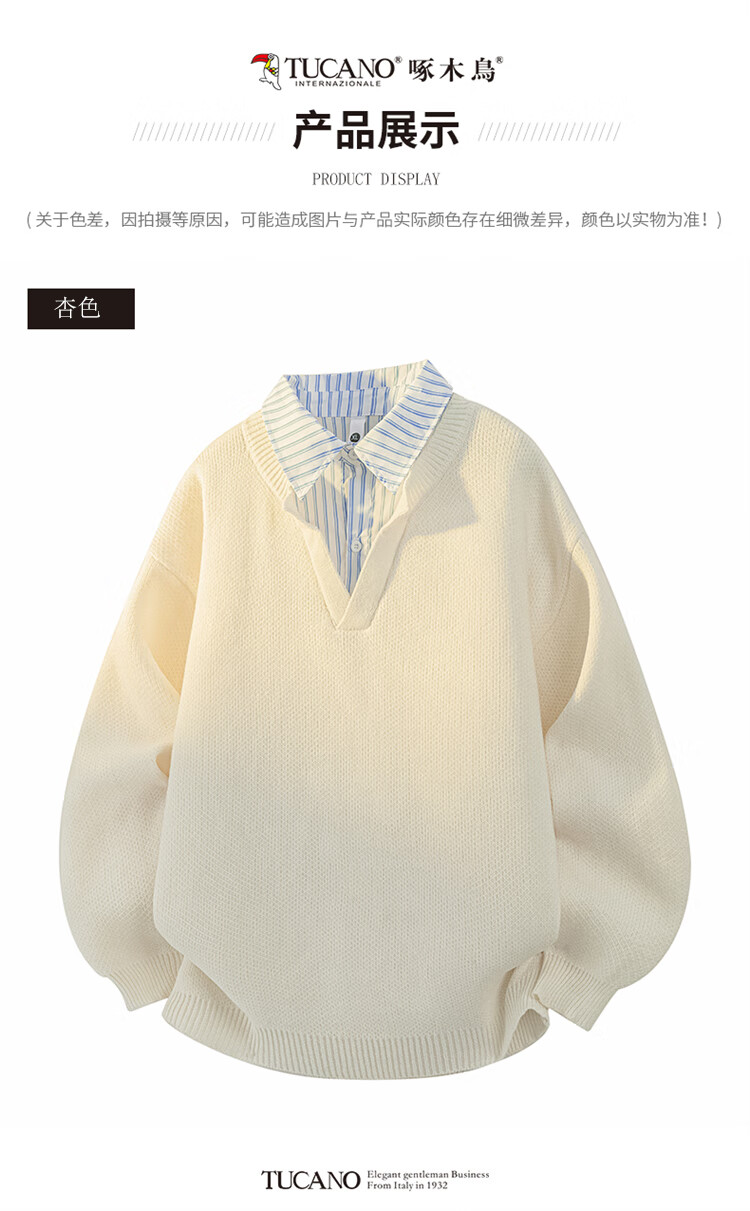 Woodpecker (TUCANO) sweater men's winter shirt collar sweater fake two-piece casual warm inner bottoming sweater line clothes apricot XL
