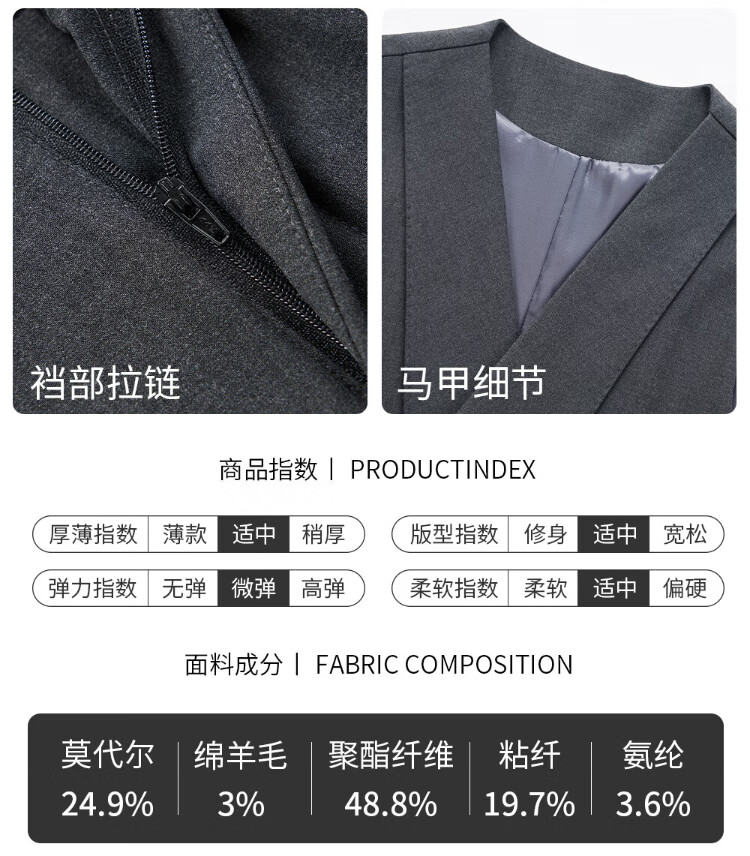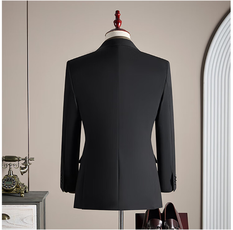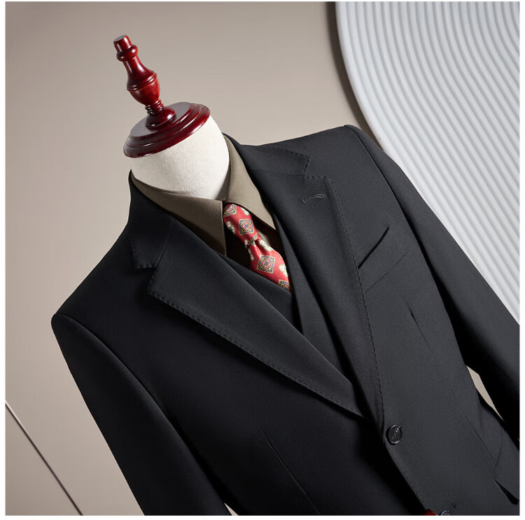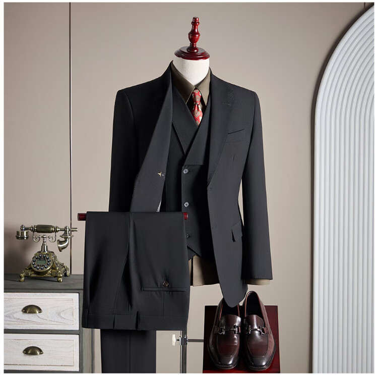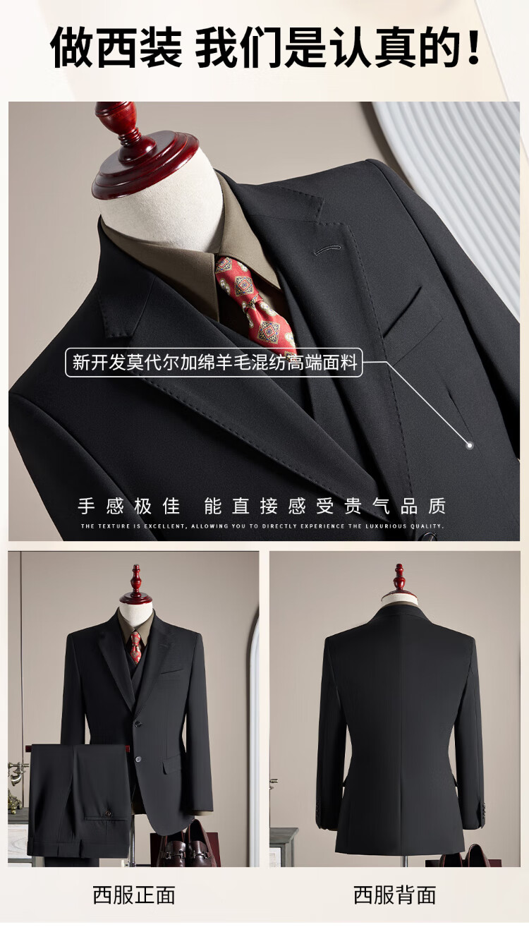 ROMON suit + vest + trousers Modal cotton wool haute blazer business dress jacket men black 2XL