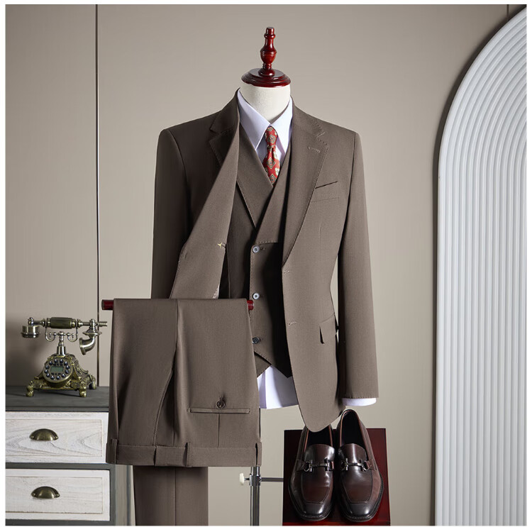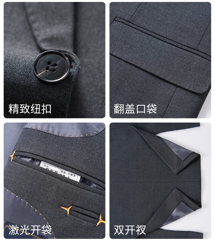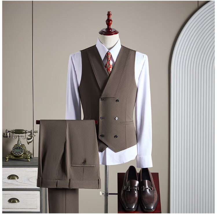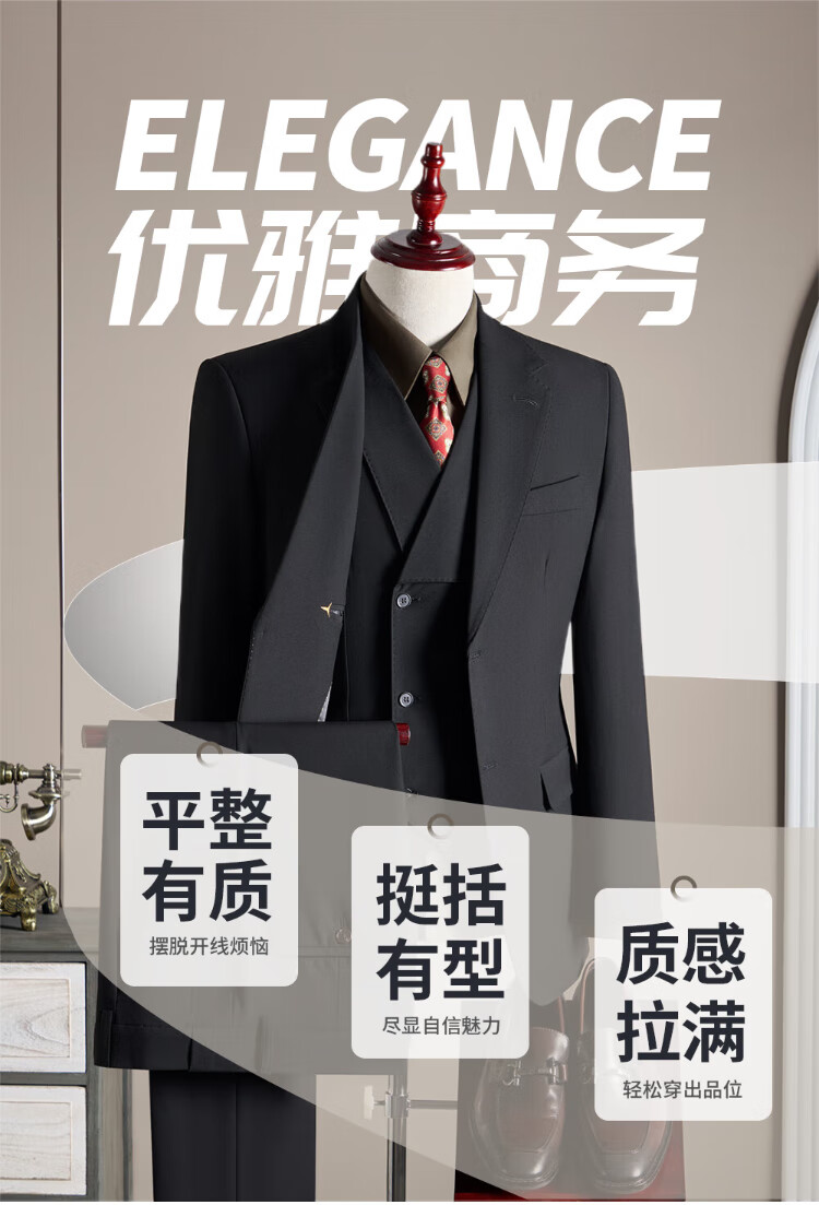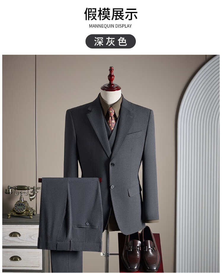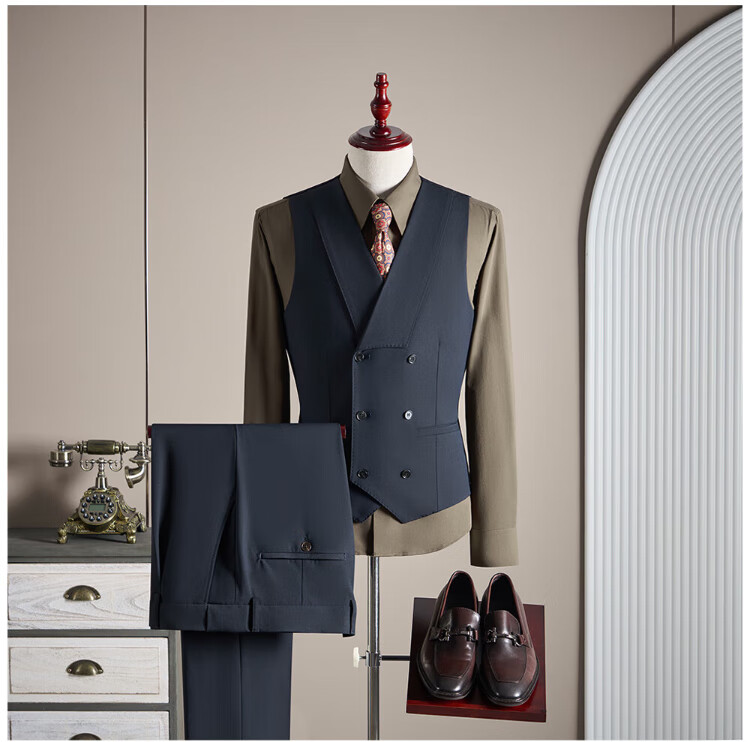 ROMON suit + vest + trousers Modal cotton wool haute blazer business dress jacket men black 2XL