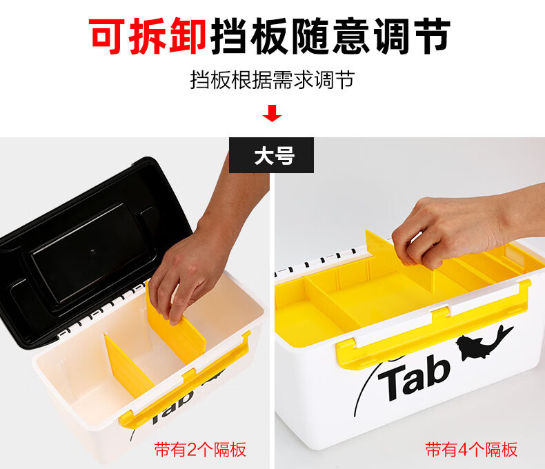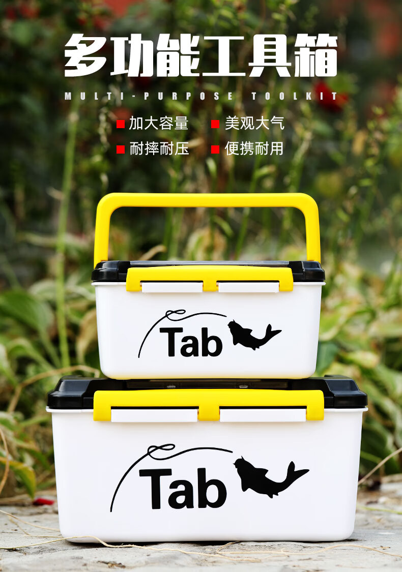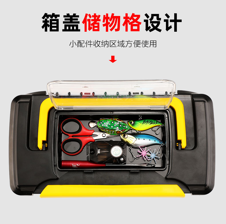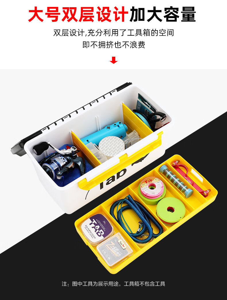 TAB fishing tool box fishing storage box fishing gear box accessories storage box multi-functional lure box double layer hard cover can sit fishing gear storage box large
