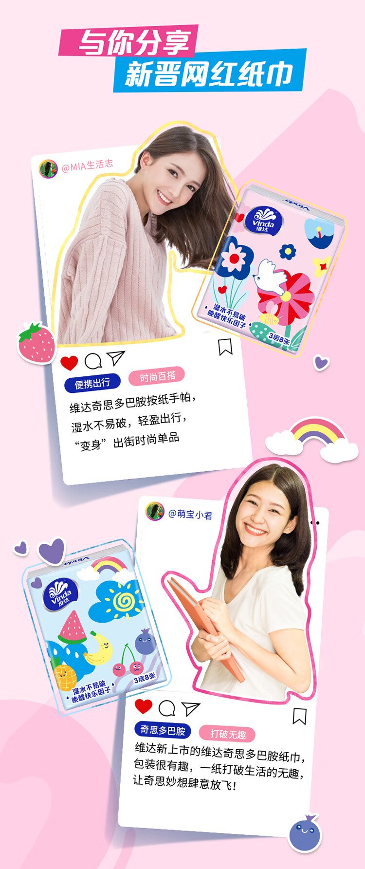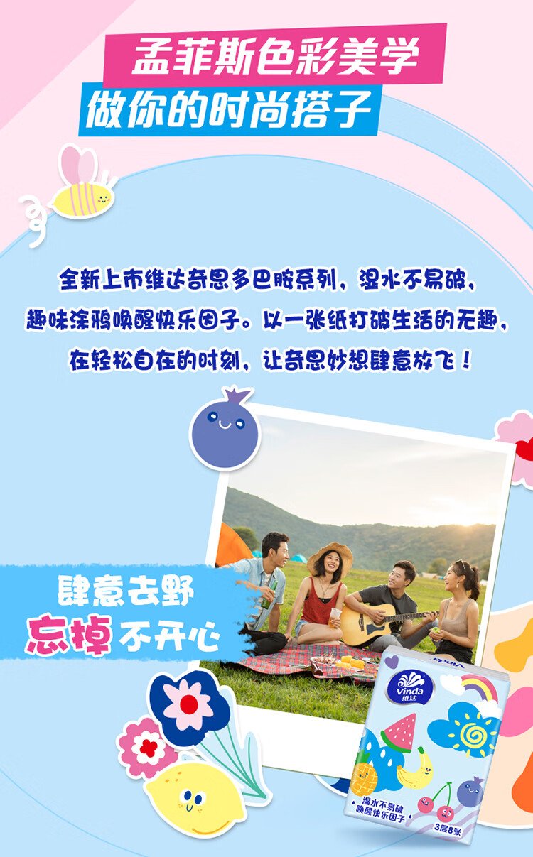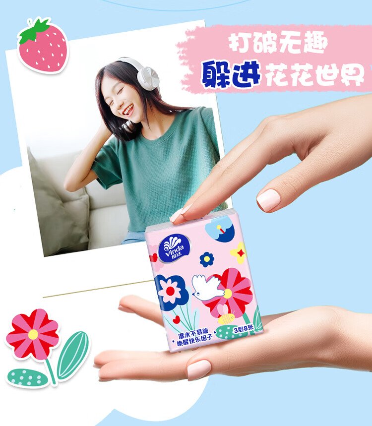 Vinda handkerchief paper dopamine 3 layers 8 sheets napkins facial tissue toilet paper 3 layers 8 sheets * 10 pack