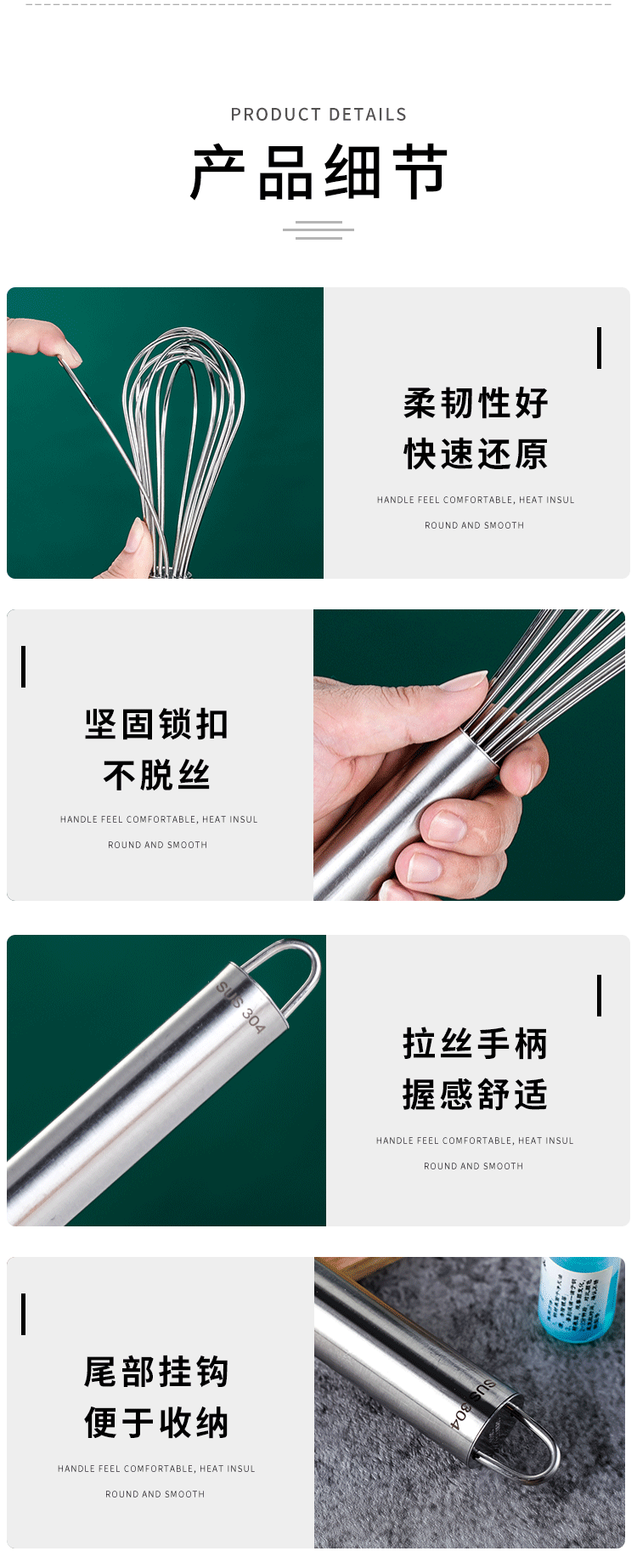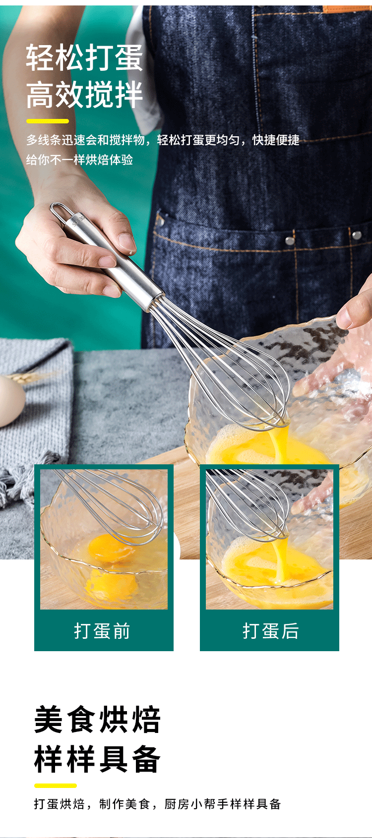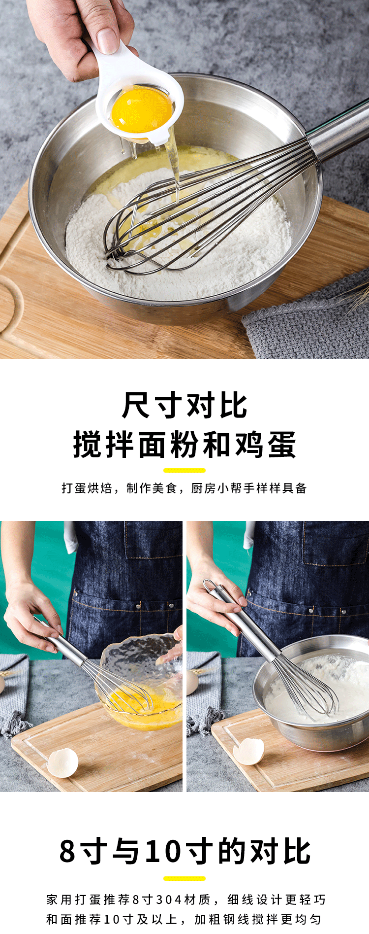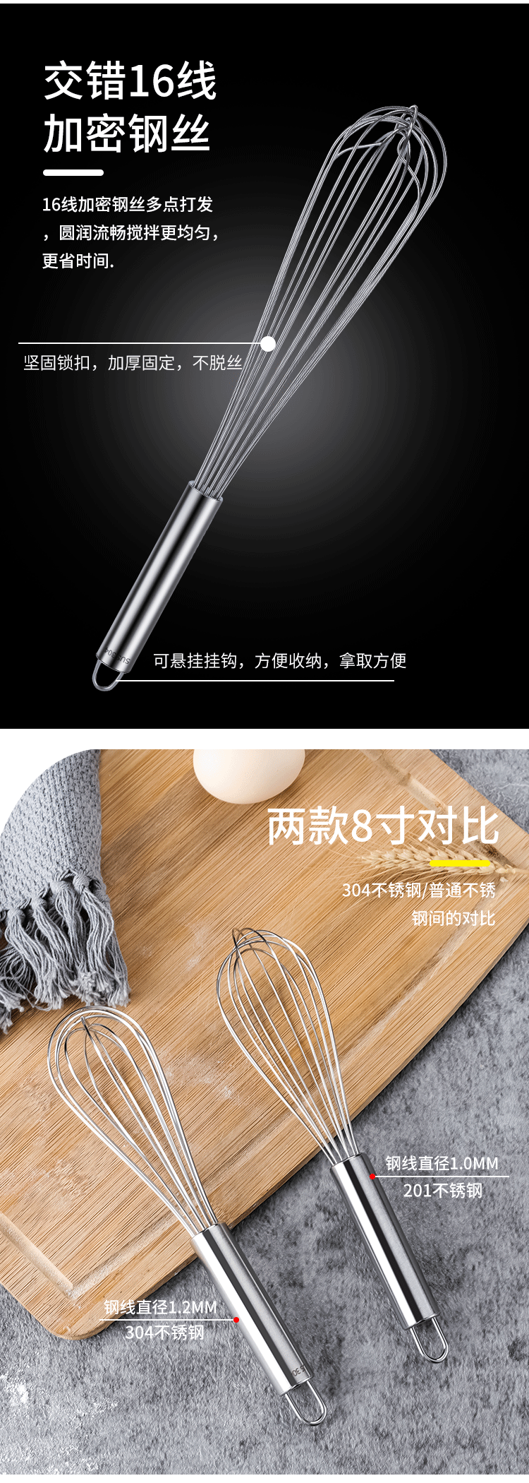 Jiaren Tiancheng 304 stainless steel egg beater manual thickened manual mixing stick dough/egg whisk extended baking tool 8-inch 201 stainless steel (total length 20cm) hair salon mixing dye paste