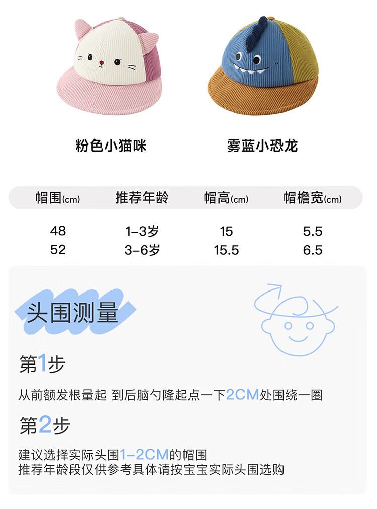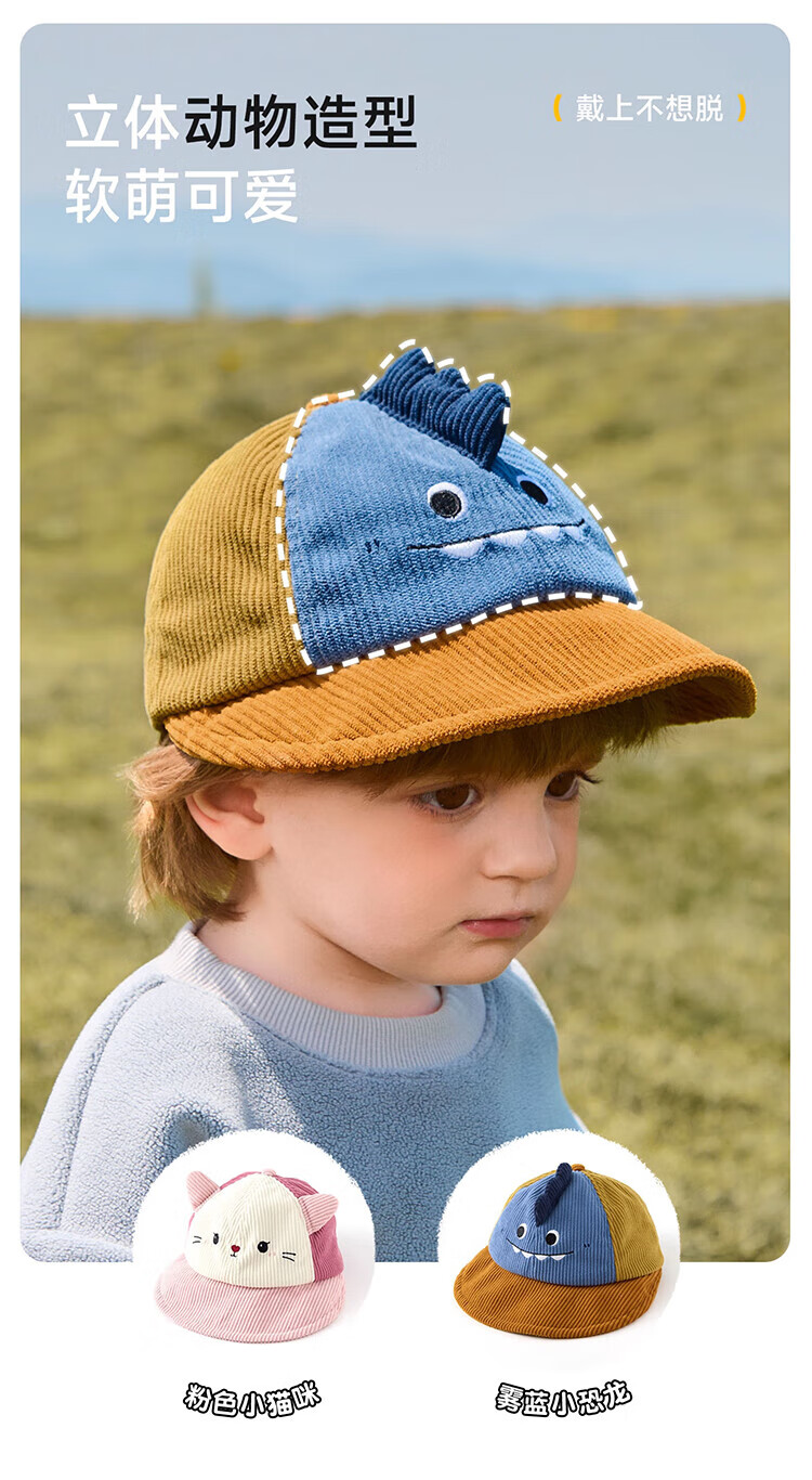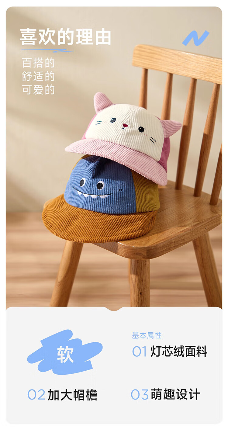 Nido Bear baby hat peaked cap winter boys and girls corduroy baseball cap baby hat autumn and winter