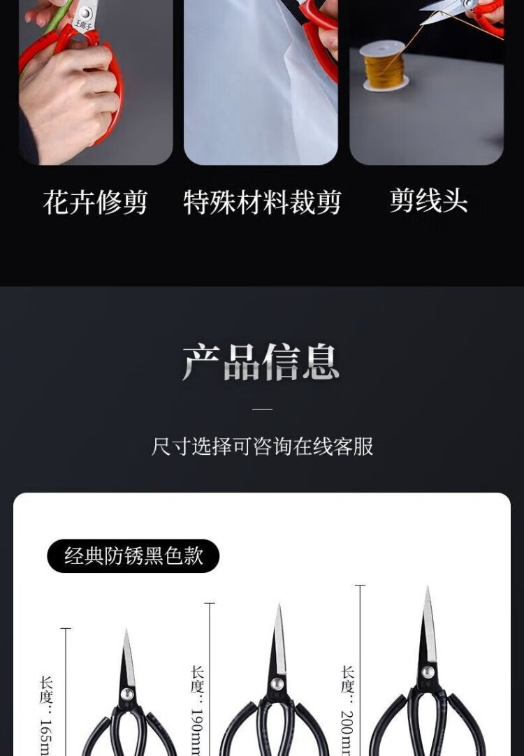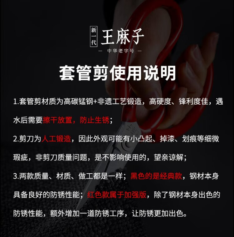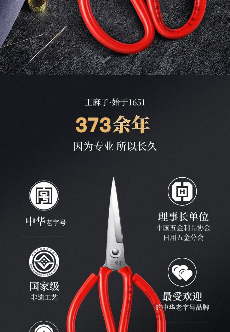 Wang Mazi scissors for home use, authentic old-fashioned scissors for sewing, household tailoring scissors, scissors collection, classic rust-proof black, large size