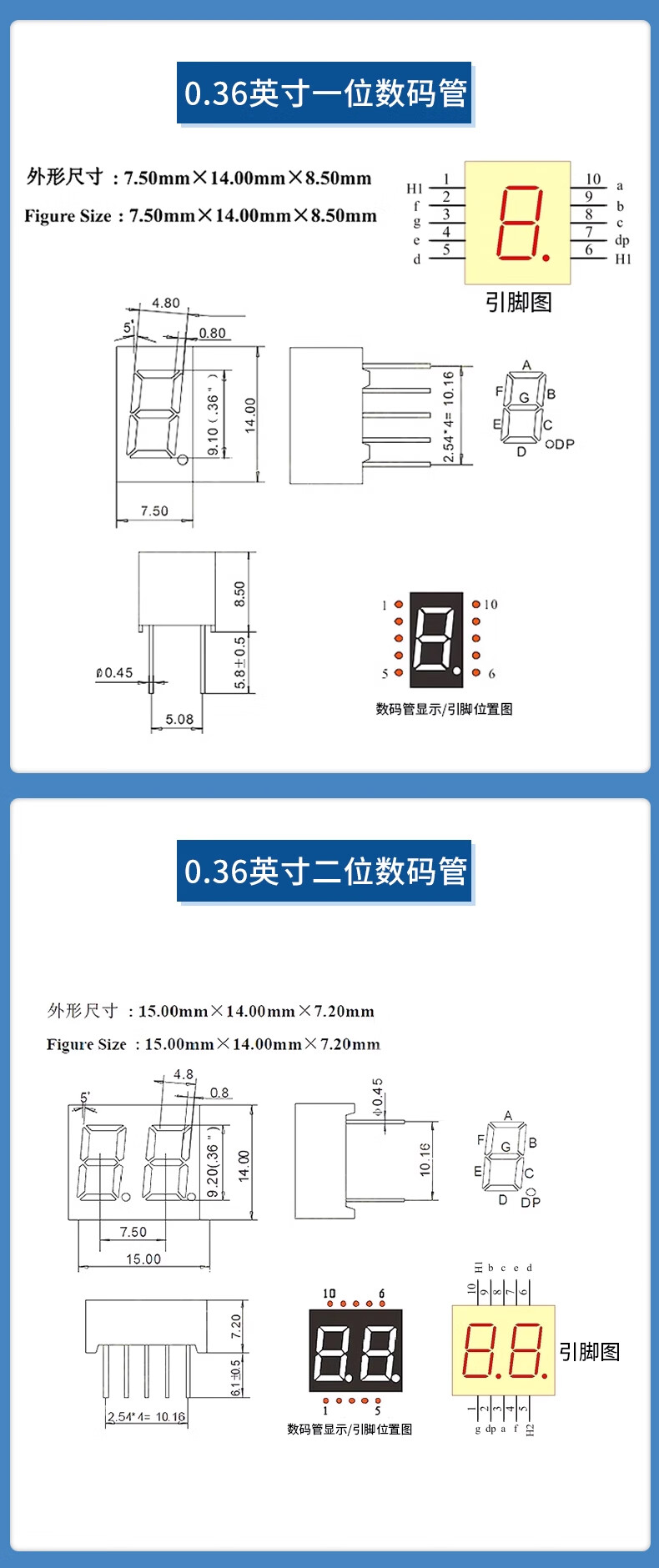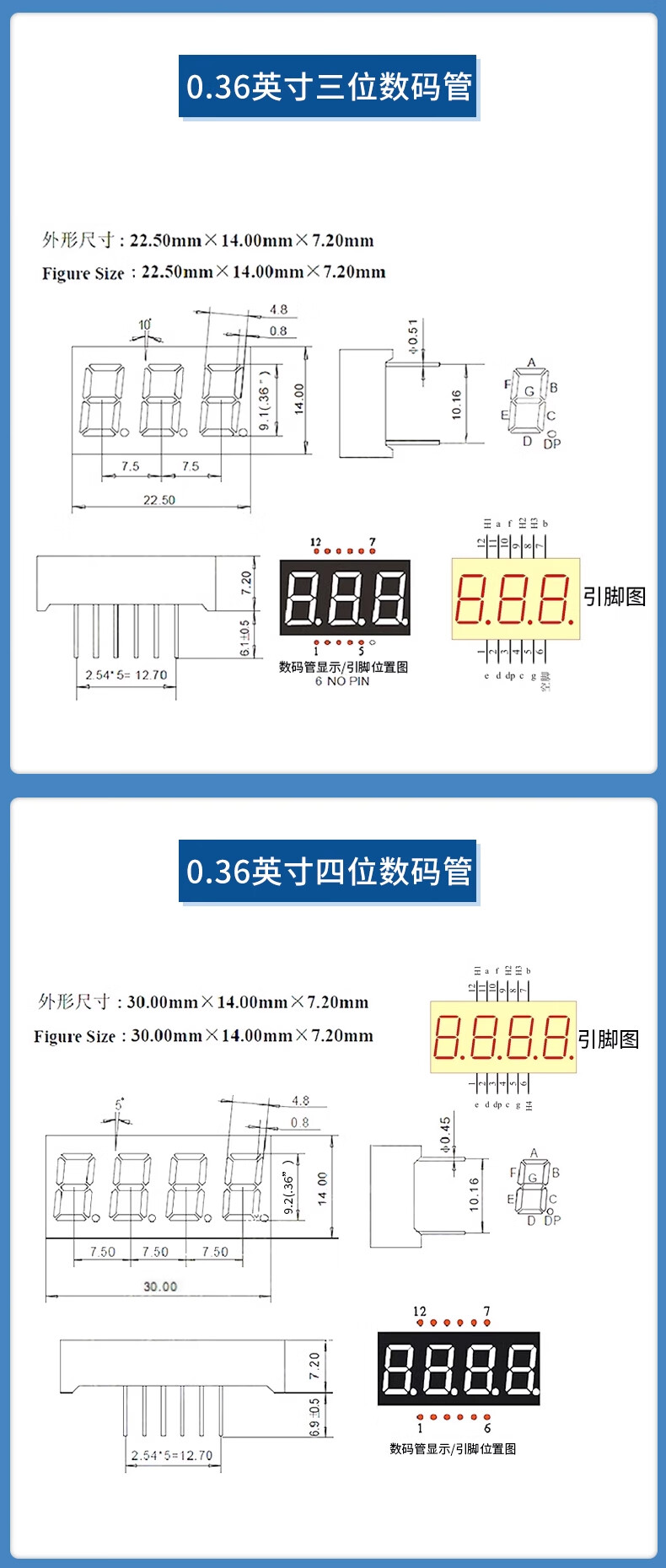 ZAVE digital tube 0.36 inches, common yang, 4 digits (1 piece)