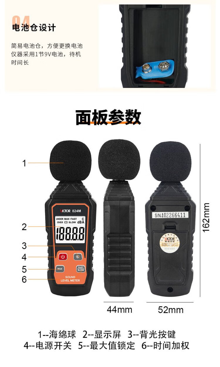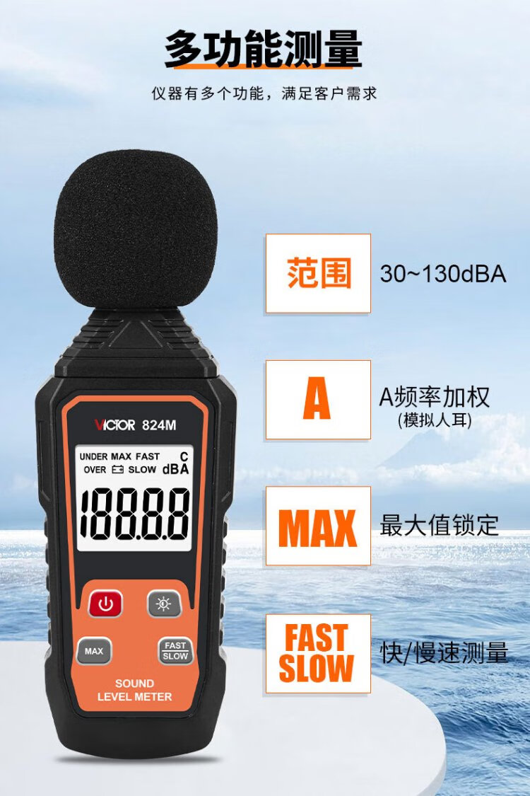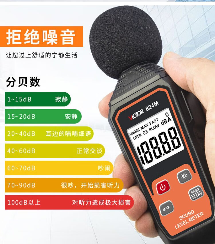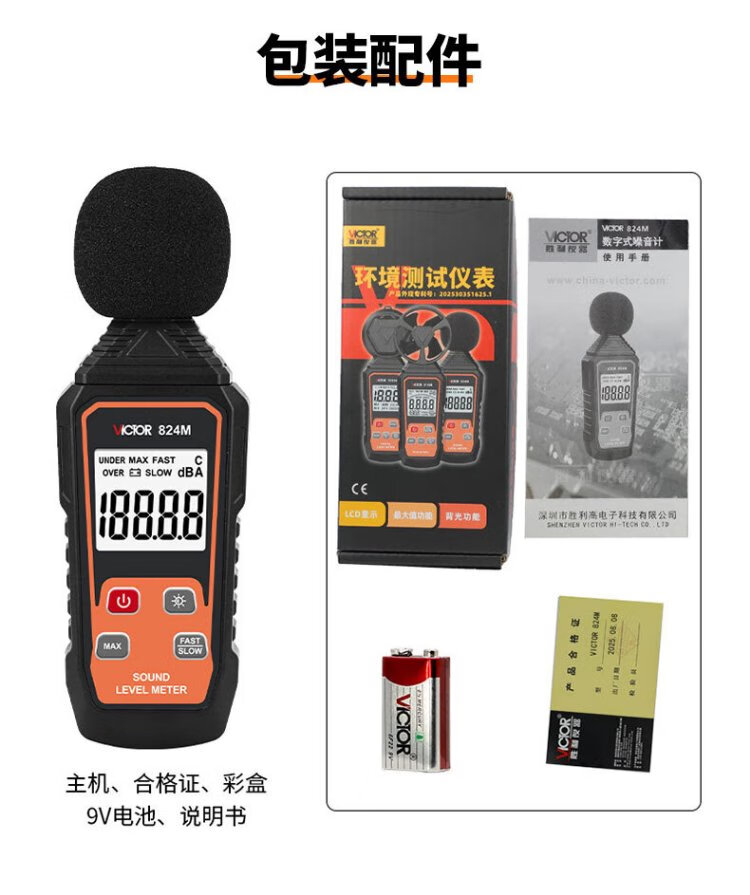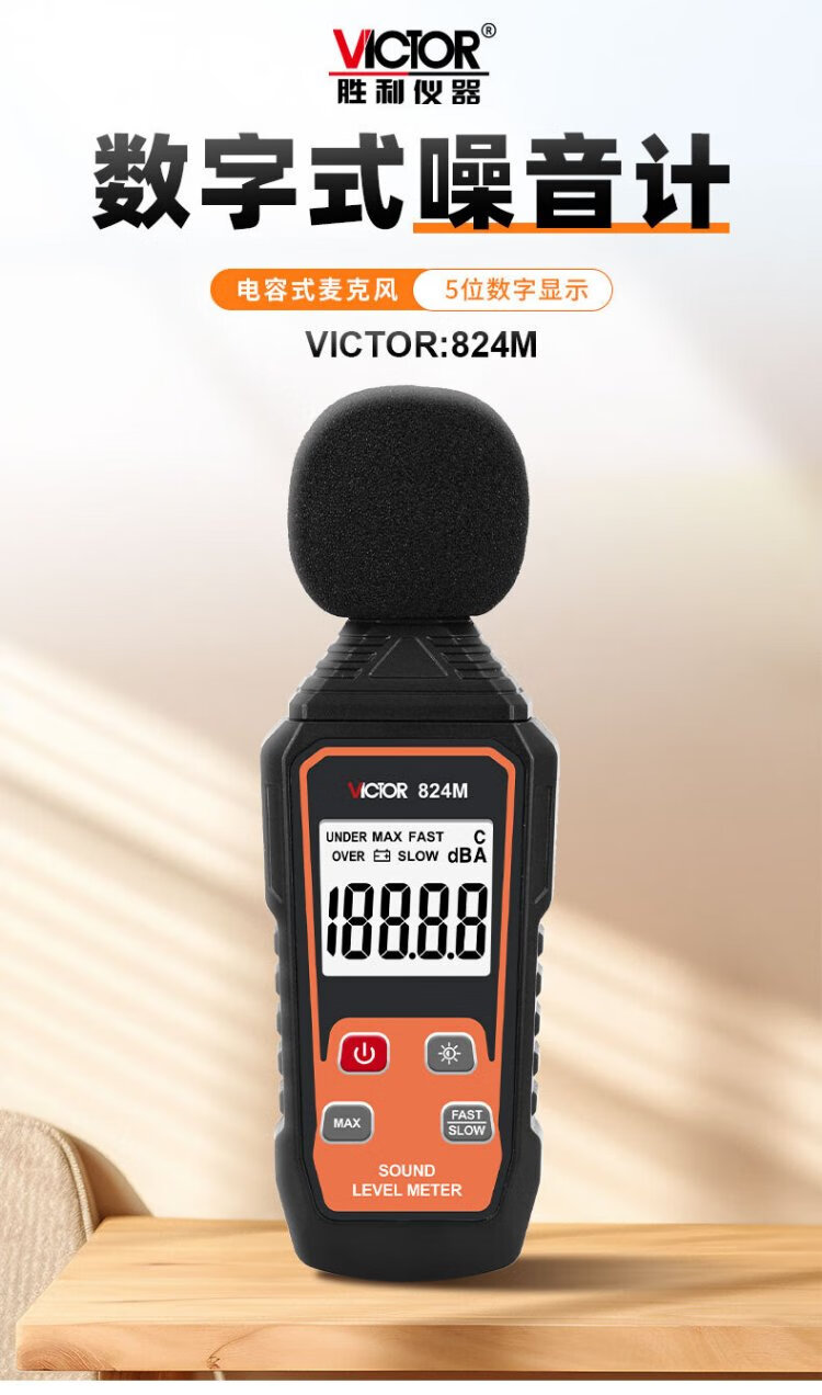Victory Instrument (VICTOR) decibel tester noise meter decibel meter noise tester sound level meter sound detector VC824M