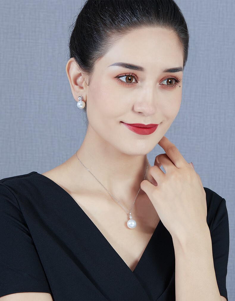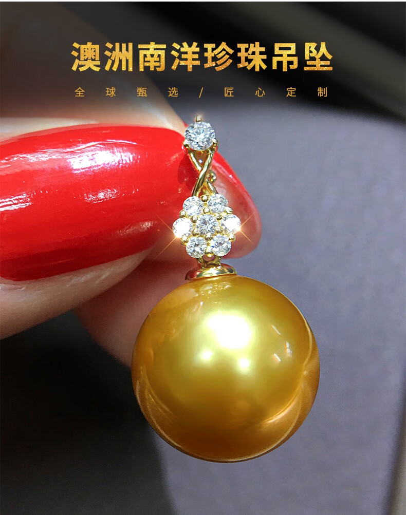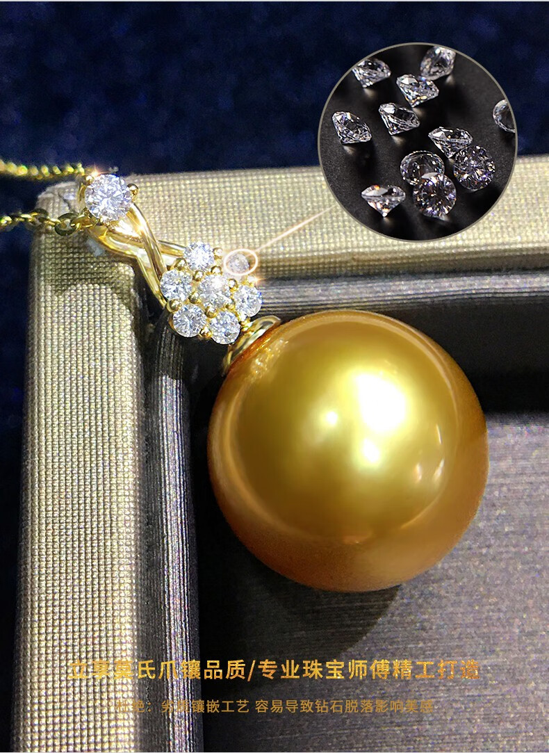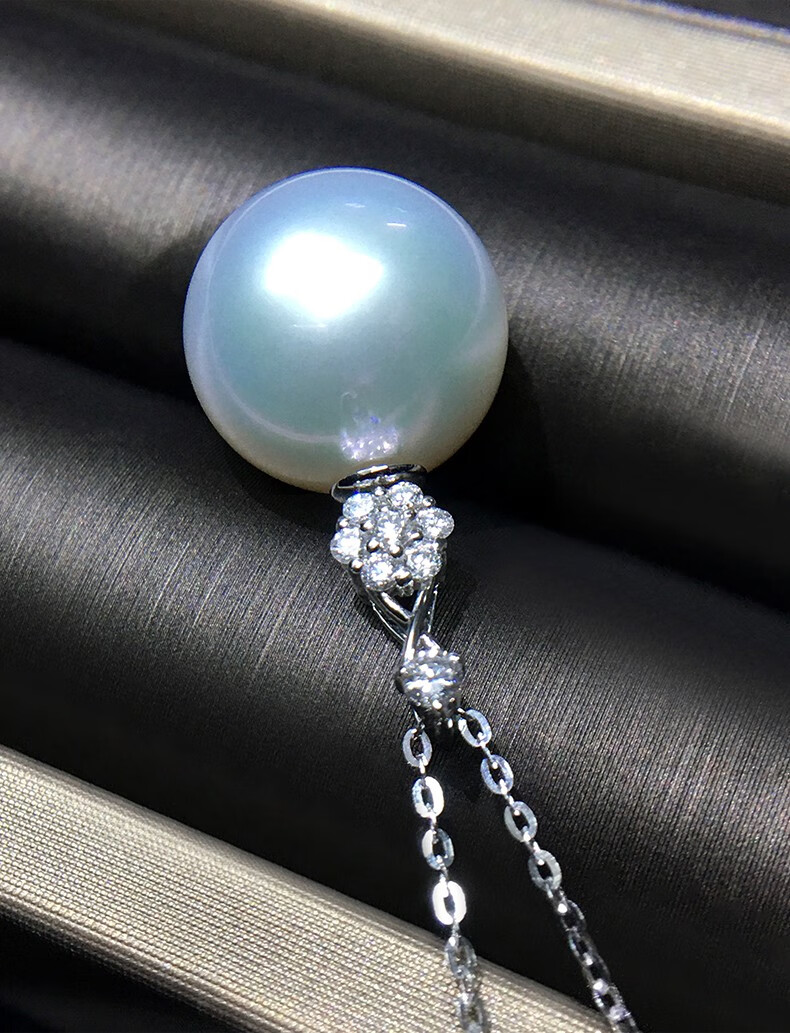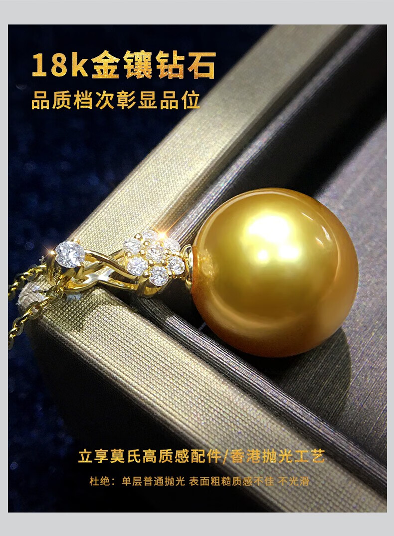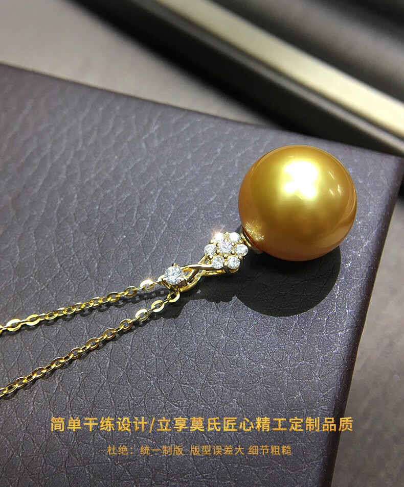 Mohs Seawater Pearl Pendant 18K Gold Diamond Necklace Simple Plum Blossom Style Perfect Round Extremely Bright High-Quality Pearl Pendant South Sea Gold Beads 11-12mm