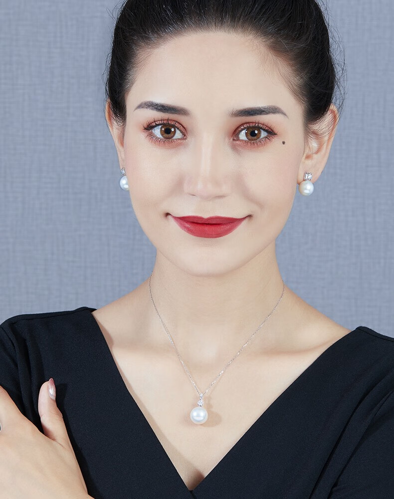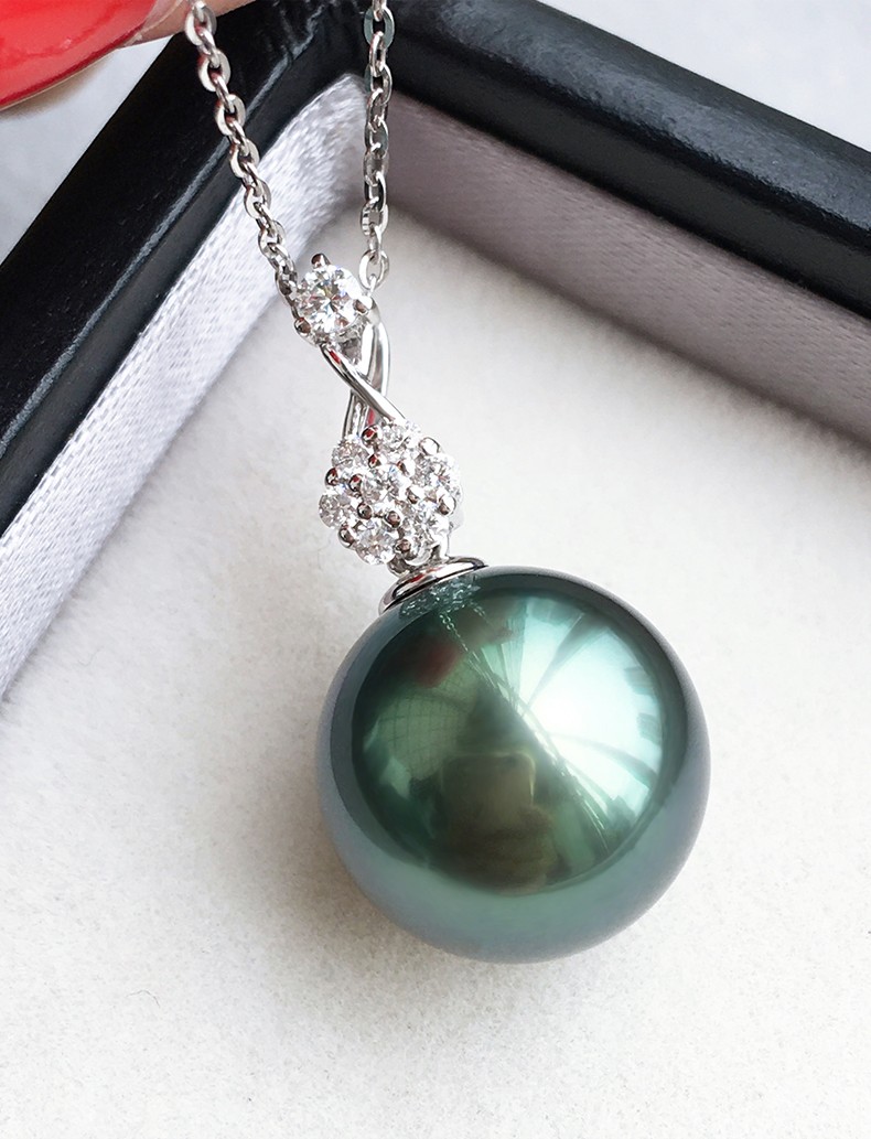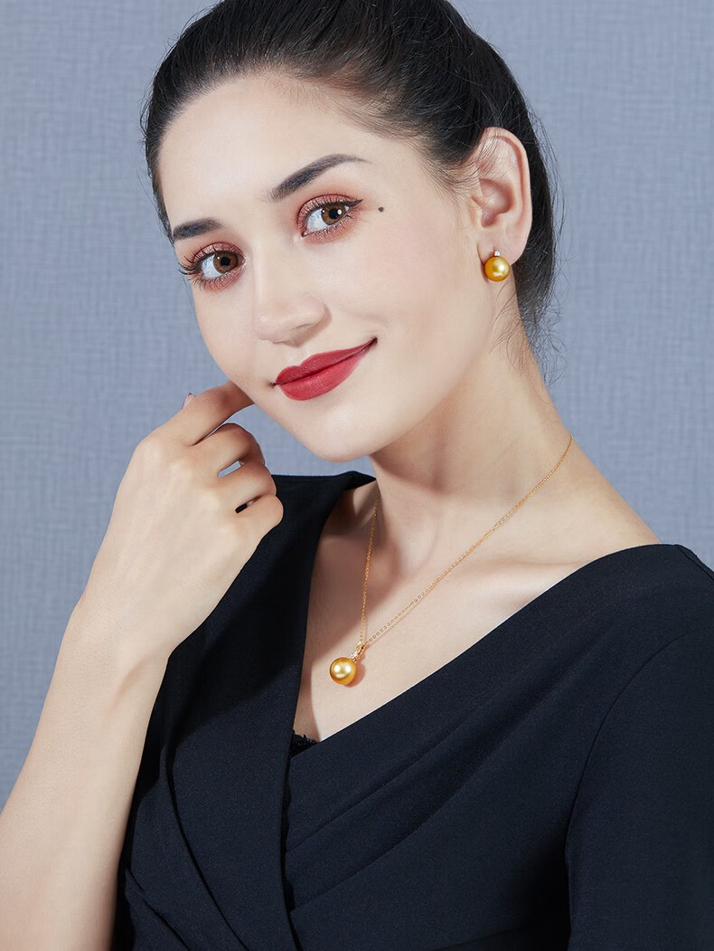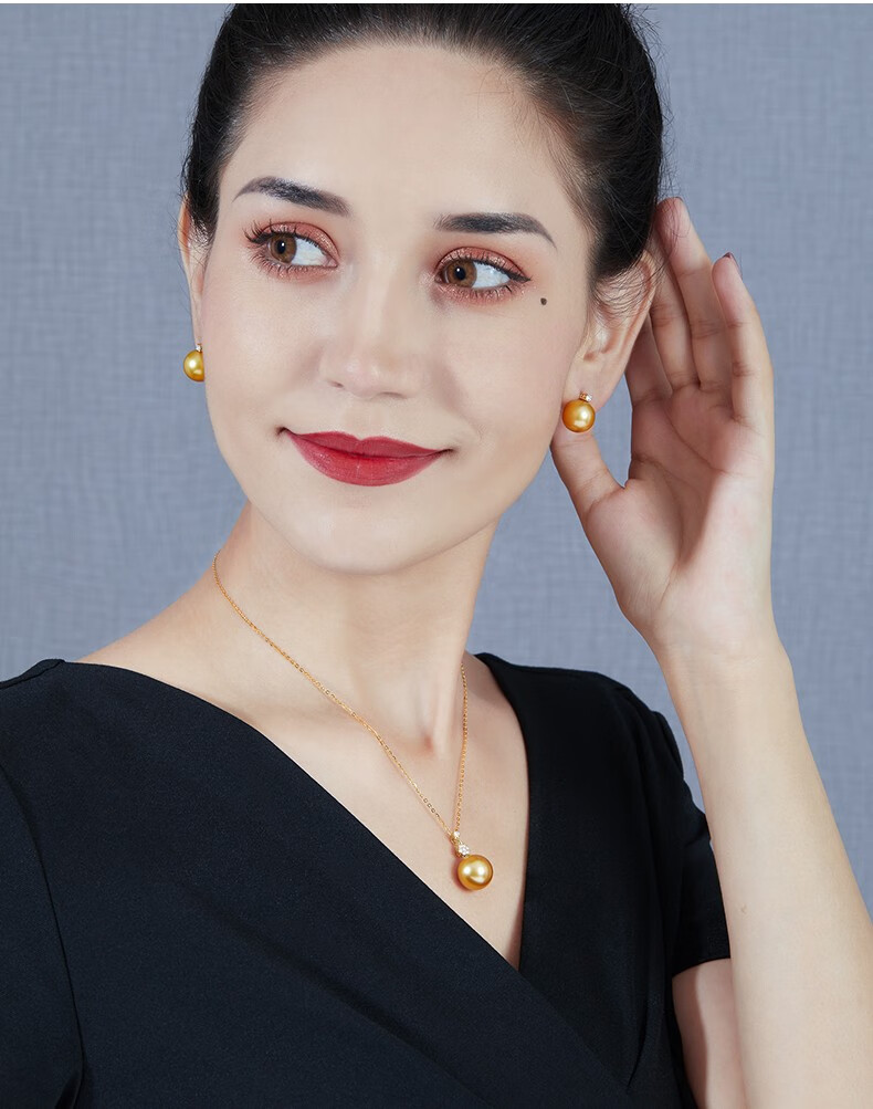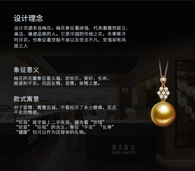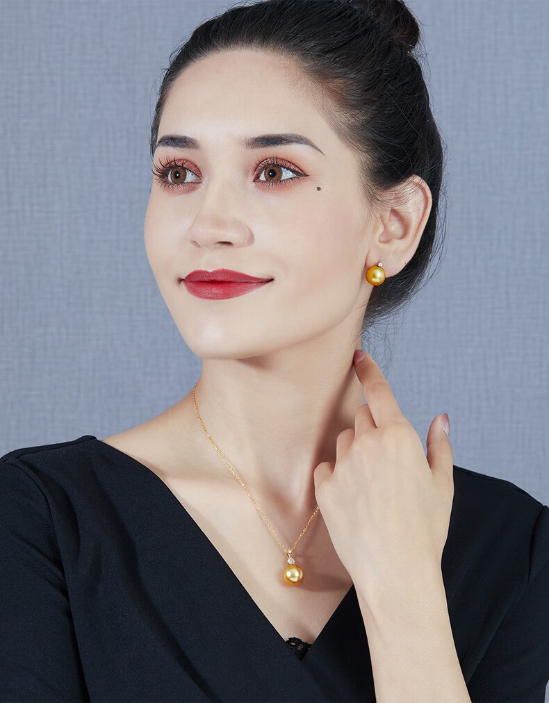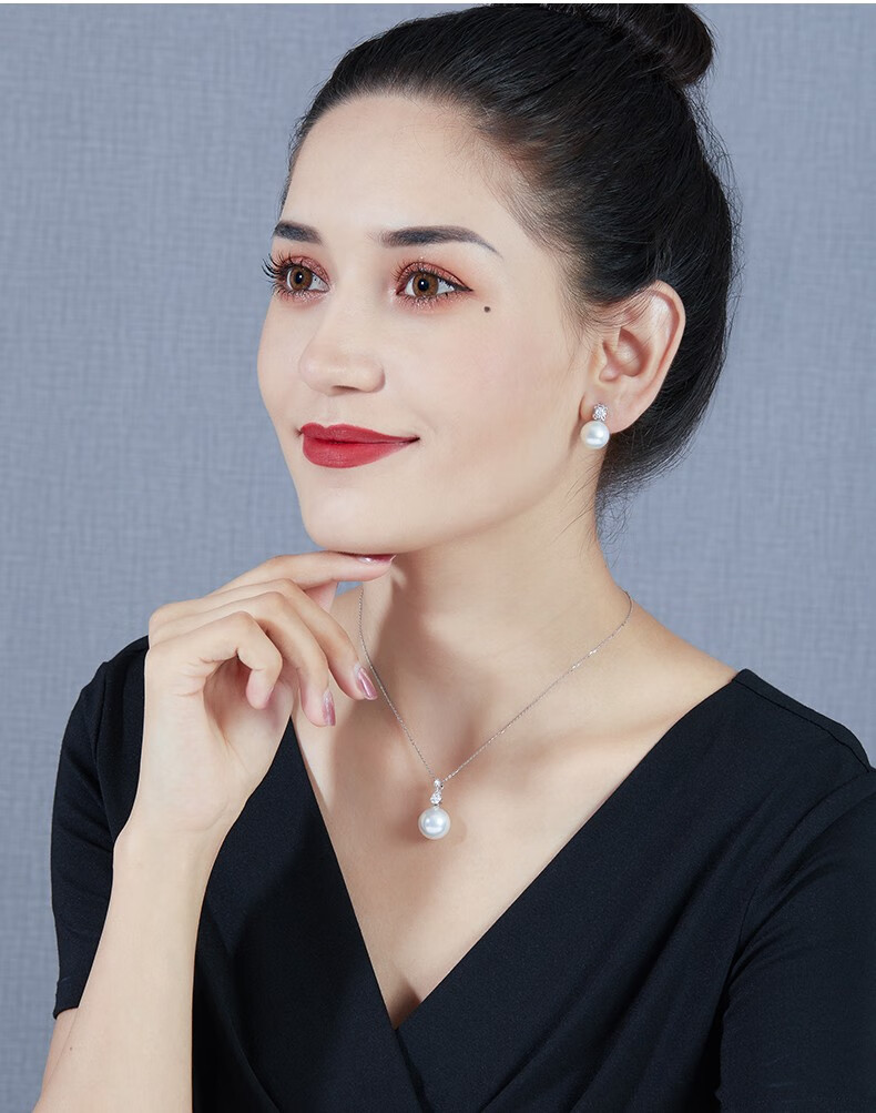 Mohs Seawater Pearl Pendant 18K Gold Diamond Necklace Simple Plum Blossom Style Perfect Round Extremely Bright High-Quality Pearl Pendant South Sea Gold Beads 11-12mm