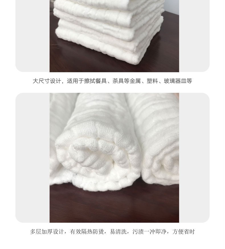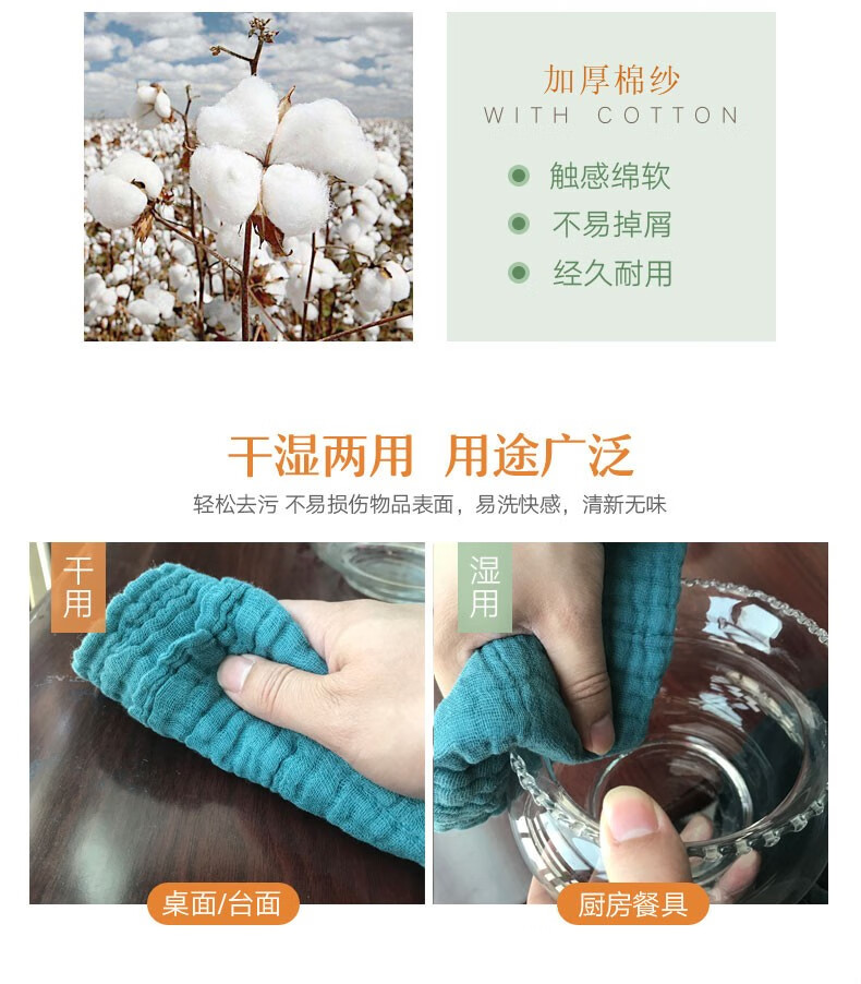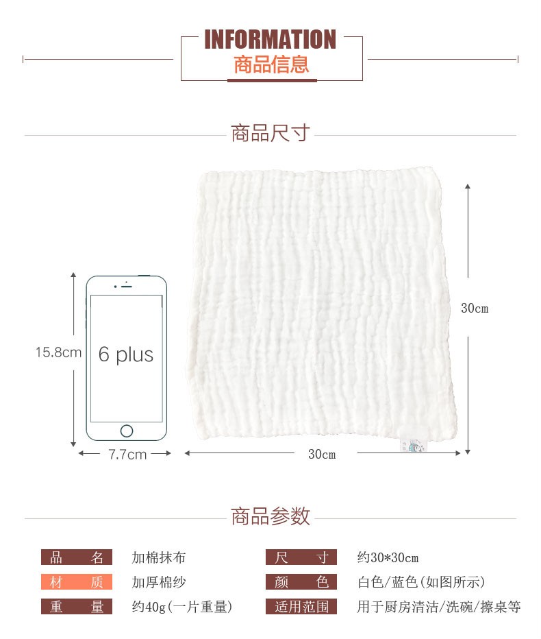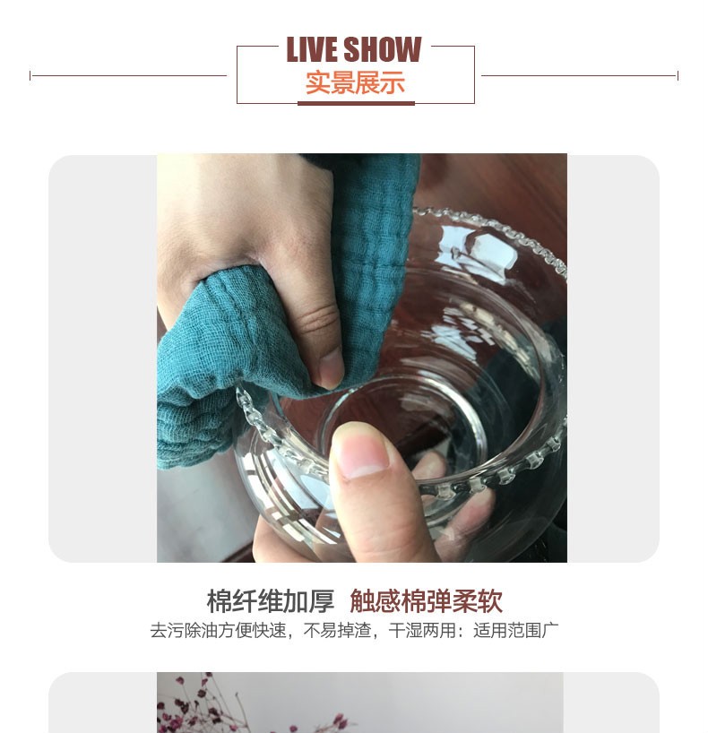 Dishwashing cloth, thickened, pure cotton gauze scouring pad, kitchen household cleaning towel, lint-free rag 30*30 cm, mixed pack of 10 pieces