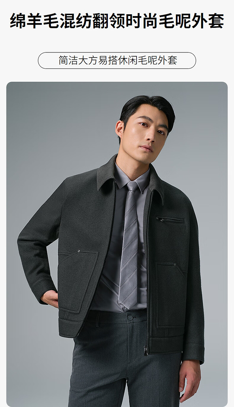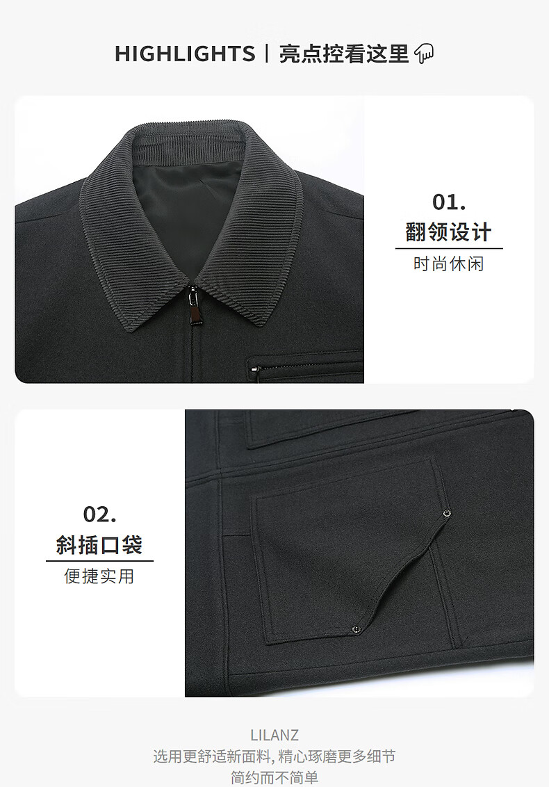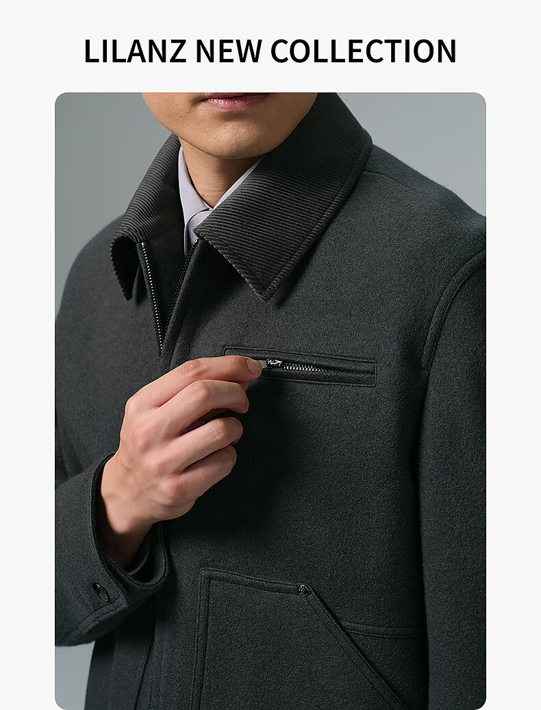 Lilang Woolen Coat Men's Short Winter Wool Jacket Men's 2025 New Lapel Warm Woolen Jacket Men's