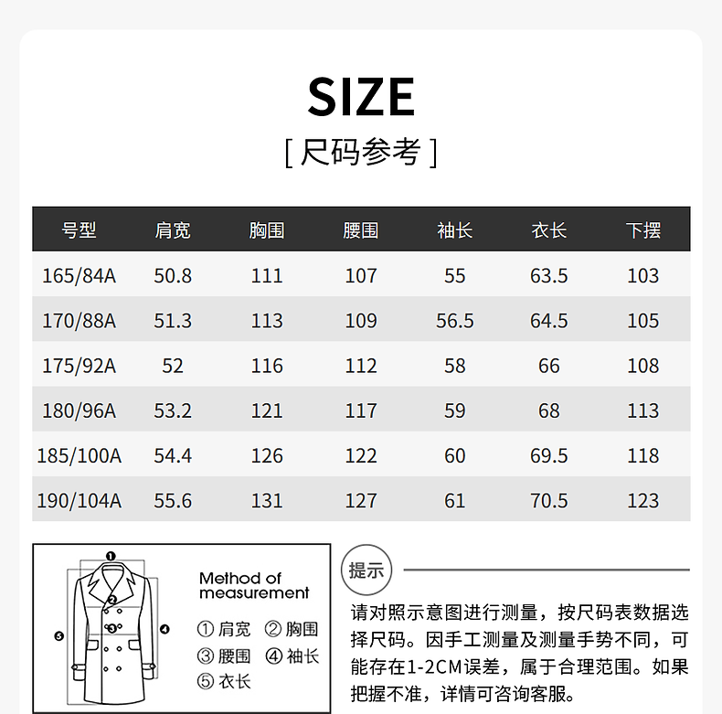 China (cm) 160-165/84-86 165-170 / 88-90 167-172 / 92-96 168-173 / 98-102 170-176 / 106-110