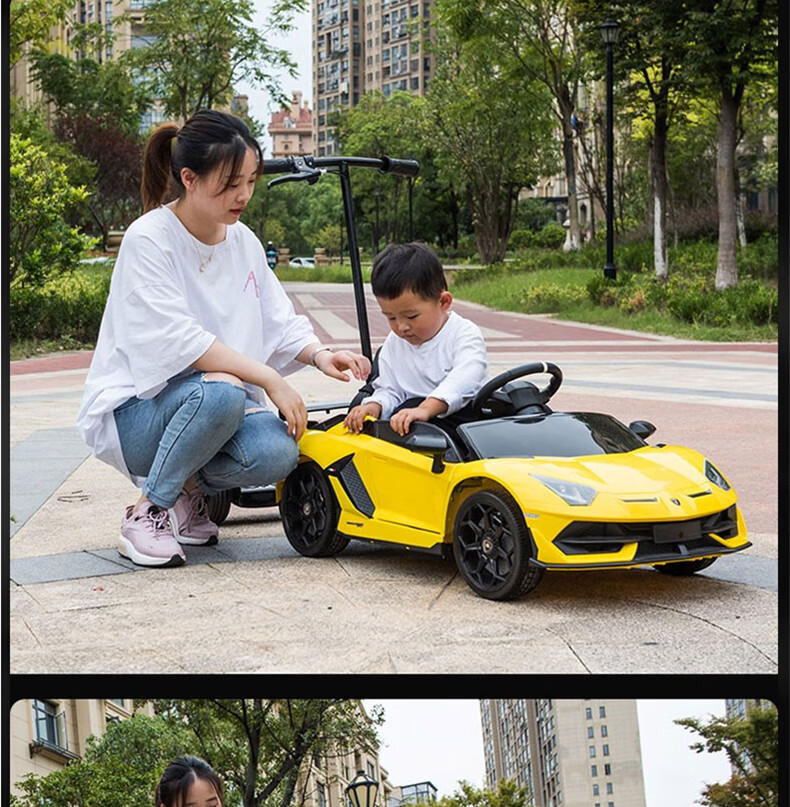 Haolaixi Lamborghini children's electric car four-wheeled with remote control baby car adult and child toy car can sit on the stroller red adult standing board/foam soft wheel/leather seat