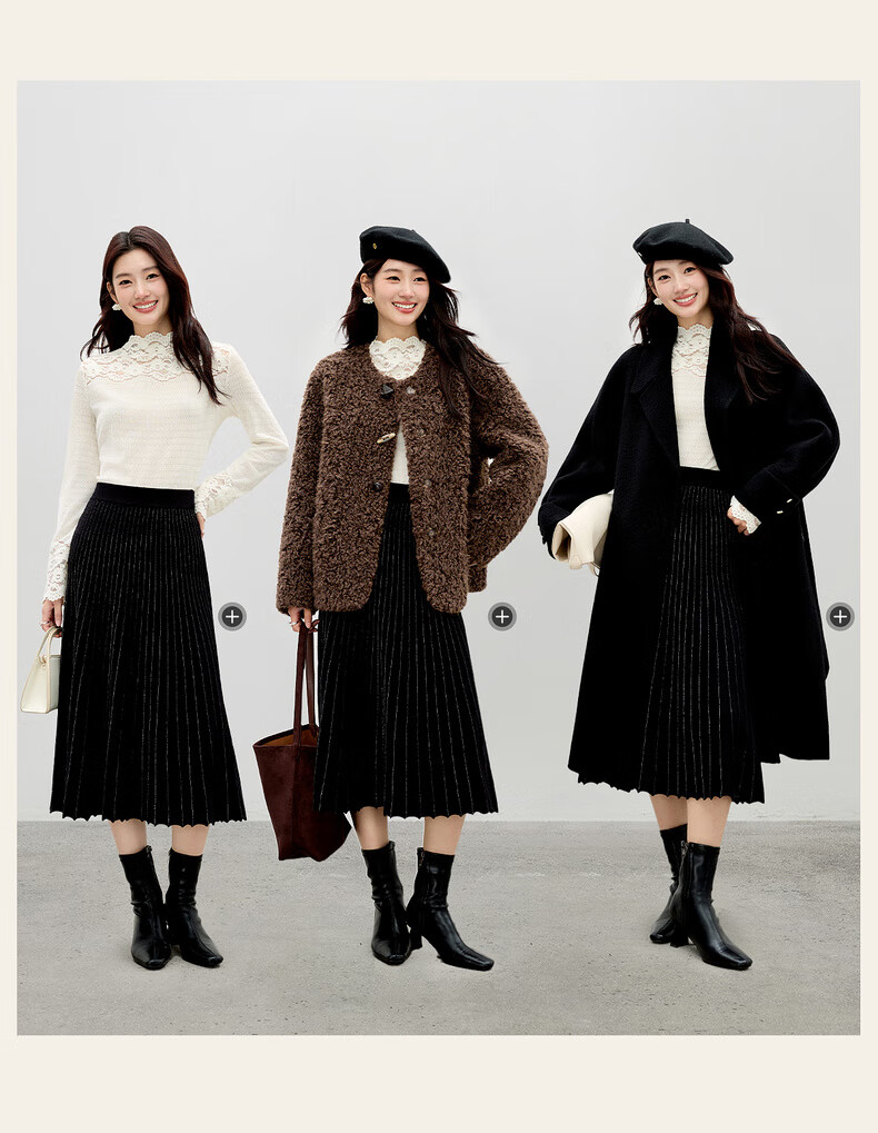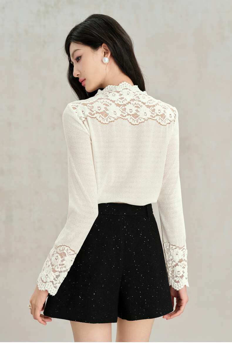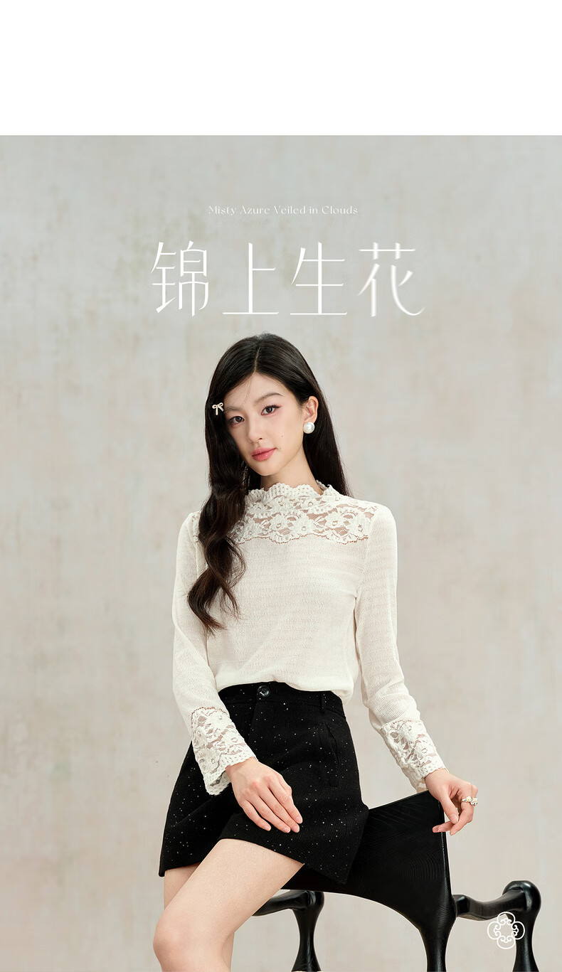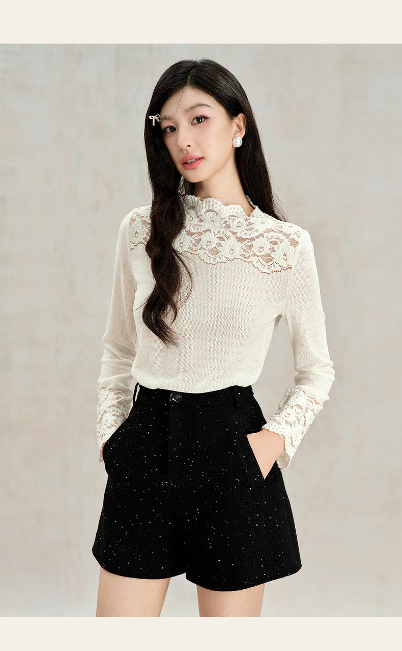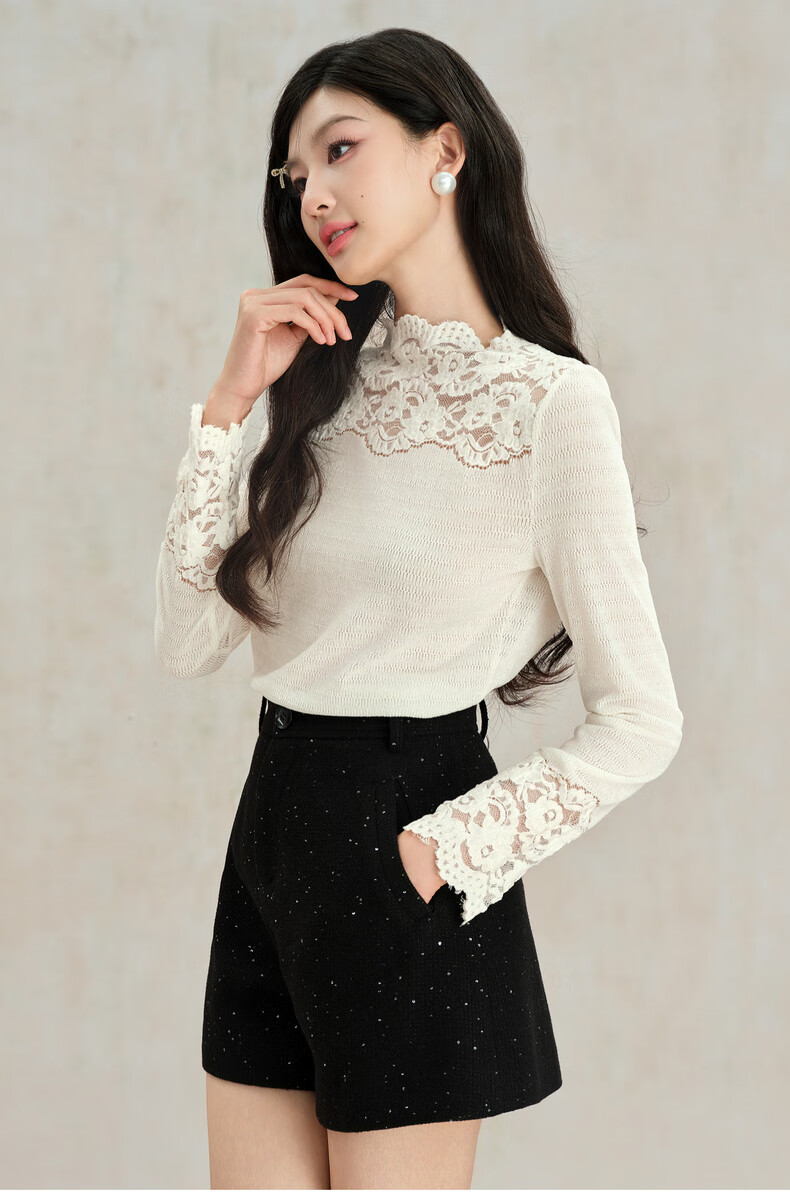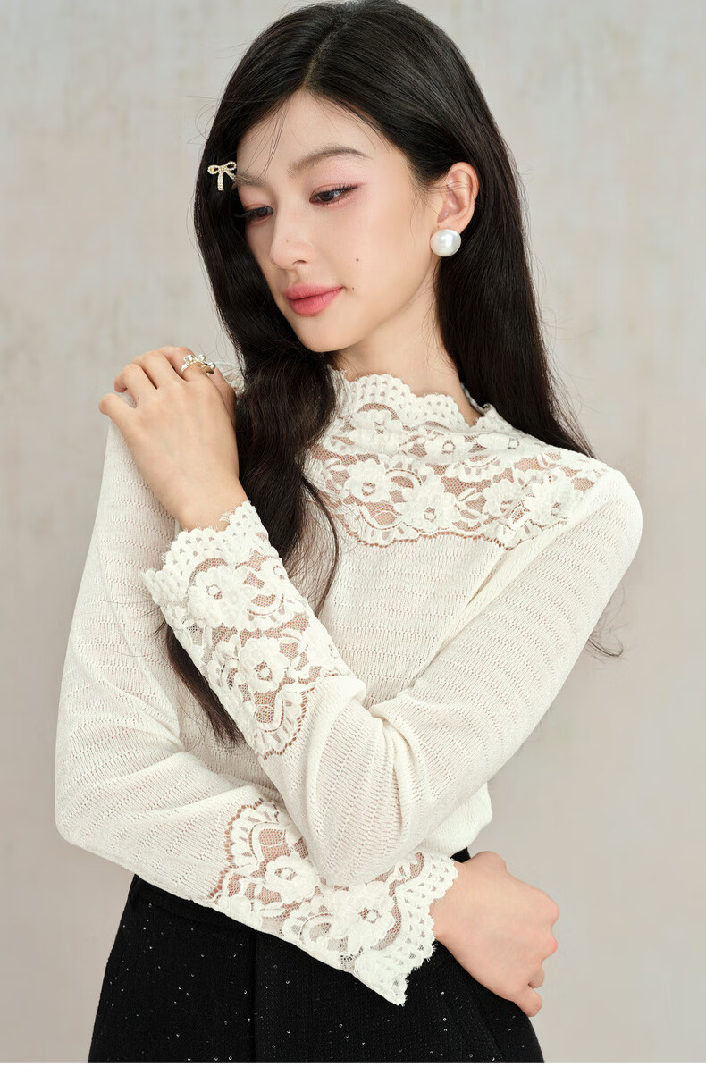 Qiushui Yiren Lace Collar Lace Top 2025 Winter New Women's Half Turtle Neck Slim and Versatile Top