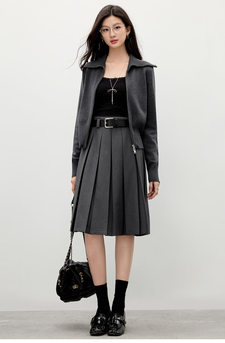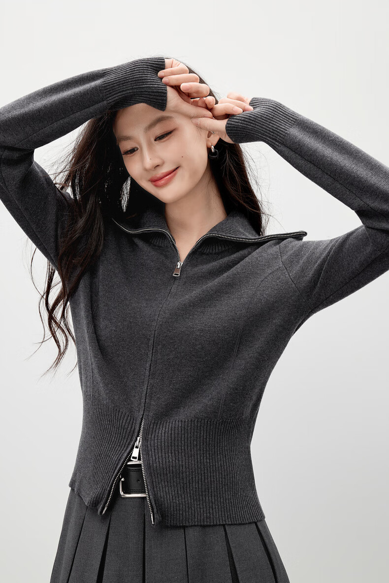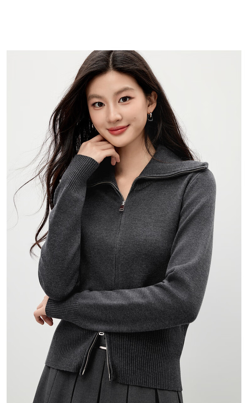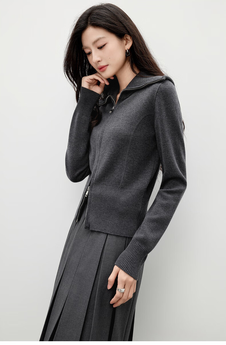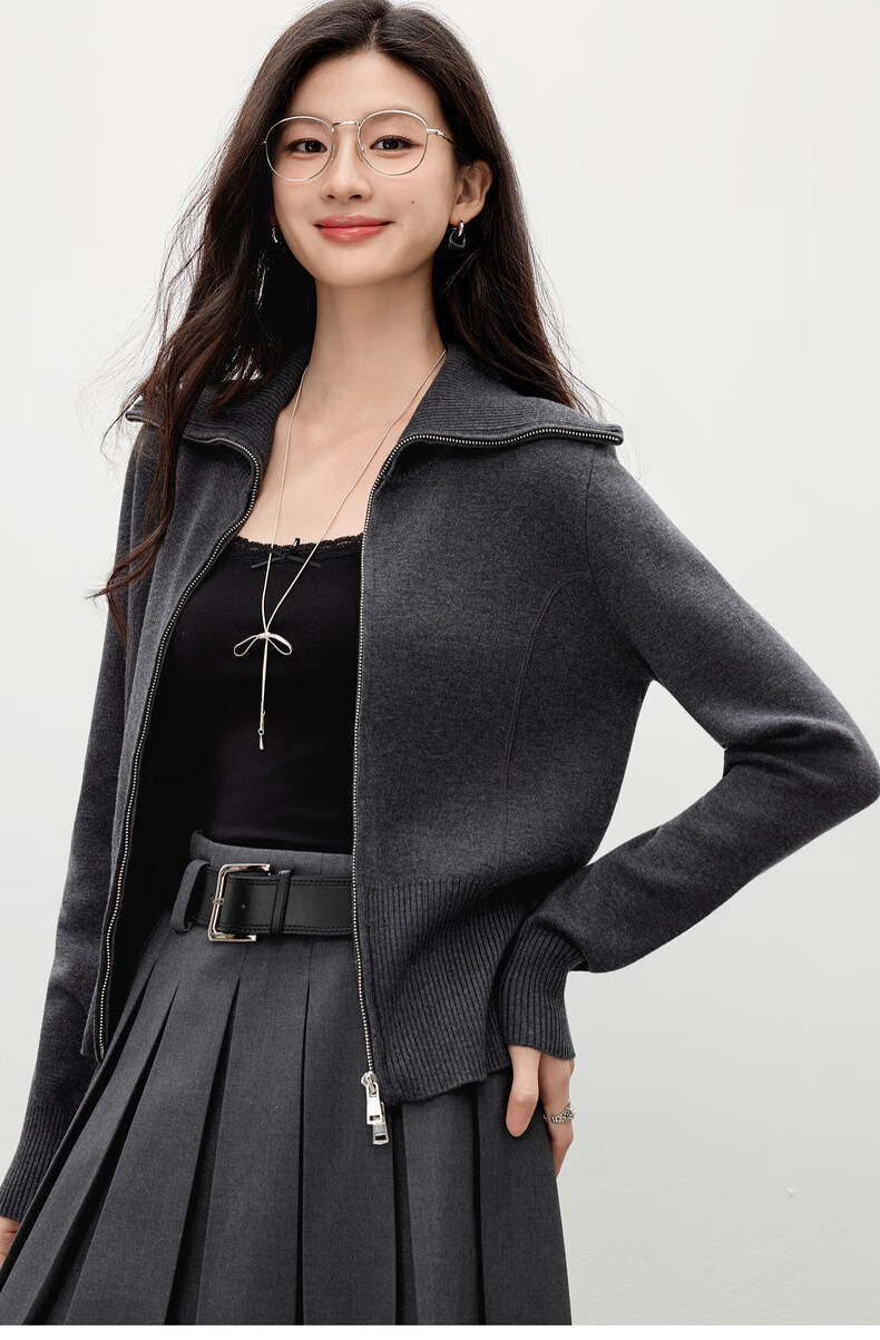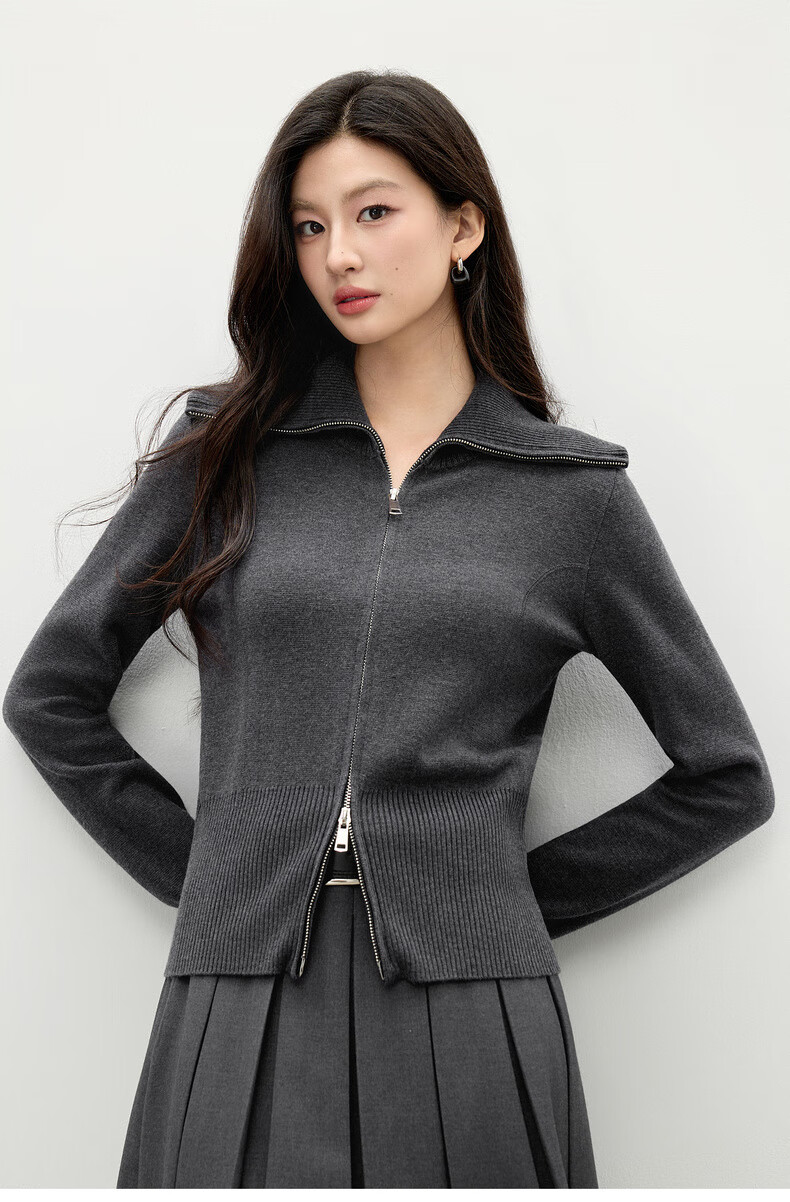 Qiushui Yiren simple lapel top 2025 winter new women's fashion two-way zipper design knitted cardigan