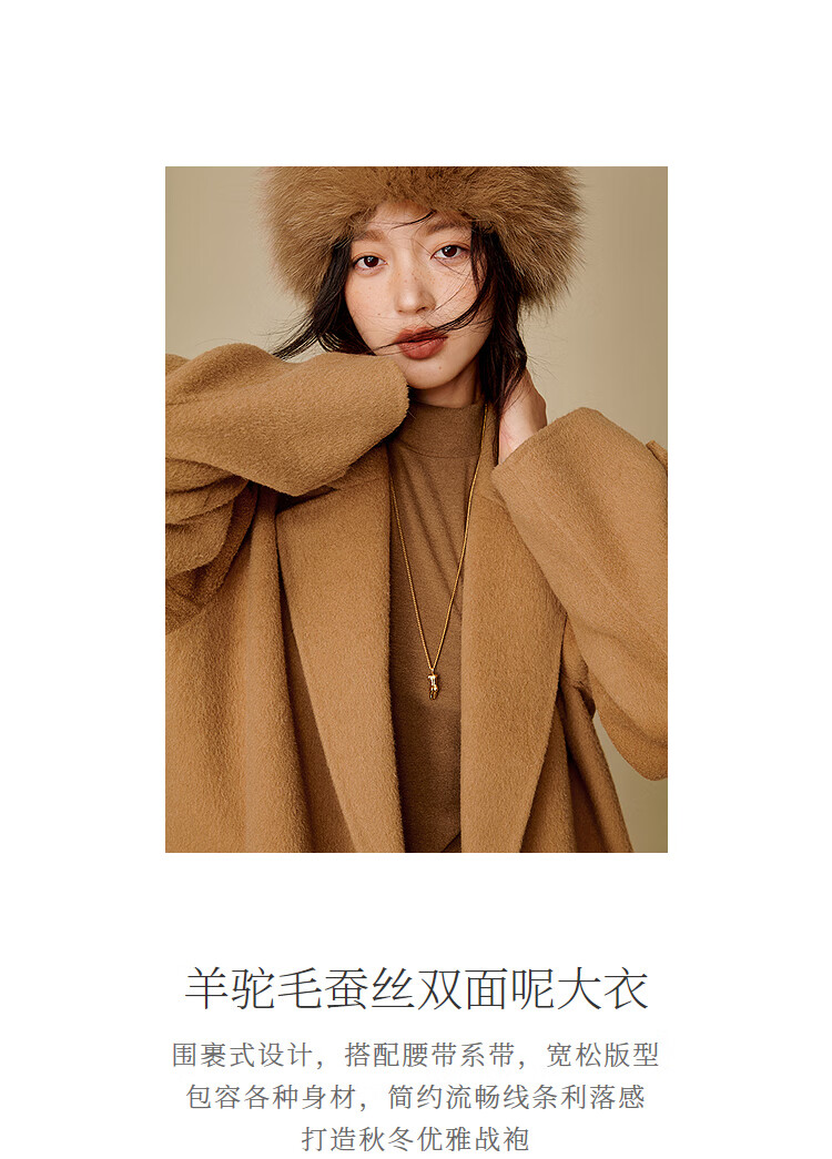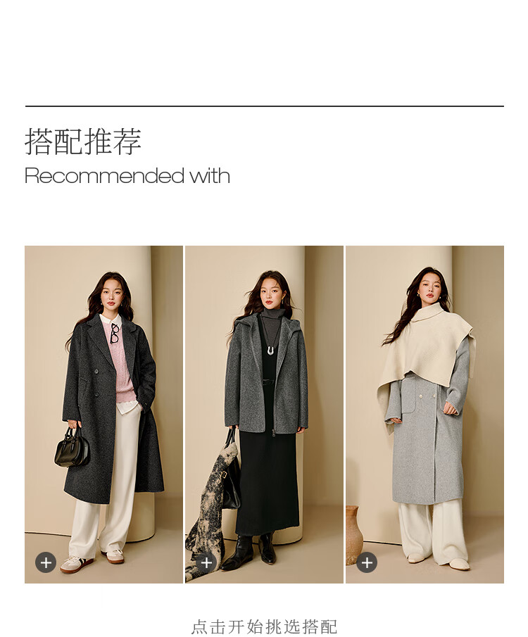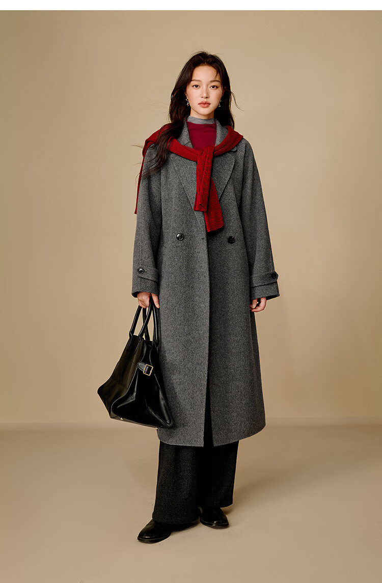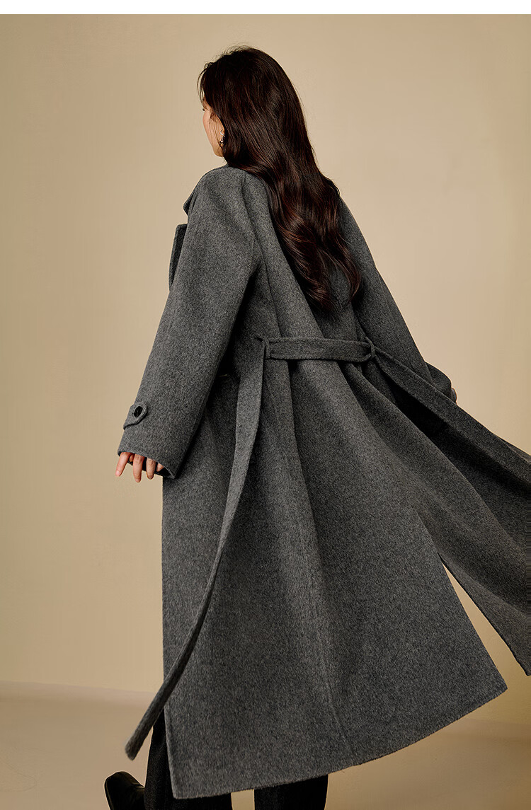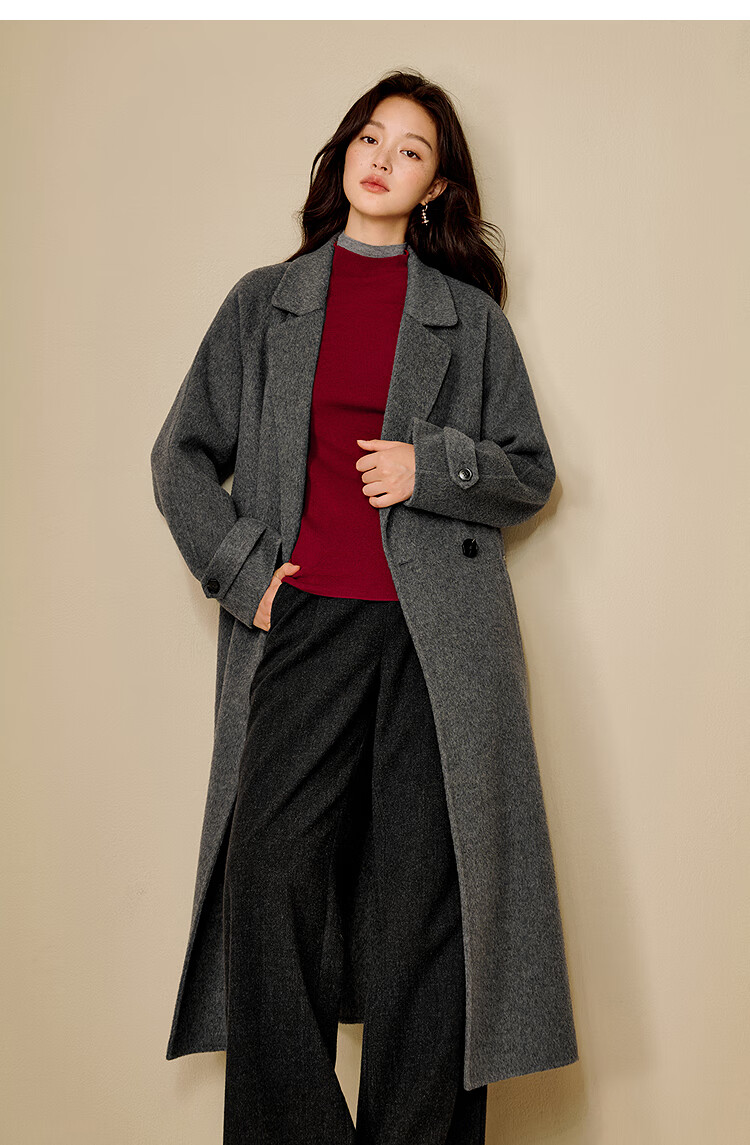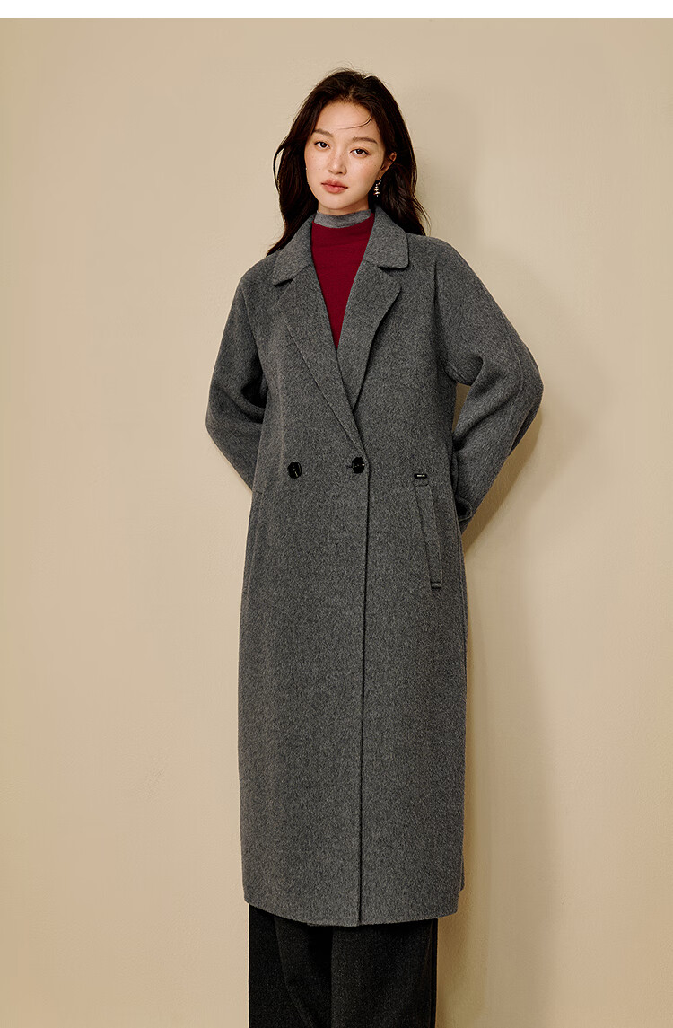 Inman alpaca mulberry silk double-sided woolen coat 2025 winter women's new light luxury woolen coat floral gray M