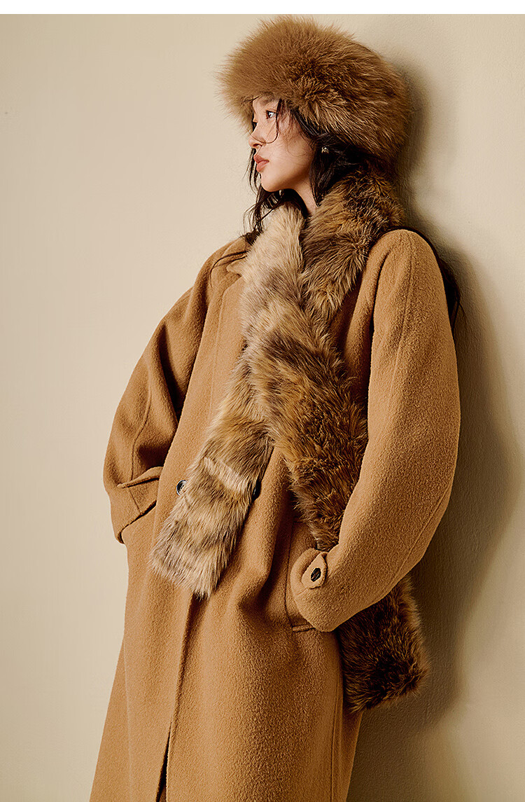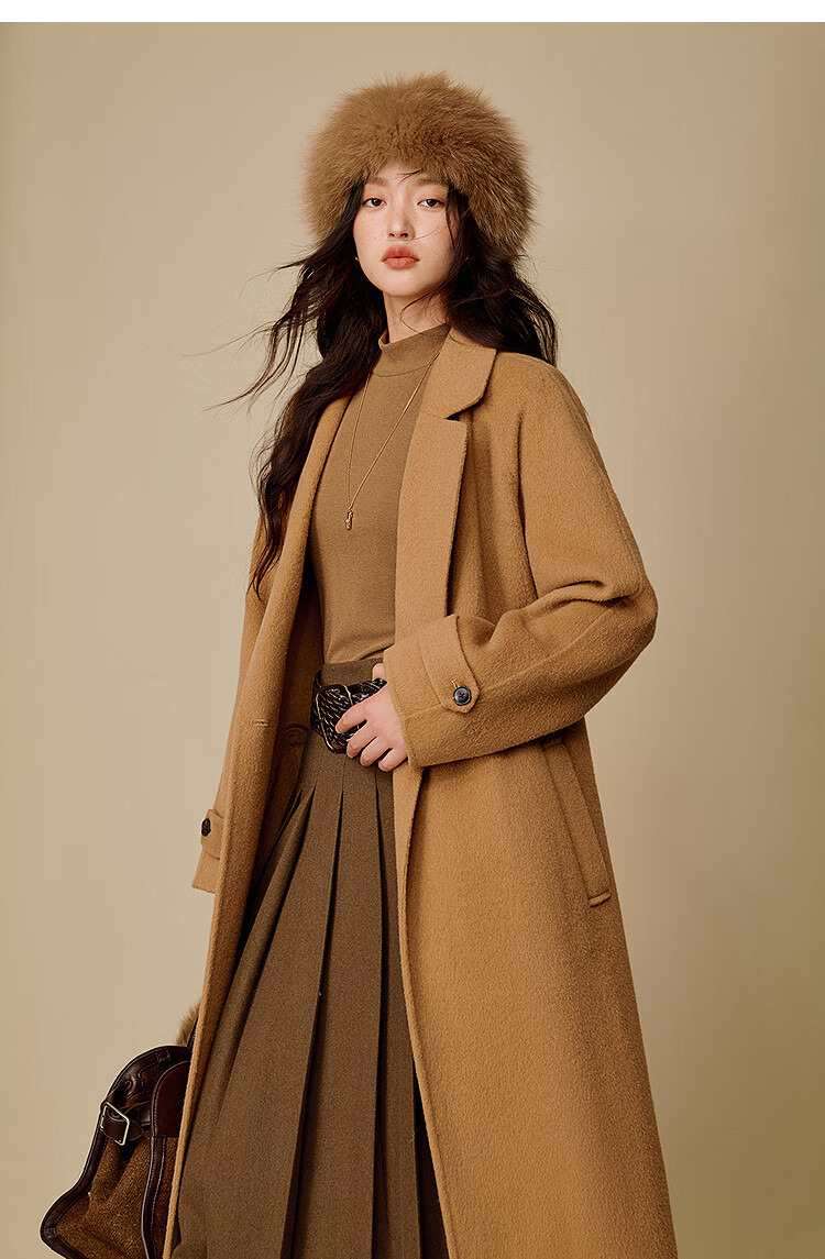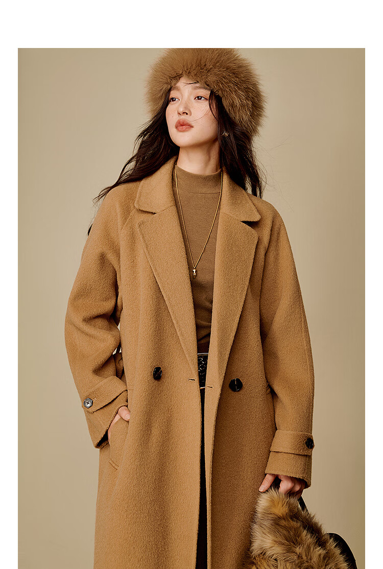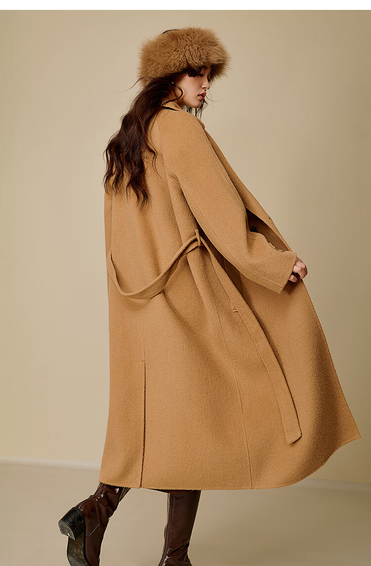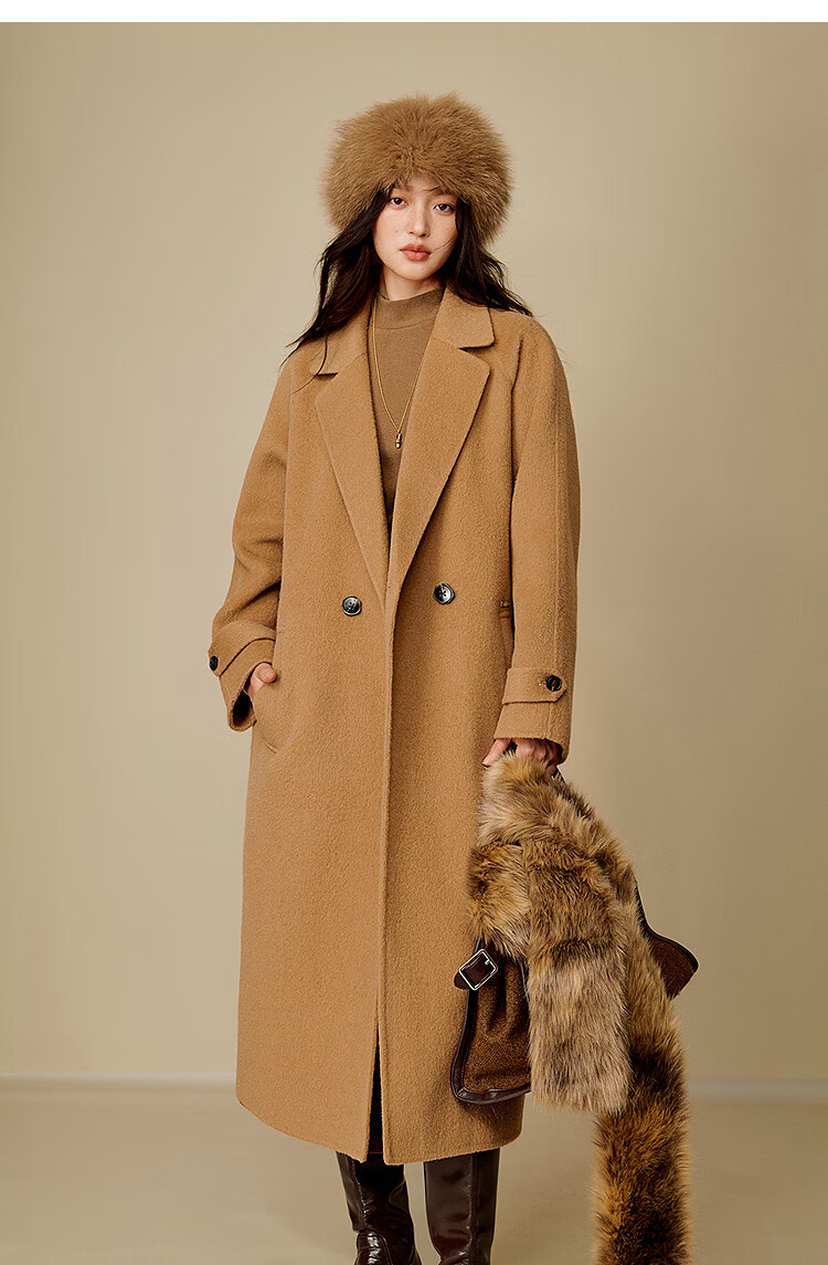 Inman alpaca mulberry silk double-sided woolen coat 2025 winter women's new light luxury woolen coat floral gray M