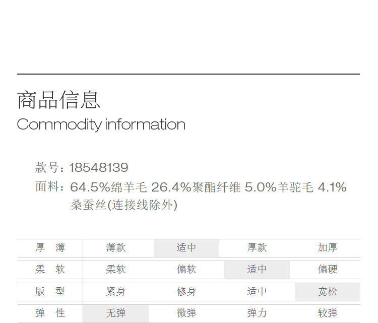 China (cm) 165 / 88-90 170 / 96-98 175 / 108-110 180 / 118-122 185 / 126-130