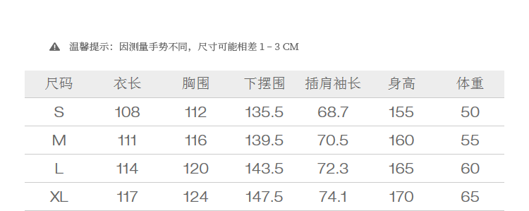 Size (cm) 42 44 46 48 50