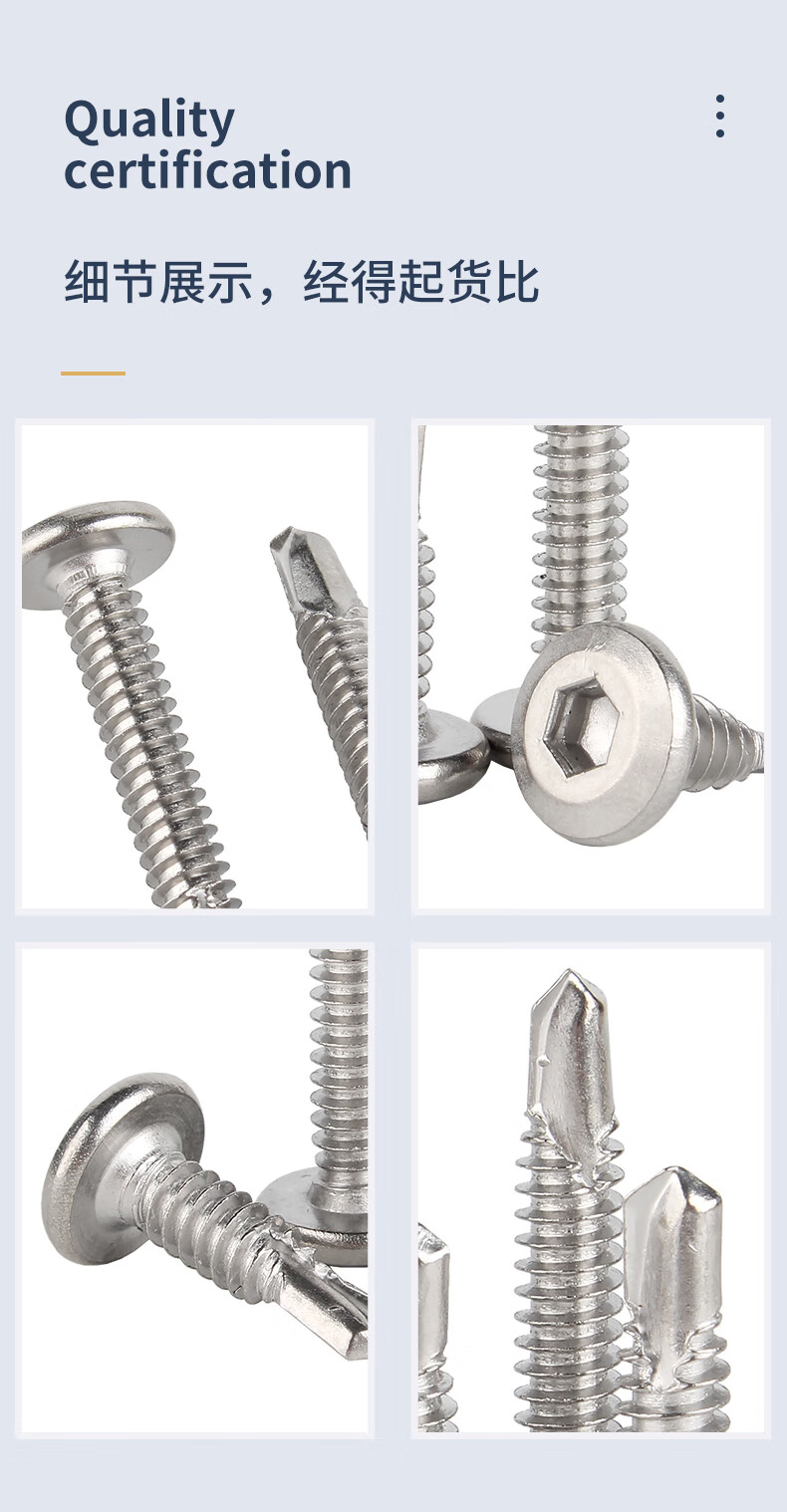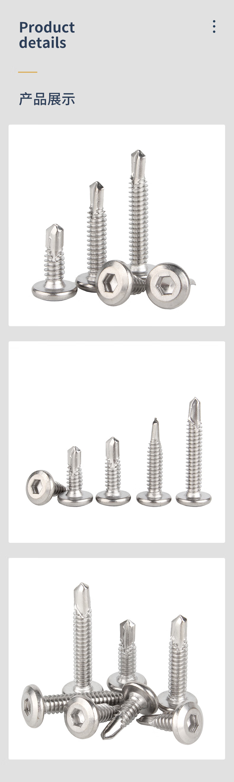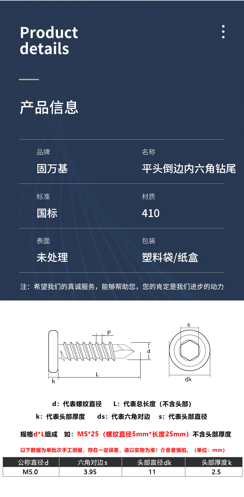 Guwanji 410 stainless steel flat head hexagonal drill tail screws, beveled self-tapping self-drilling dovetail screws national standard fasteners M5*16 50 pieces
