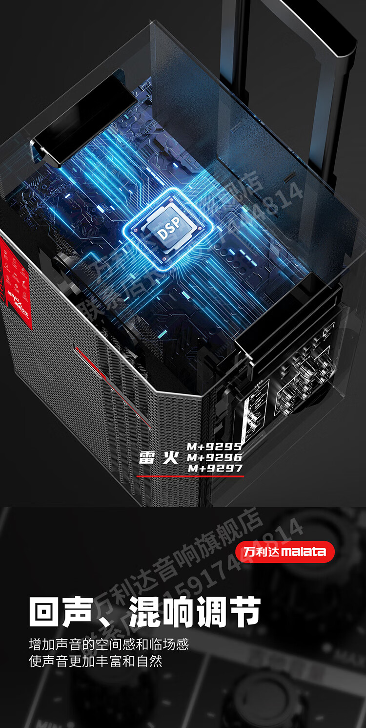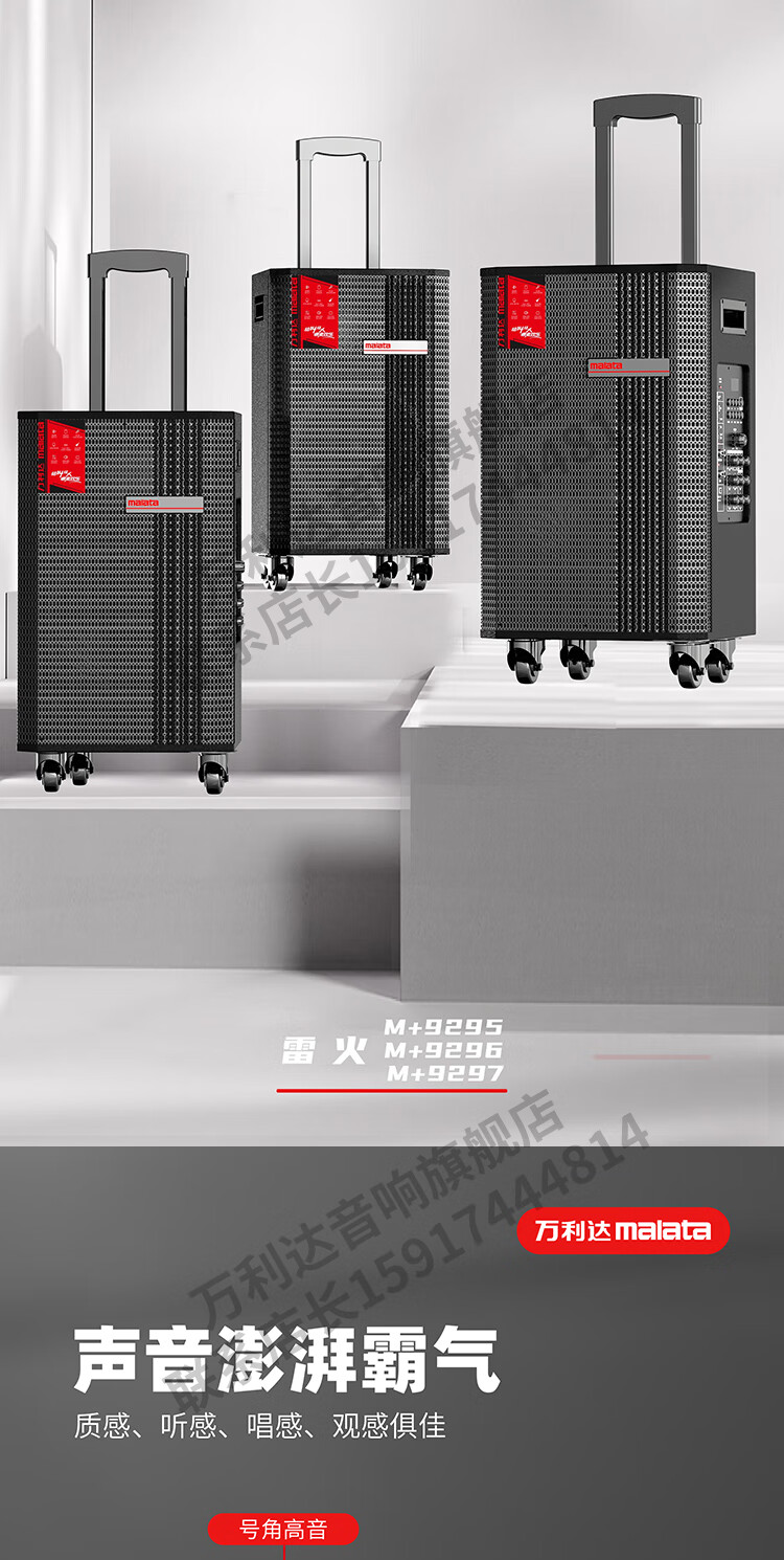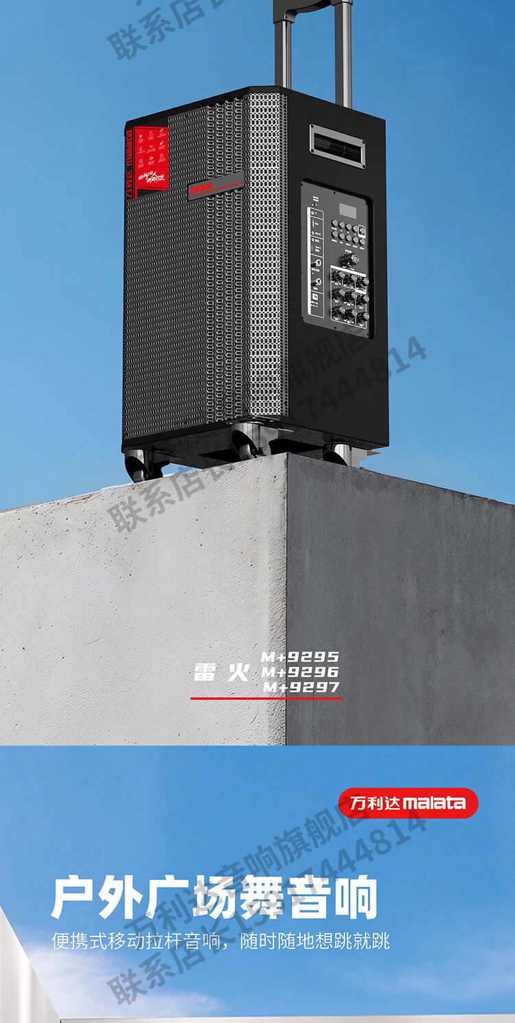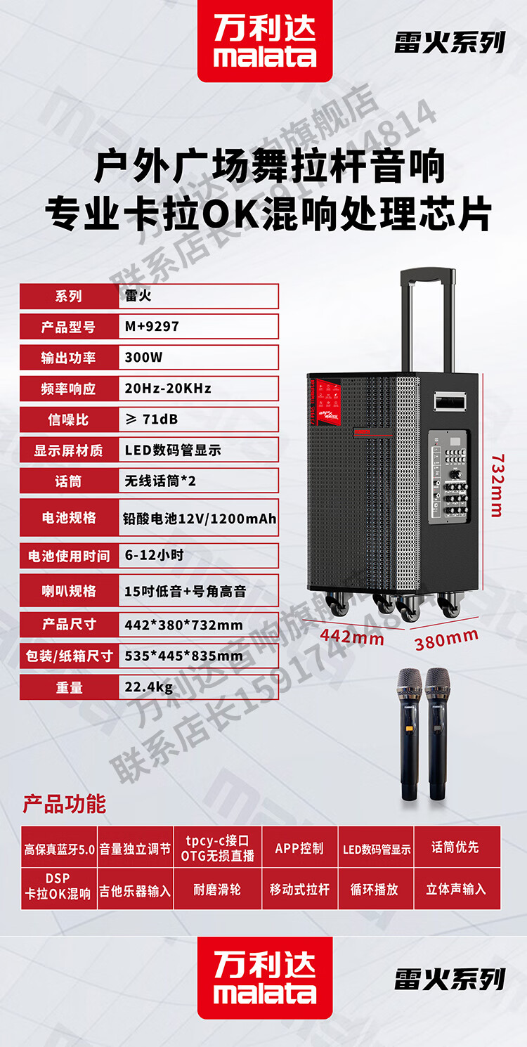 Malata Audio 9297 Thunder Fire Series New Professional Stage Speaker Bluetooth Subwoofer Outdoor High Power Singing Karaoke Mobile Trolley Home Singing Karaoke All-in-One Sound Card Machine 15-inch 300W + Bel Canto Dual Microphone M+9297