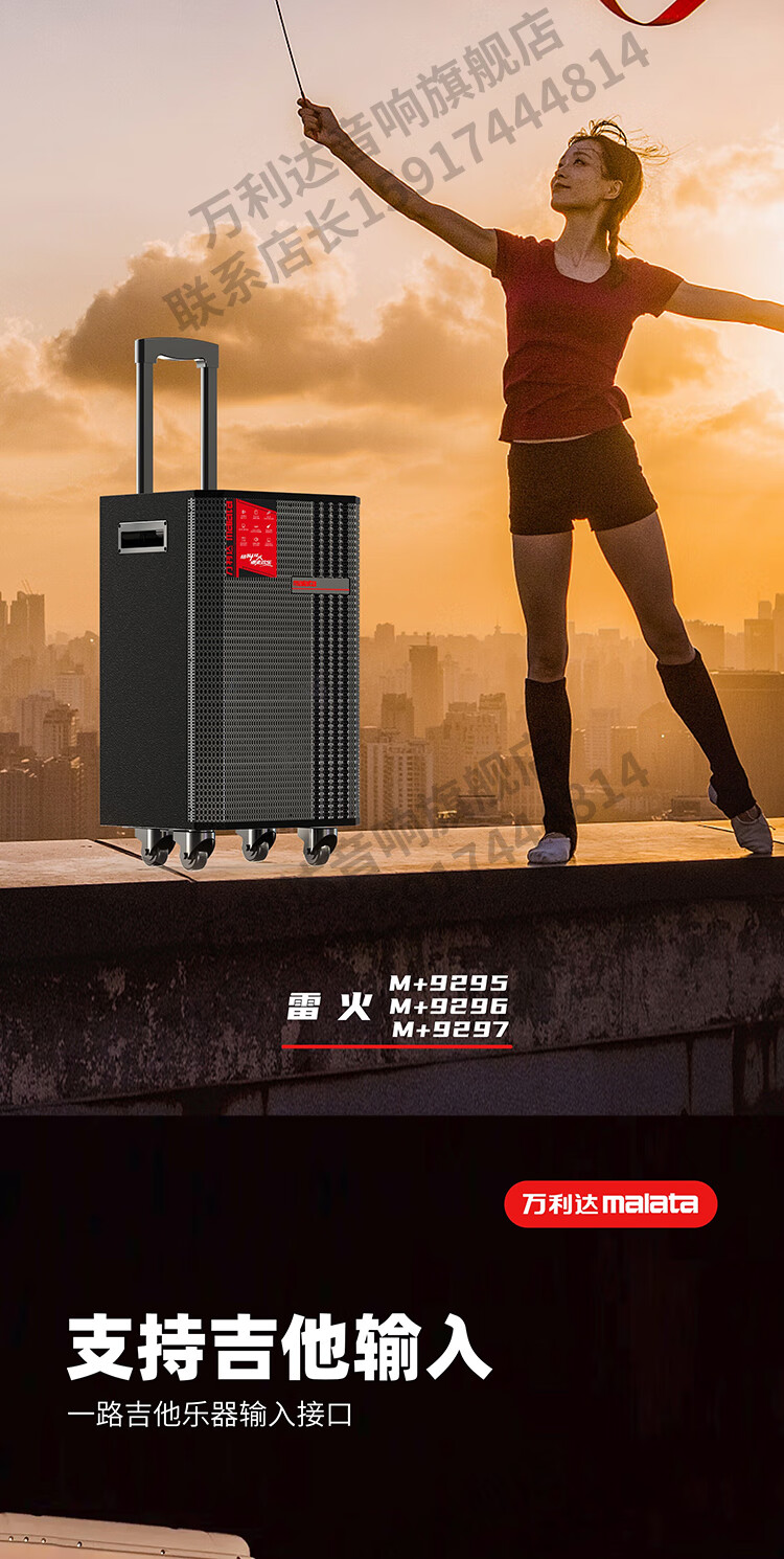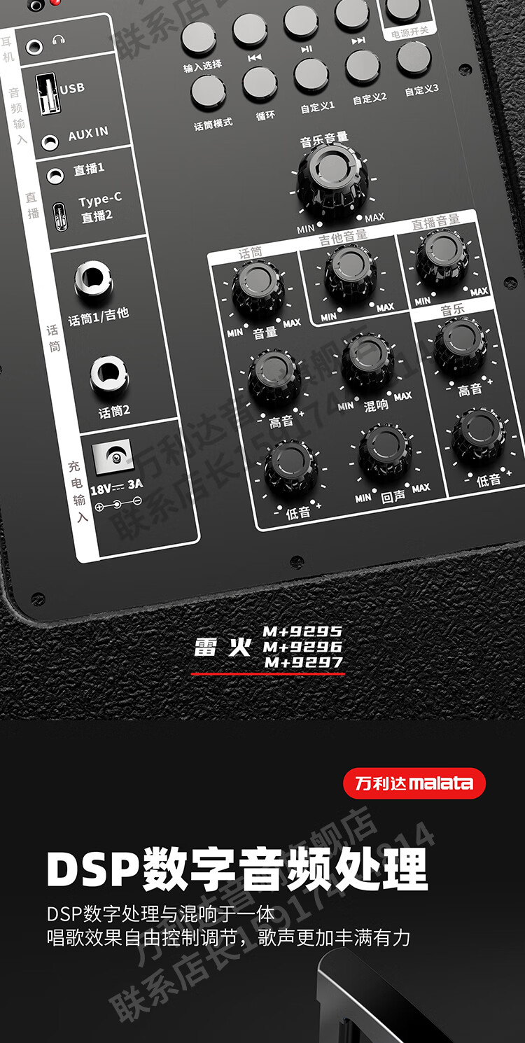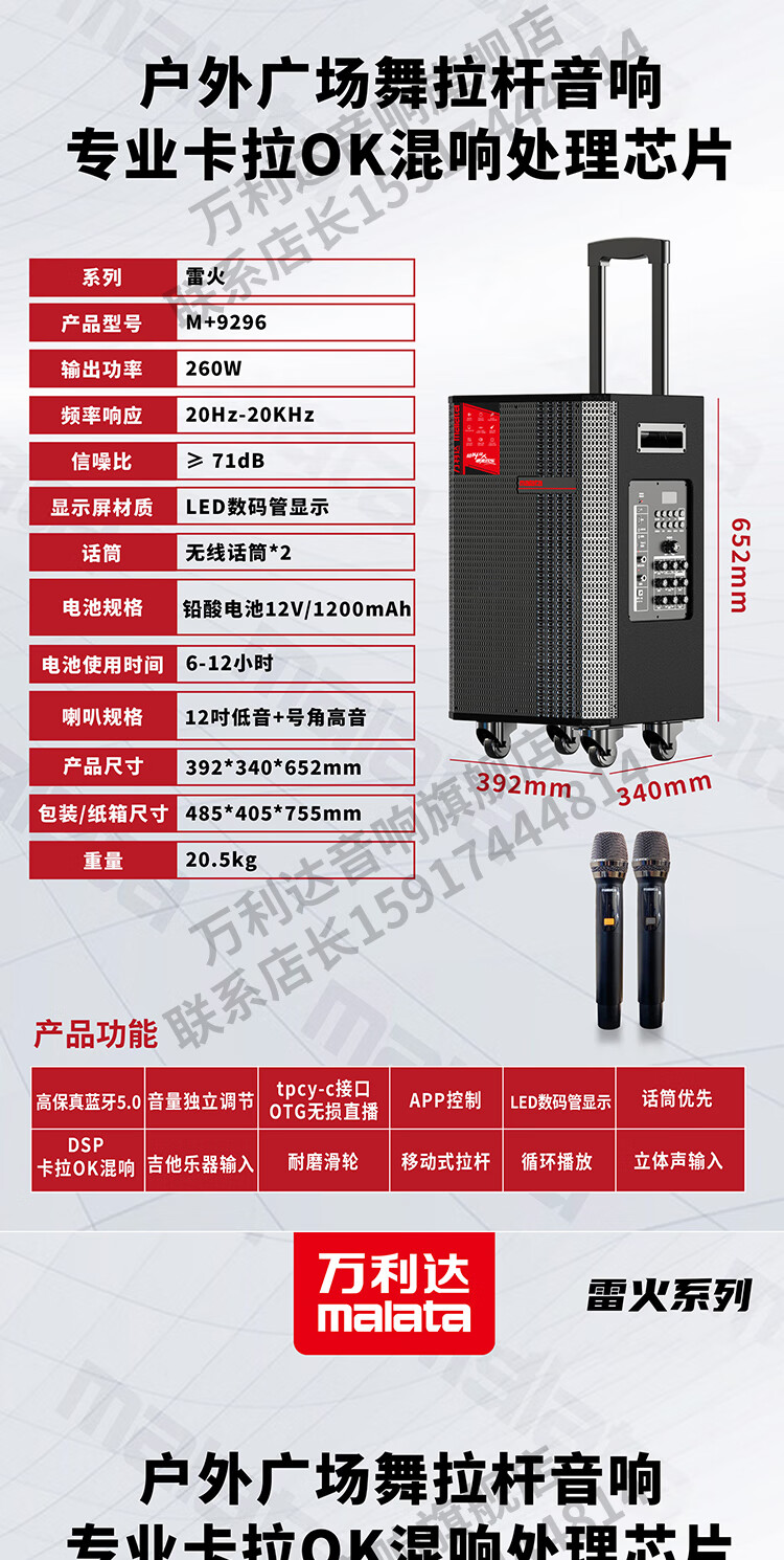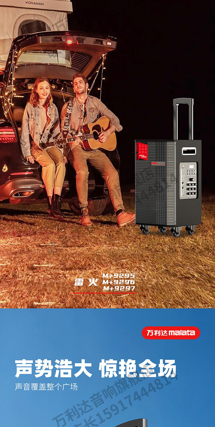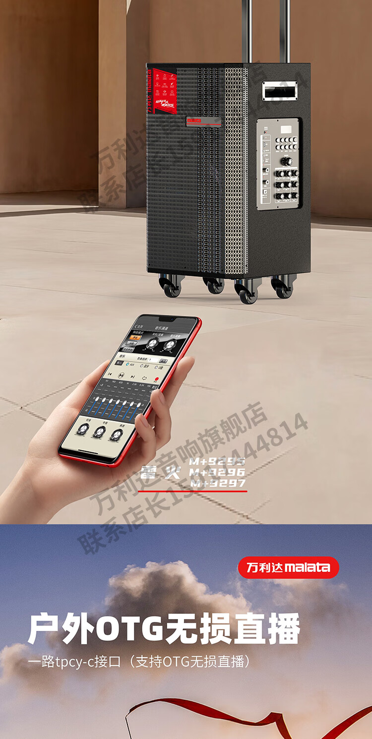 Malata Audio 9297 Thunder Fire Series New Professional Stage Speaker Bluetooth Subwoofer Outdoor High Power Singing Karaoke Mobile Trolley Home Singing Karaoke All-in-One Sound Card Machine 15-inch 300W + Bel Canto Dual Microphone M+9297